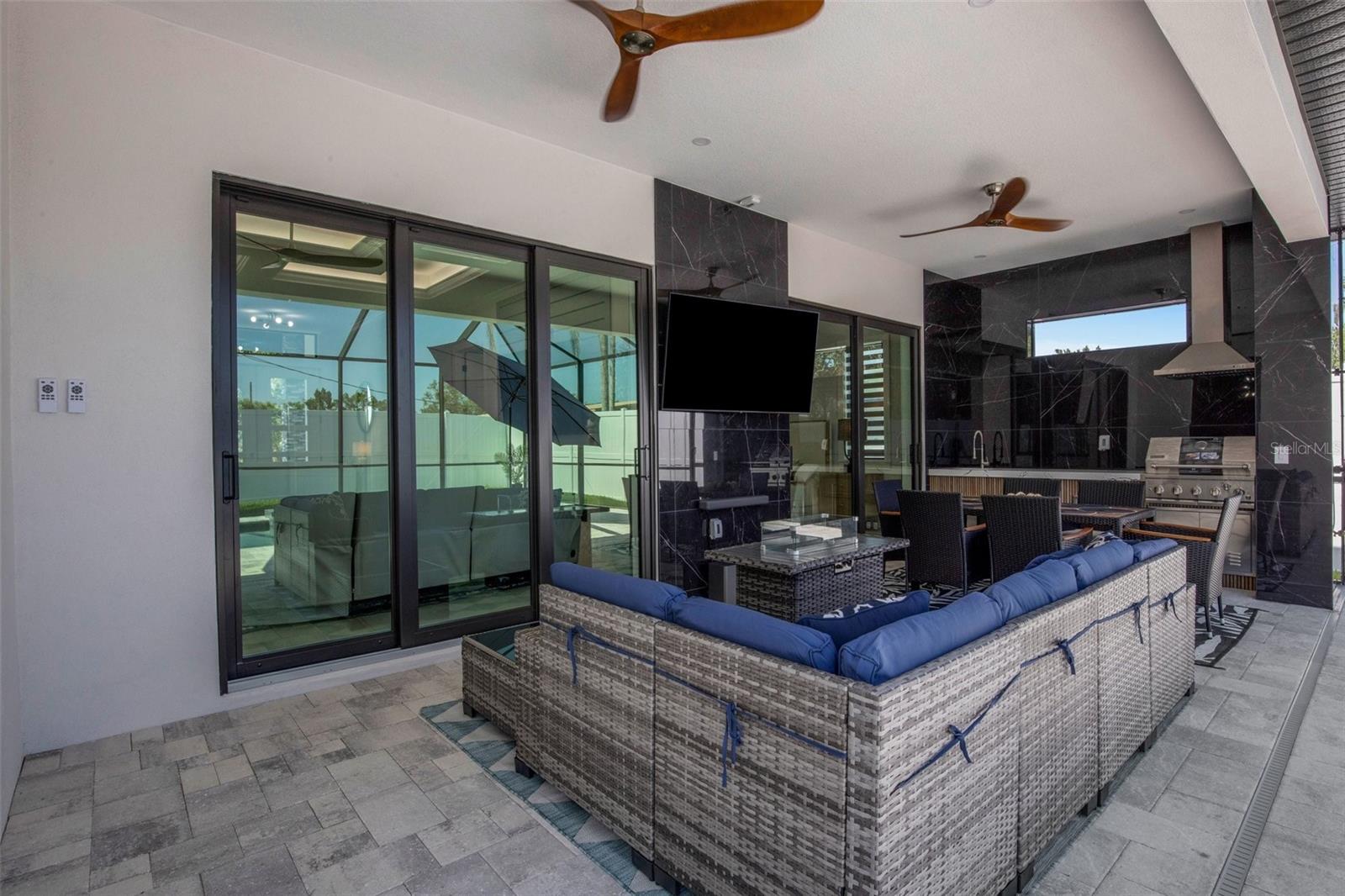 - Exterior: Lighting, Outdoor Grill, Outdoor Kitchen, Outdoor Shower, Rain Gutters, Sliding Doors