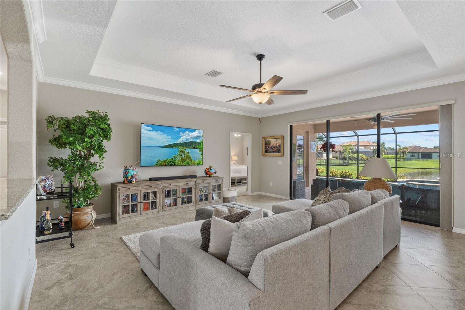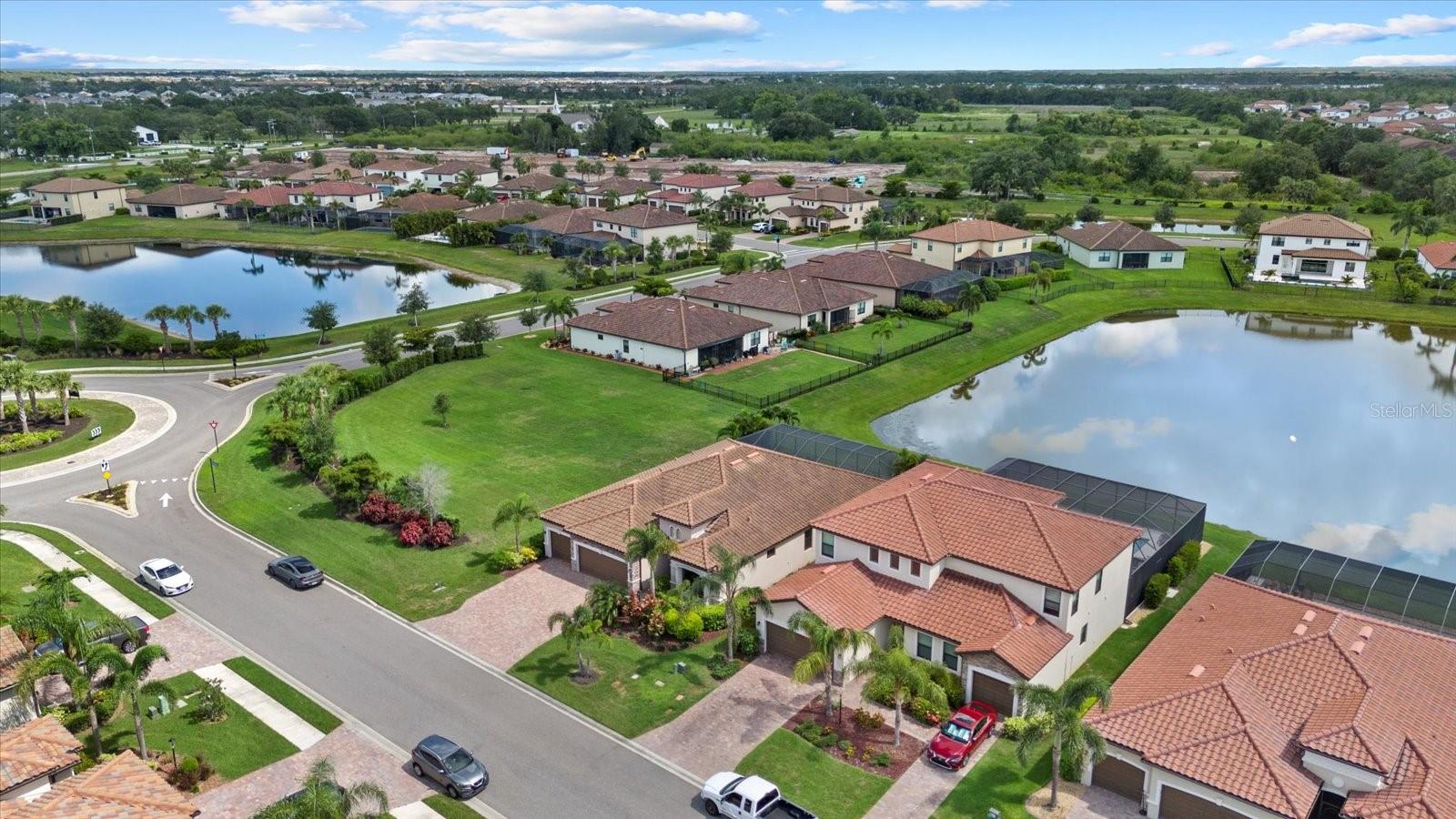 Welcome to the Beautifully Appointed Lennar Princeton II in Savanna at Lakewood Ranch. This highly desirable model offers the perfect blend of comfort, design, and functionality. With 4 bedrooms and 2 baths arranged as a split floor plan, you'll enjoy privacy and quiet separation between the primary suite and guest rooms, ideal for families or hosting visitors. The modern kitchen features solid wood cabinetry, granite countertops, and a layout that's perfect for preparing meals or entertaining guests. Elegant design details throughout the home include tray ceilings in the living room, architectural niches, and a formal dining space enhanced by classic columns, creating a comfortable and inviting atmosphere. From the kitchen and breakfast nook, your view opens up to the sparkling pool, large paver patio, and screened lanai, all set against a backdrop of gleaming lake views and breathtaking tropical sunsets. As you arrive, the stacked stone accents on the upgraded front elevation, along with the three-car garage, immediately make a strong impression. The approach to the home is equally appealing, with lush landscaping and a perfectly manicured lawn--all maintained by the community for low-maintenance living. Located in the gated neighborhood of Savanna at Lakewood Ranch, you'll be just minutes from everything this vibrant master-planned community has to offer--including Waterside, Lakewood Ranch Country Club, top-rated schools, and everyday conveniences. This newer construction home provides added peace of mind, knowing the structural and mechanical components are in excellent condition. Don't miss this opportunity to own a piece of paradise in one of the most sought-after neighborhoods in Lakewood Ranch. Schedule your private showing today.