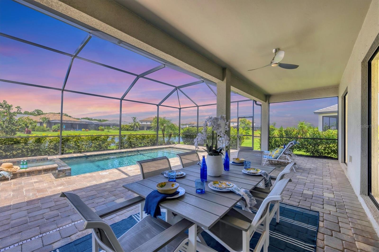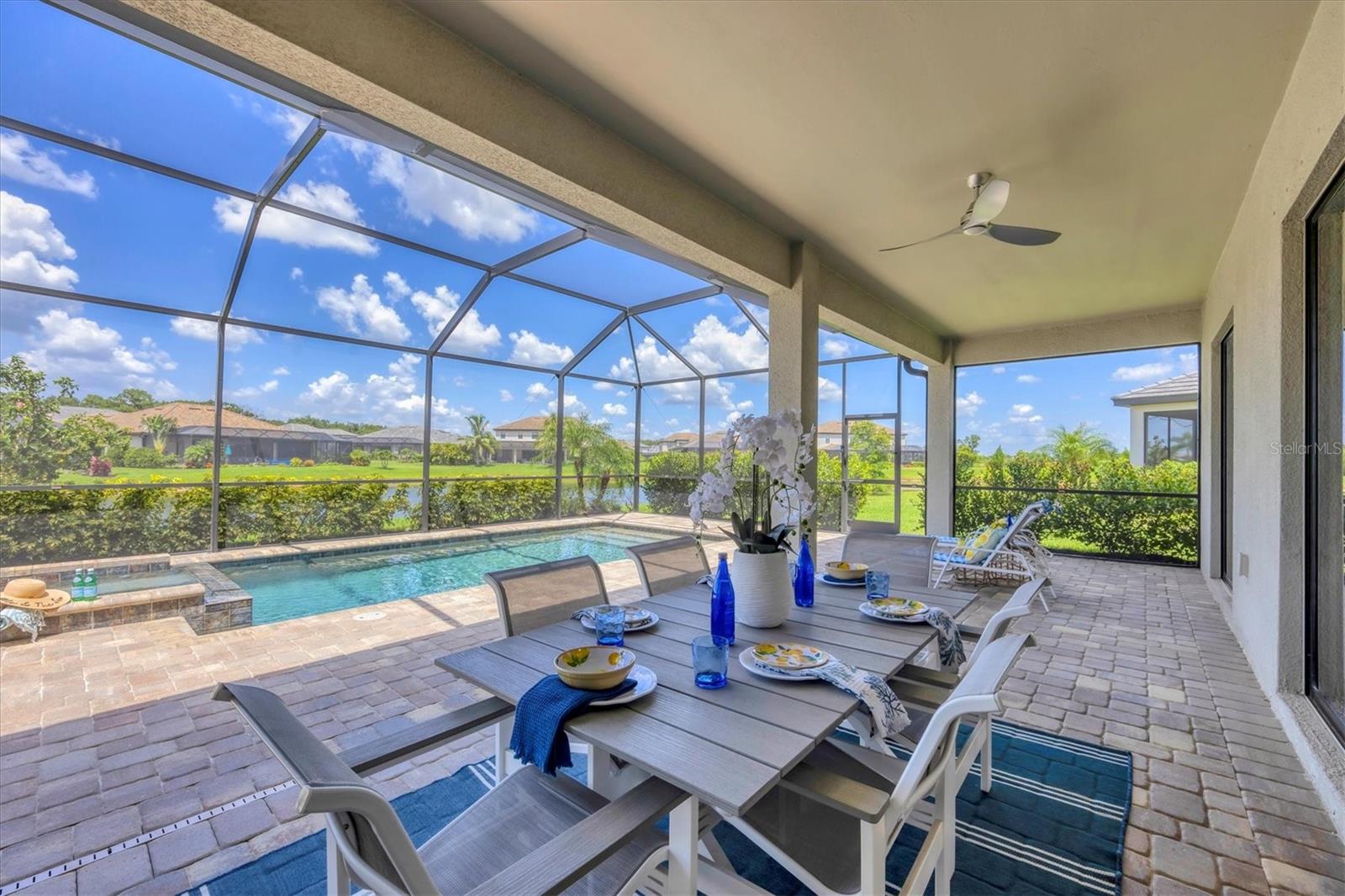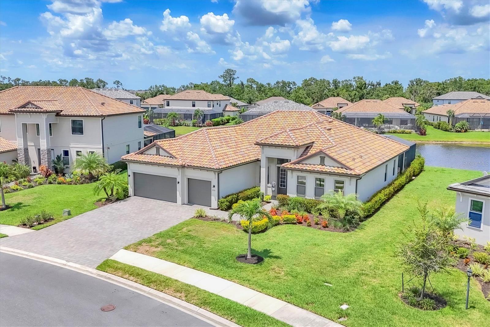 Under contract-accepting backup offers. NEW PRICE, same prestige...just waiting for YOU! Welcome to your Florida dream home, in Lorraine Lakes in Lakewood Ranch, the #1 MASTER PLANNED COMMUNITY IN THE UNITED STATES!!!This Gorgeous LAKEFRONT POOL home has 3-bedrooms, 3-baths, a 3-car garage and 2,650 square feet of gracious living space on an OVERSIZED LOT. Inside, you'll love the OPEN FLOOR PLAN with SPLIT BEDROOMS, and spacious kitchen with NATURAL GAS, a huge QUARTZ island and seating for all your guests. Stainless steel appliances, walk-in pantry, large farm sink and upgraded lighting throughout. The gathering room opens to your COVERED AND SCREENED LANAI with your sparkling HEATED POOL and spa, ideal for relaxing or entertaining. The large sliding glass doors allow easy access for that easy indoor/outdoor lifestyle we crave here in Florida. Enjoy extras like MOTORIZED WINDOW SHADES, EPOXY-FINISHED garage floors, a GAS TANKLESS water heater, DUAL CUSTOM BUILT-IN CLOSET SYSTEMS in the Primary Suite, and CUSTOM PAVED DRIVEWAY AND POOL AREA. The office space can be used as flex space for a multitude of things, including a fourth bedroom. In a GATED, MAINTENANCE-FREE community, you'll enjoy RESORT-STYLE amenities like a clubhouse with dining, fitness center, indoor courts, resort pool, lap pool, splash pad, plus pickleball, tennis, basketball, playgrounds and over 150 miles of trails surrounded by stunning lakes. When you want to venture out on the town, a short drive away are options. Tampa, Sarasota (Siesta Key Beach) and St. Armands Circle for finest dining and shopping. Lakewood Ranch downtown and Waterside are minutes away for shops and dining, live music, polo and international events. This is where you want to live, call today for your personal tour or a FaceTime tour.
