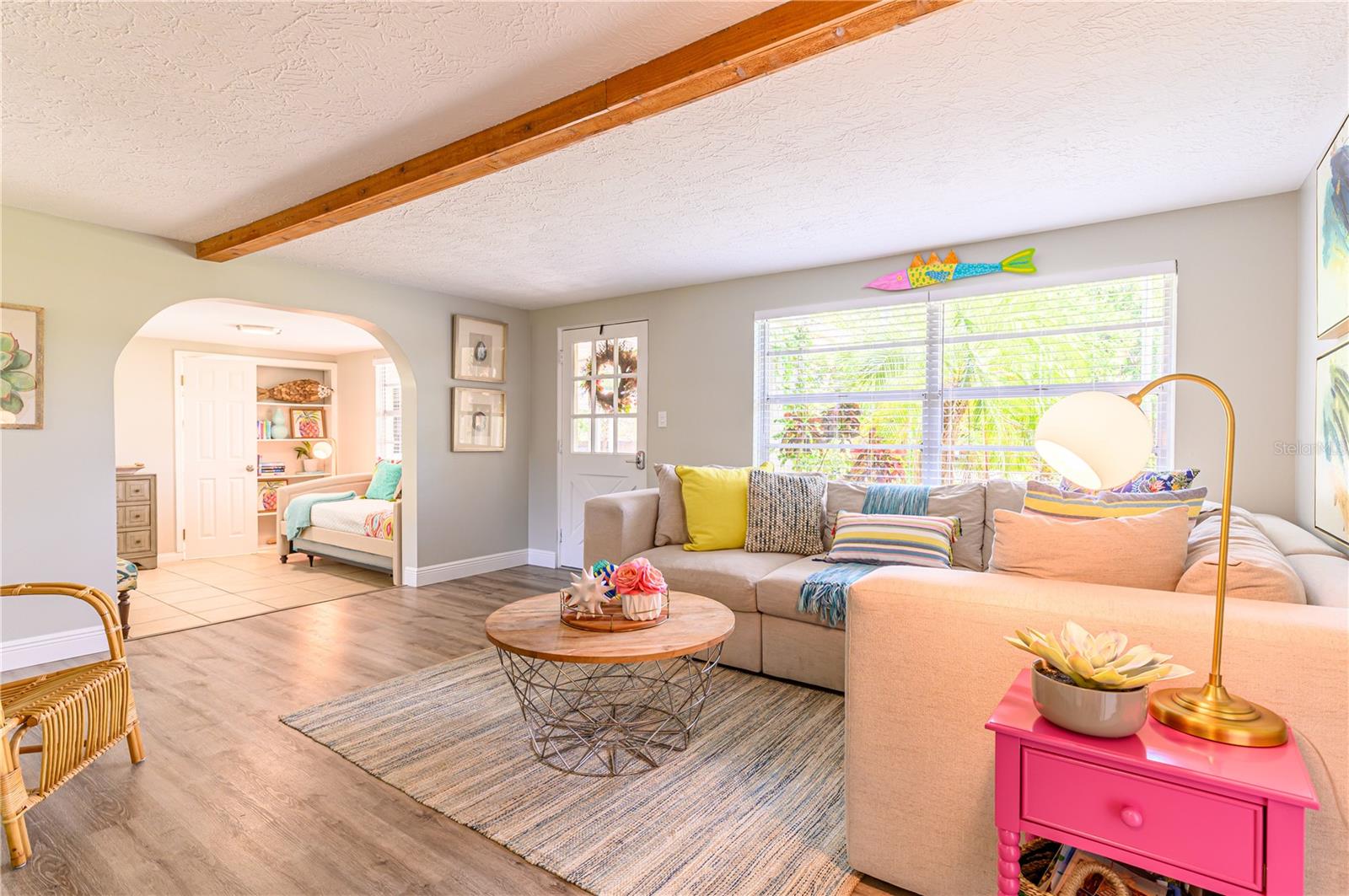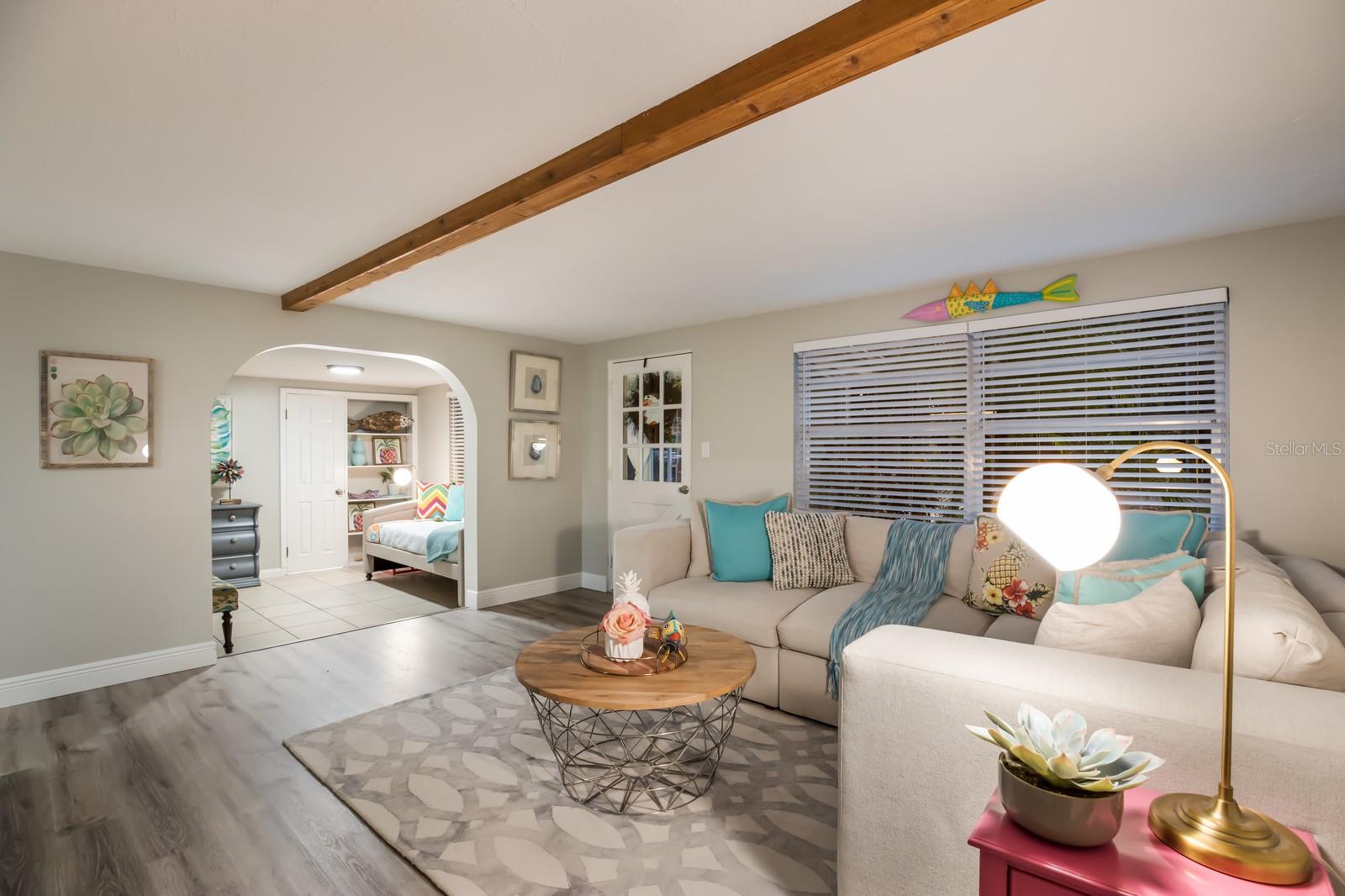 Welcome to your dream home or investment property in one of Sarasota's most desirable neighborhoods--Gulf Gate! This beautifully partially updated 2 bedroom, 2 bathroom pool home is brimming with charm and designer-inspired furnishings, making it completely turnkey and ready for immediate enjoyment or rental income. Step inside to discover a bright and spacious layout, thoughtfully styled with modern touches and coastal elegance. The living and dining areas are beautifully separated by a stylish built in bookshelf, providing defined yet connected spaces for relaxing and entertaining. Outside, you'll find your own private retreat--a large sparkling pool surrounded by lush landscaping, a very spacious fenced-in backyard and plenty of room for outdoor lounging or entertaining. Just minutes from the world-renowned Siesta Key Beach, as well as premier shopping, dining, and entertainment options, this home offers the perfect blend of convenience and lifestyle. Whether you're seeking a permanent residence, a vacation getaway, or a high-performing rental (with an impressive income history), this property is a rare opportunity in the heart of Sarasota. Recent updates include new 8x10 shed, new vinyl privacy fencing, lanai cage and lanai resurfacing (2019), new AC (2023), newer appliances, updated landscaping (2024), new washer and dryer (2024), a a roof that is only 6 years old--offering peace of mind and move-in-ready confidence. Don't miss your chance to own a piece of paradise--schedule your private showing today!