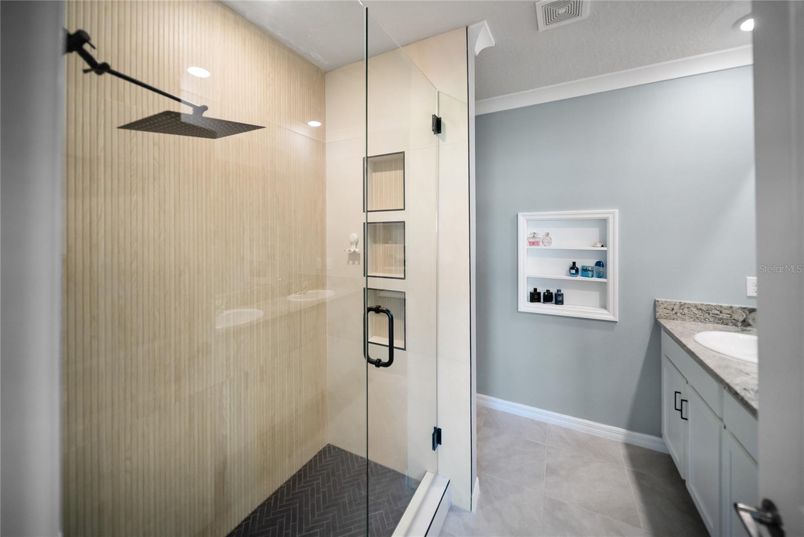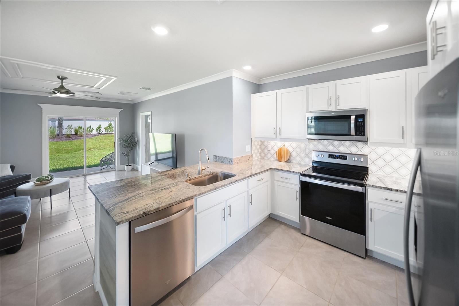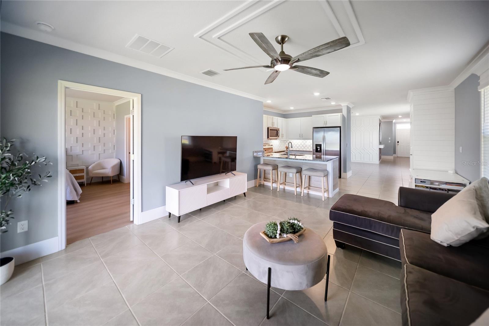 One or more photo(s) has been virtually staged. **Seller is offering $3,000 in concessions towards closing costs or rate buy-downs at full ask** Welcome to this beautifully upgraded 3-bedroom, 2-bathroom home in the highly sought-after community of Star Farms at Lakewood Ranch! Every inch of this home has been thoughtfully enhanced with custom touches that truly set it apart. From the moment you step inside, you'll notice the elevated finishes--crown molding, wide baseboards, and framed windows add elegance throughout. The foyer welcomes you with a stylish accent wall, setting the tone for what's to come. The kitchen is a dream, featuring a designer backsplash, soft-close cabinetry and drawers, under-cabinet accent lighting, a redesigned pantry with shiplap, and a built-in sink disposal for added convenience. The open dining area boasts a modern accent wall, while the living space flows seamlessly out to a covered patio with its own accent walls, perfect for relaxing or entertaining. Retreat to the primary suite where you'll find a custom accent wall, luxury vinyl flooring, a spacious walk-in shower with upgraded tile, and a custom walk-in closet. The guest bathroom has been stylishly updated with new tile and vanity. Even the laundry room features custom shiplap detailing, tying into the home's warm, cohesive style. Thoughtful upgrades like ceiling fans in every room and built-in storage elevate both function and design.With the new Lake Manatee K-8 school right around the corner, Star Farms is a gated, resort-style community offering amenities like a pool, fitness center, pickleball and tennis courts, walking trails, dog parks, and a clubhouse with activities for all ages.Don't miss your chance to own this upgraded gem in one of Lakewood Ranch's most vibrant communities!