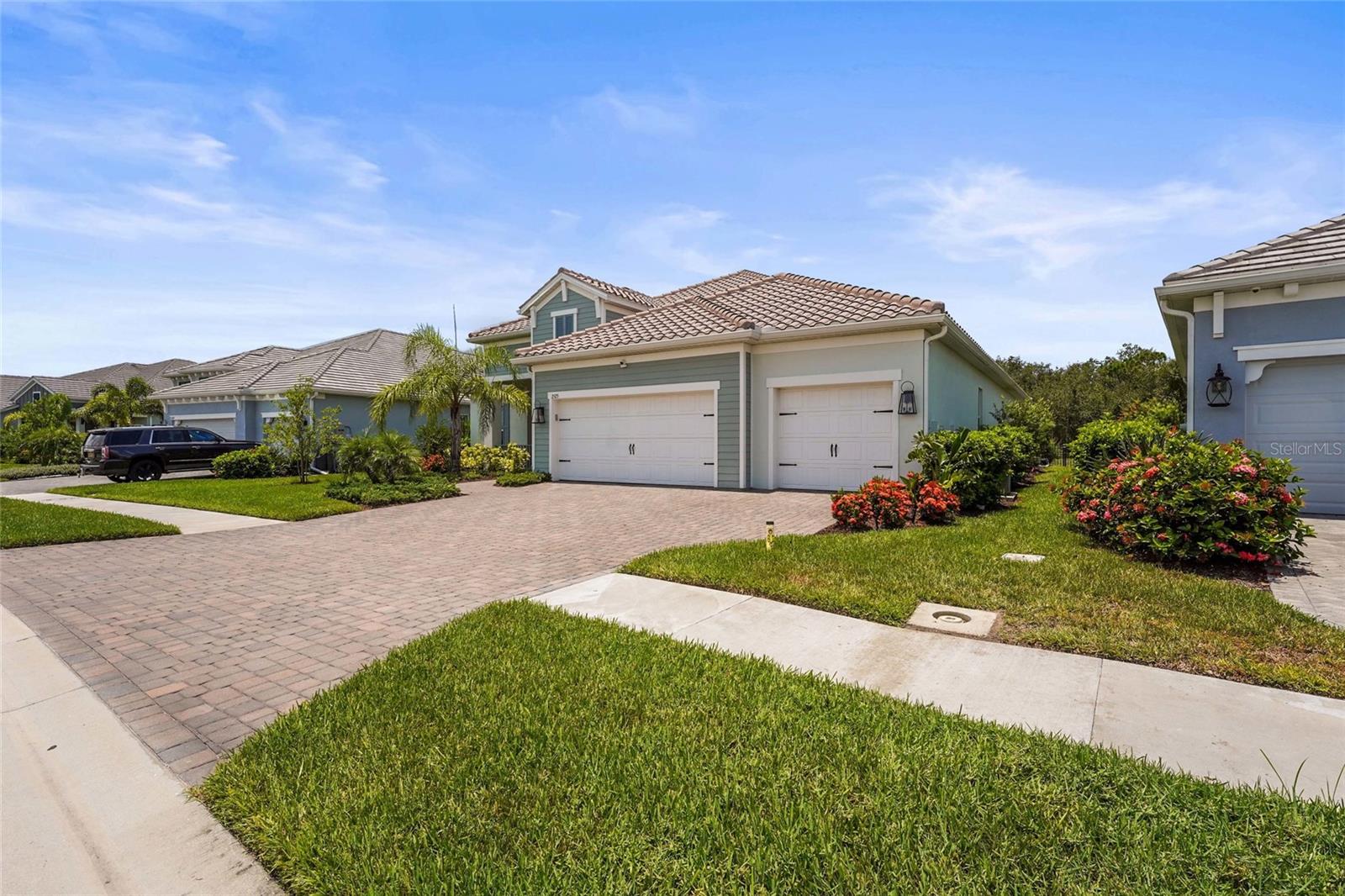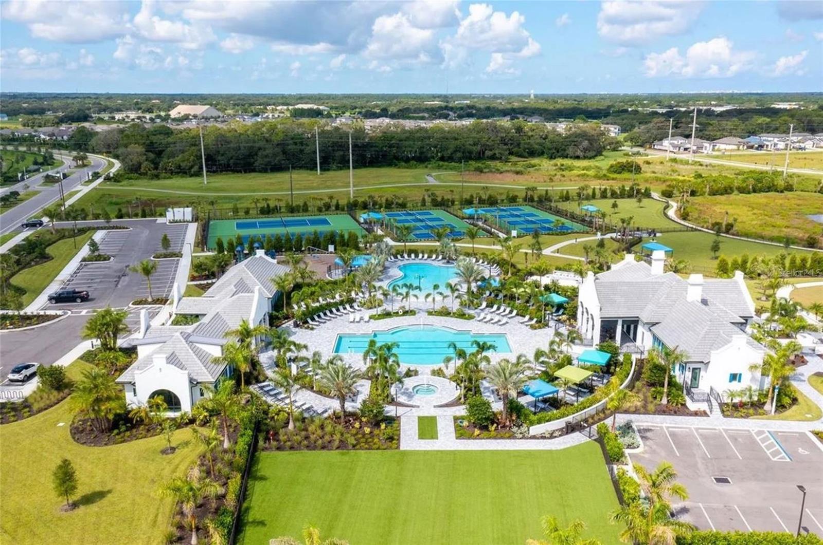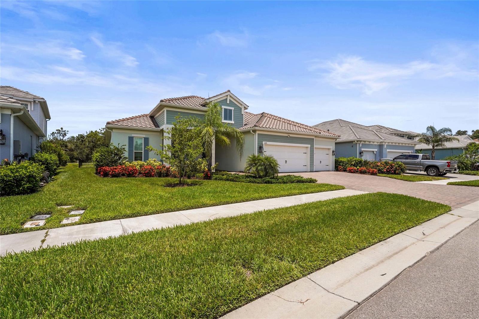 Welcome to 2525 Paradise Plum Dr., an immaculate Kiawah model located in the highly sought-after Windward at Lakewood Ranch. Built in 2022, this exceptional 4 bedroom + office, 3 bathroom home offers 2,927 square feet of interior living space and over 6,028 total square feet, thoughtfully designed for luxury, comfort, and functionality. Situated on a premier lakefront lot with peaceful western-facing views, this home showcases a seamless open concept layout that blends the great room, dining area, and gourmet kitchen. Perfect for entertaining, the kitchen features an expansive island, walk-in pantry, dedicated coffee bar, ceiling-height cabinetry and GE Caf stainless steel appliances including a double oven and a five-burner gas cooktop. The oversized island includes front-facing cabinets for additional storage. A walk-in pantry and soft-close cabinetry are included for everyday convenience. The laundry room is equipped with hookups for either gas or electric, and the home also includes extra 240v outlets in the garage to support a variety of utility or workshop needs. The primary suite offers a peaceful retreat, complete with coffered ceilings, a generous walk-in closet, and a spa-like bath featuring dual vanities, an oversized walk-in shower, and a freestanding soaking tub. Throughout the home, you'll find top-grade laminate flooring, sealed grout in all bathrooms, and dimmable lights with remote-controlled ceiling fans. Step outside to your own private oasis. The heated saltwater pool measures 18x33 feet and features a sun shelf, bubbler, three waterfalls, and colored LED lighting, both in the pool and in the clearview pool cage. The outdoor living area also includes ceiling outlets, outdoor ceiling fans, and a dedicated pool bath. The entire space is pre-wired for a gas or electric secondary pump or heater, and a roughed-in outdoor kitchen with gas and electric plumbing is ready for your custom design. The home also features sealed front and rear pavers, a full irrigation system, french drains at each corner of the yard, and three separate hose bibs for outdoor water access. Storm protection is maximized with storm smart automated and crank hurricane shutters, 360-degree hurricane-rated sliders and impact windows. Additional upgrades include a three-zone HVAC system and a whole-home saltwater purification system. The Vivint security system includes cameras on both sides of the home, the garage, and doorbell entry. The garage includes a 3-foot extension, attic storage with ladder access, and plenty of space for vehicles and additional storage. Enjoy a maintenance-free lifestyle in this gated community, where resort-style amenities include a large swimming pool, children's pool, spa, eight pickleball courts, two tennis courts, two dog parks, a clubhouse, playground, and state-of-the-art fitness center. A full-time activities director also coordinates community events, creating a vibrant and social atmosphere. Windward is ideally located near Waterside Place, downtown Sarasota, and some of Florida's most beautiful beaches. Don't miss your opportunity to make 2525 Paradise Plum Dr. your dream home - schedule your private tour today!