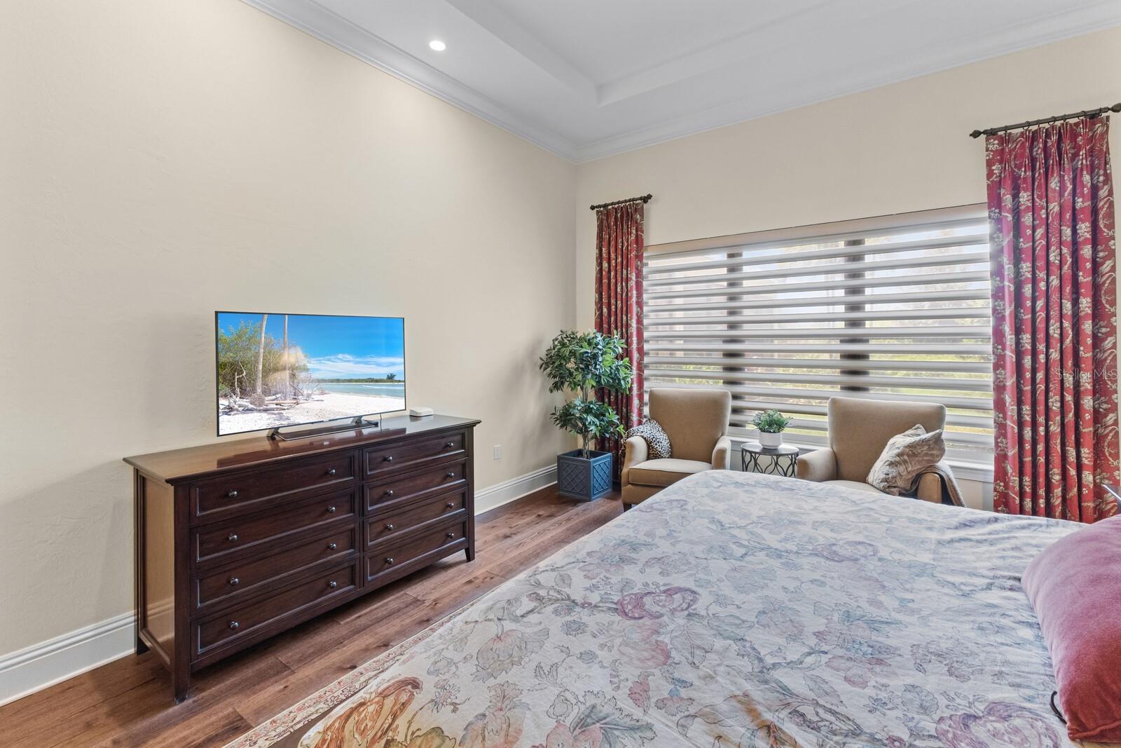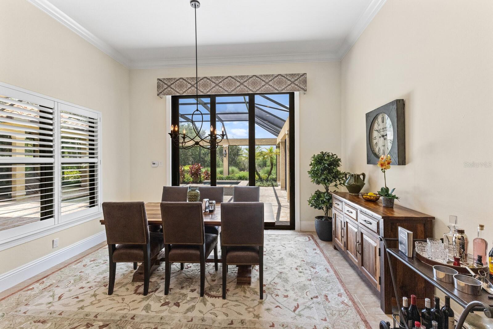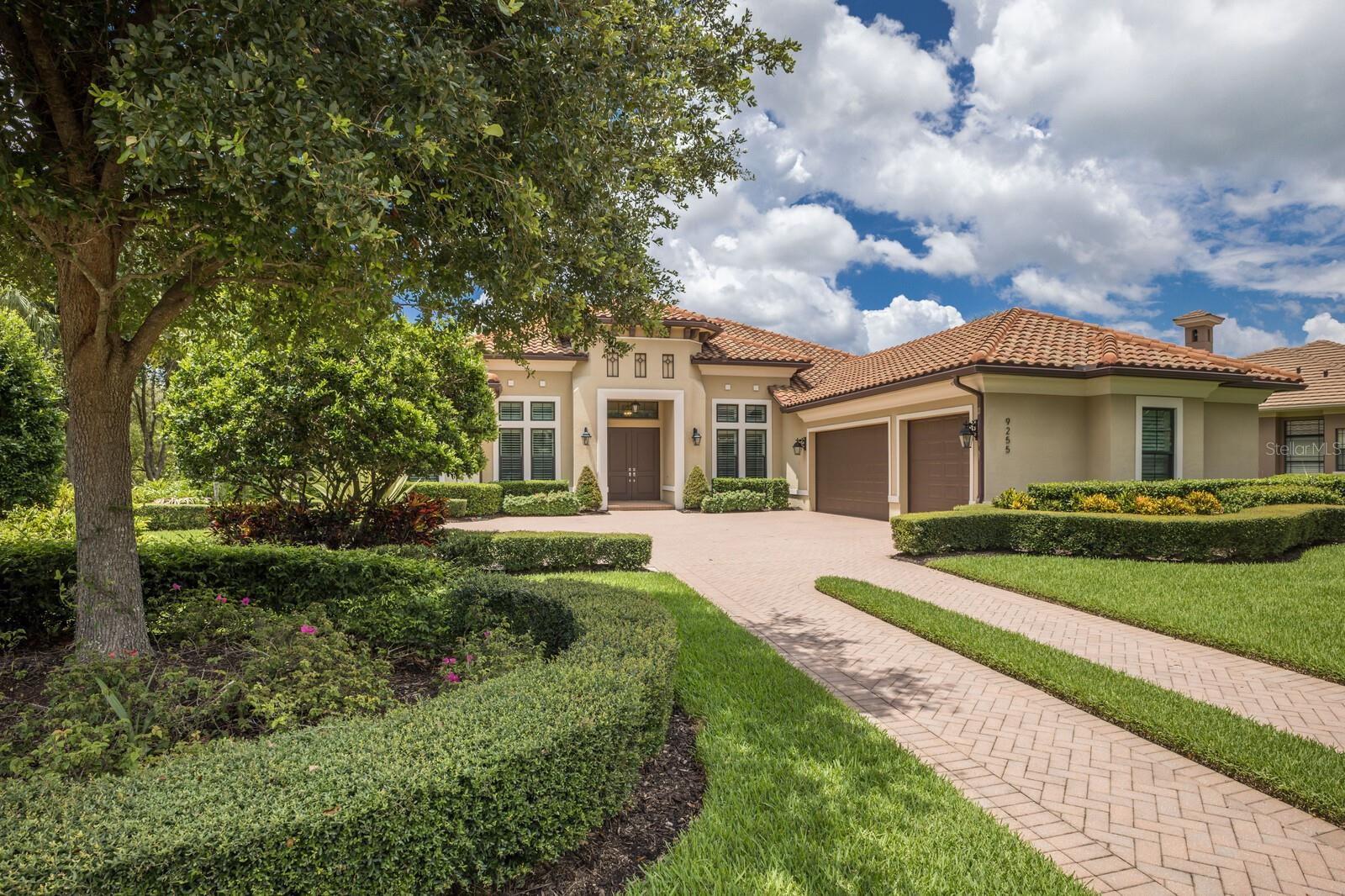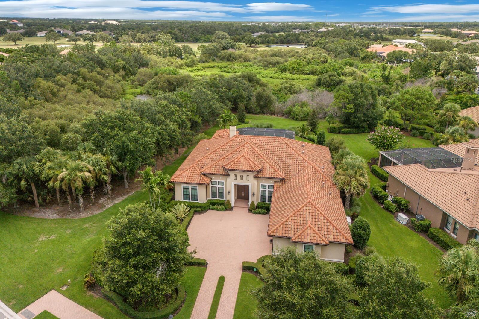 Nestled gracefully on a cul-de-sac within the prestigious Founders Club, this exceptional London Bay custom home offers a harmonious blend of sophistication and comfort. With three spacious bedrooms and three well-appointed bathrooms, the residence caters gracefully to both family and guests.Every element of this home, from its spacious rooms to its elegant finishes, was crafted by its current owner with care and attention to detail. Thoughtfully designed for those who appreciate versatility, the home boasts an inviting open floor plan. The main living area flows seamlessly into a large kitchen with high-end appliances and an adjoining eating space, perfect for gatherings and everyday living, while a separate yet inclusive dining room promises memorable evenings and special celebrations.Natural light floods the interiors through tall windows, illuminating the tasteful architectural details and accentuating the tall ceilings. Ceramic tile floors guide you through the main living spaces, while custom cabinetry and designer fixtures add a layer of sophistication. The generous primary suite features hardwood floors, dual walk-in closets and a spa-inspired bathroom with a soaking tub, walk-in shower, and twin sinks framing a makeup station providing luxurious comfort for all. Two additional guest suites are thoughtfully separated from the main suite, and from each other, ensuring a restful haven for visitors.A dedicated media room awaits for immersive entertainment experiences, and a tranquil study provides a private retreat for work or reflection. Step outside to the enclosed pool area, where a pleasant backyard unfolds beyond, offering serene views and complete privacy. The poolside is complimented by a summer kitchen as well as a separate cabana (currently boasting a firepit and comfortable couches), ideal for alfresco evenings and quiet conversations under the stars.Modern conveniences abound, including smart home features, wireless motorized window blinds and semi-sheer shades for privacy on sliding doors and large window openings, a whole-house generator for complete peace of mind, an air-conditioned garage (incorporating a Tesla charging station), and finally a rare "Florida basement" offering additional storage options.The community has just 262 home sites set around the Robert Trent Jones Jr. golf course and features a clubhouse, tennis courts, a recreation center and children's playground, and offers an active year-round social calendar. It lies just three miles from Interstate 75, and perhaps two more to the delights of University Town Center, while downtown Sarasota and its famed beaches are only a short distance further.Experience refined living and unparalleled tranquility in The Founders Club--your extraordinary opportunity awaits.