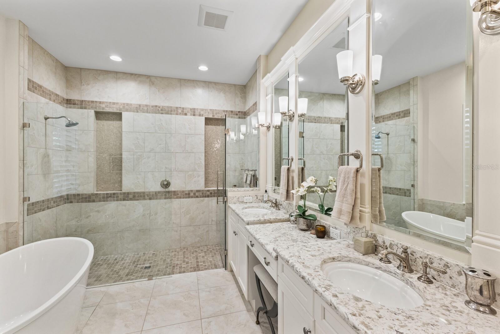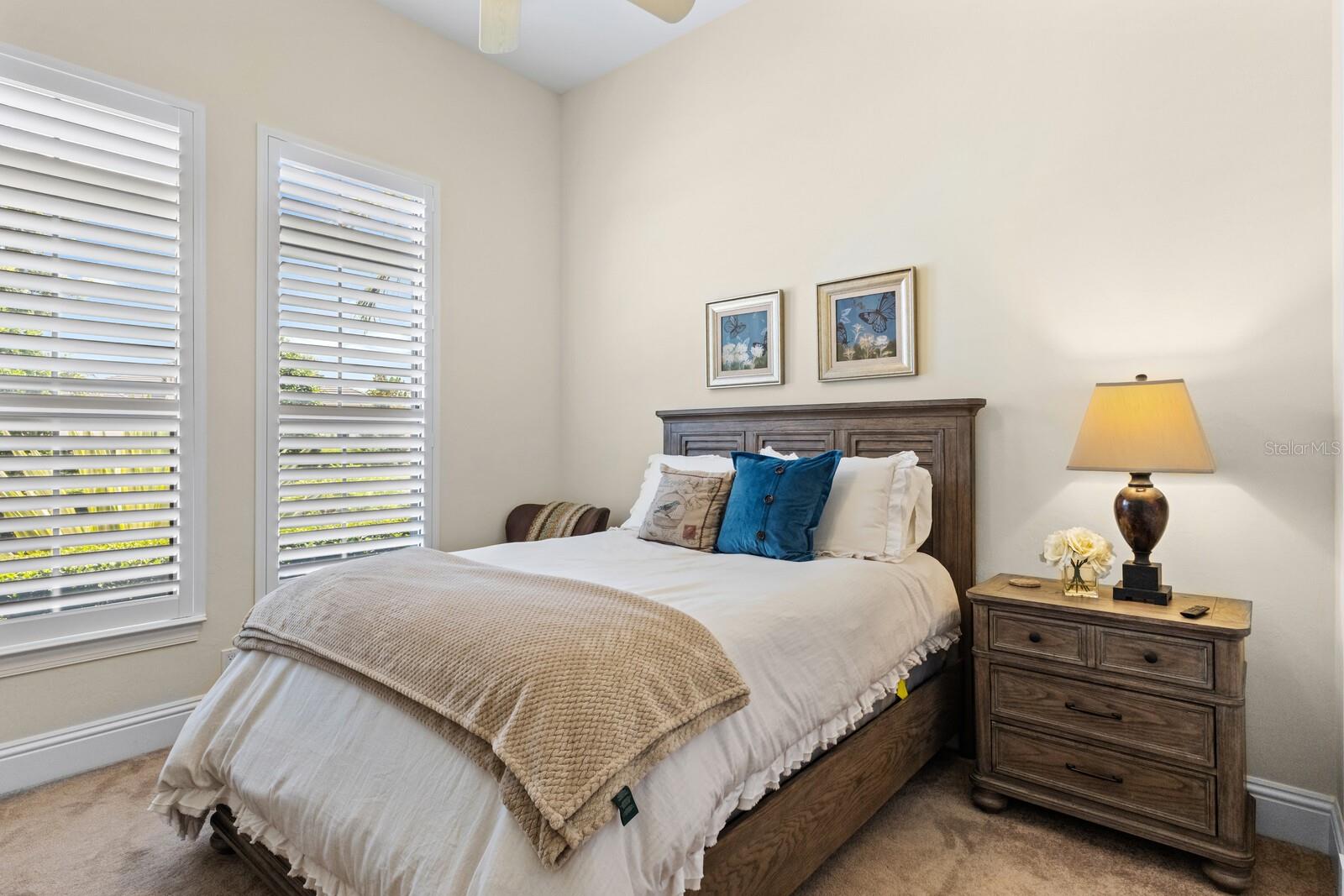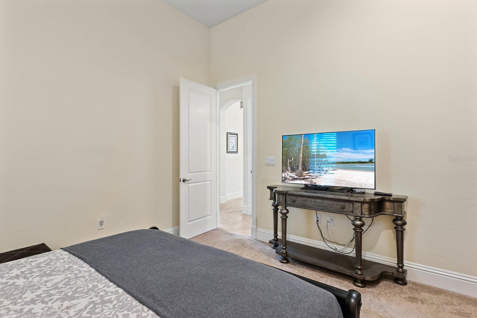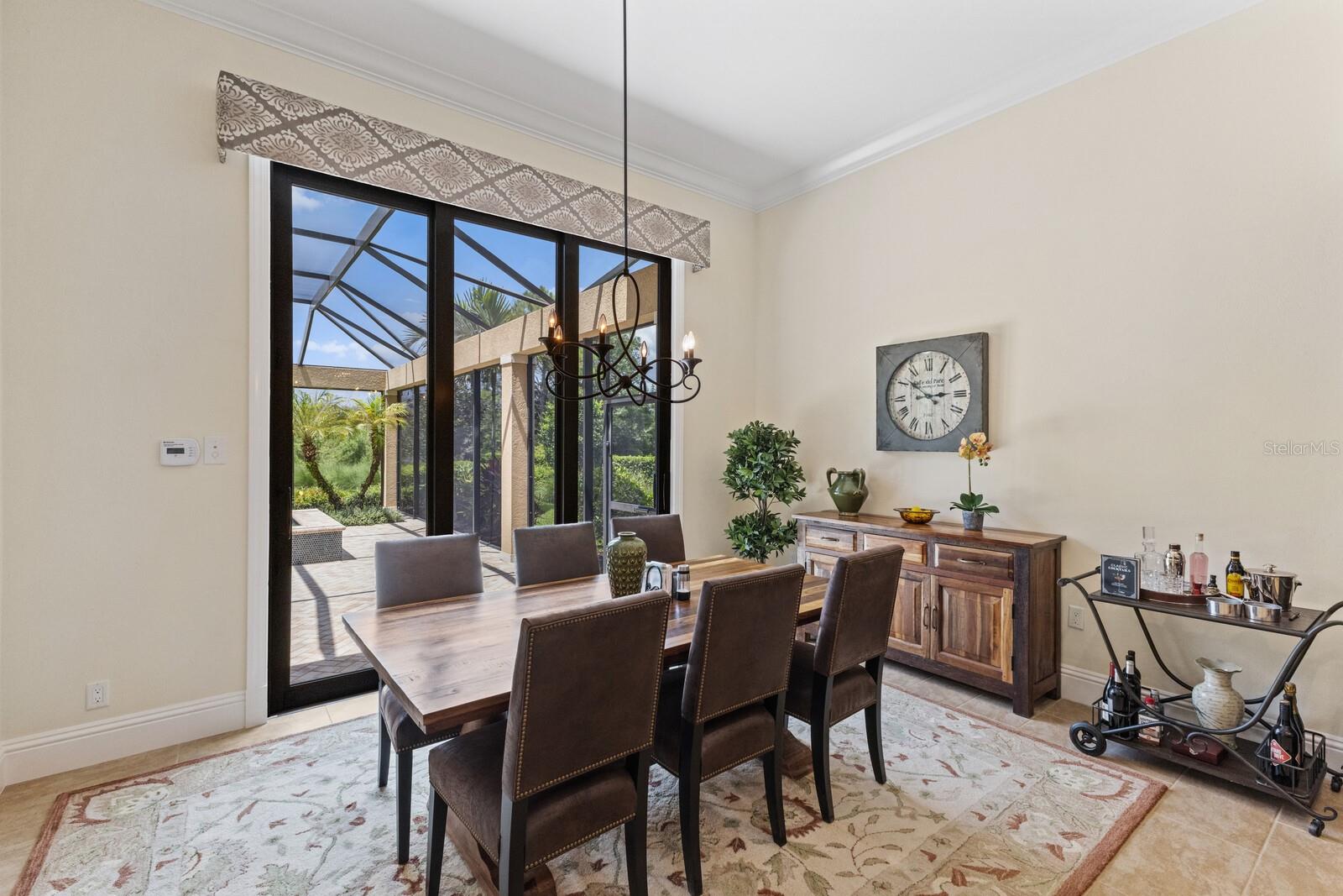 Nestled gracefully on a cul-de-sac within the prestigious Founders Club, this exceptional London Bay custom home offers a harmonious blend of sophistication and comfort. With three spacious bedrooms and three well-appointed bathrooms, the residence caters gracefully to both family and guests.Every element of this home, from its spacious rooms to its elegant finishes, was crafted by its current owner with care and attention to detail. Thoughtfully designed for those who appreciate versatility, the home boasts an inviting open floor plan. The main living area flows seamlessly into a large kitchen with high-end appliances and an adjoining eating space, perfect for gatherings and everyday living, while a separate yet inclusive dining room promises memorable evenings and special celebrations.Natural light floods the interiors through tall windows, illuminating the tasteful architectural details and accentuating the tall ceilings. Ceramic tile floors guide you through the main living spaces, while custom cabinetry and designer fixtures add a layer of sophistication. The generous primary suite features hardwood floors, dual walk-in closets and a spa-inspired bathroom with a soaking tub, walk-in shower, and twin sinks framing a makeup station providing luxurious comfort for all. Two additional guest suites are thoughtfully separated from the main suite, and from each other, ensuring a restful haven for visitors.A dedicated media room awaits for immersive entertainment experiences, and a tranquil study provides a private retreat for work or reflection. Step outside to the enclosed pool area, where a pleasant backyard unfolds beyond, offering serene views and complete privacy. The poolside is complimented by a summer kitchen as well as a separate cabana (currently boasting a firepit and comfortable couches), ideal for alfresco evenings and quiet conversations under the stars.Modern conveniences abound, including smart home features, wireless motorized window blinds and semi-sheer shades for privacy on sliding doors and large window openings, a whole-house generator for complete peace of mind, an air-conditioned garage (incorporating a Tesla charging station), and finally a rare "Florida basement" offering additional storage options.The community has just 262 home sites set around the Robert Trent Jones Jr. golf course and features a clubhouse, tennis courts, a recreation center and children's playground, and offers an active year-round social calendar. It lies just three miles from Interstate 75, and perhaps two more to the delights of University Town Center, while downtown Sarasota and its famed beaches are only a short distance further.Experience refined living and unparalleled tranquility in The Founders Club--your extraordinary opportunity awaits.