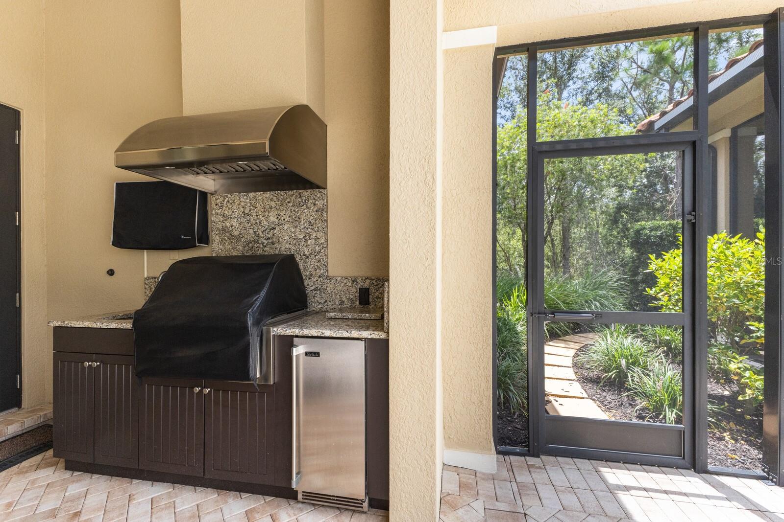 - Exterior: Outdoor Grill, Outdoor Kitchen, Private Mailbox, Rain Gutters, Sliding Doors, Storage