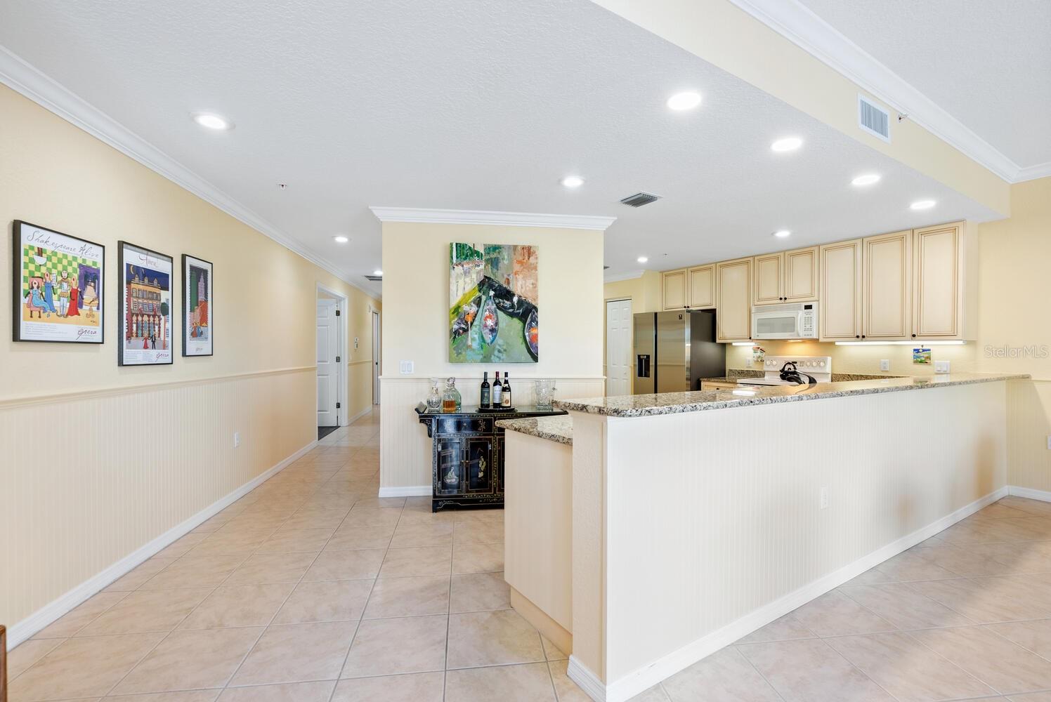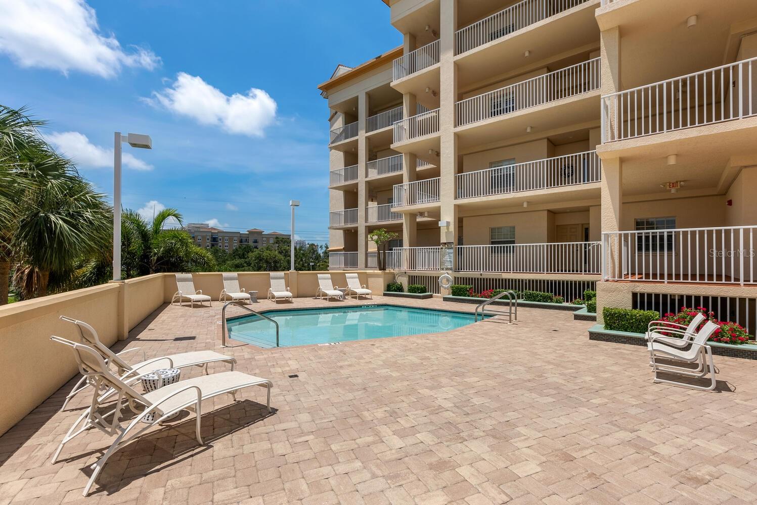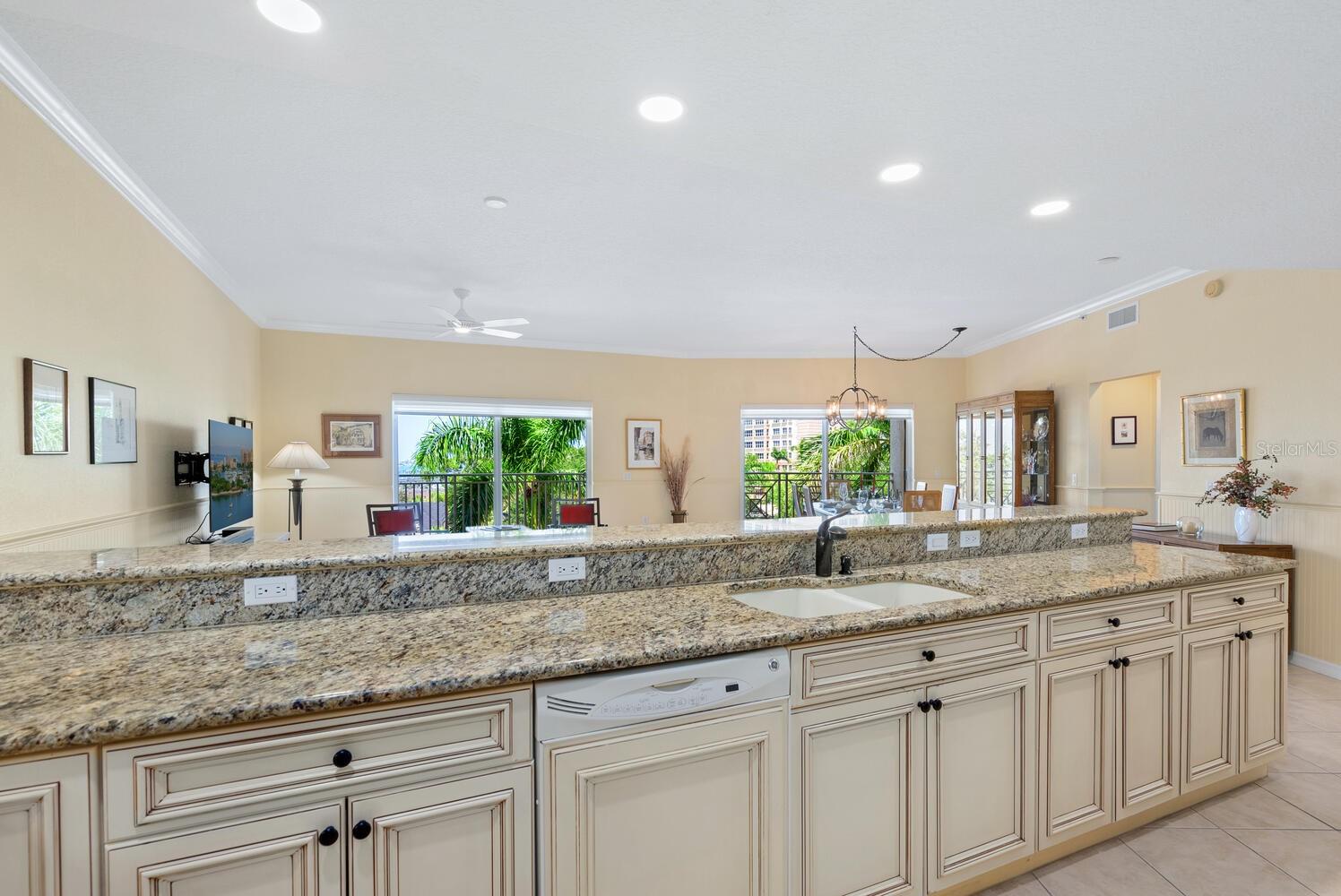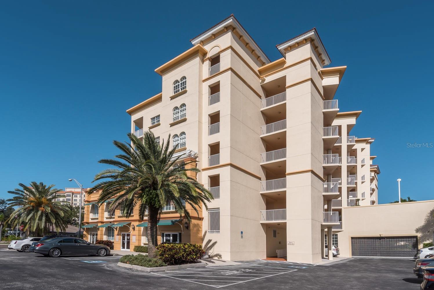 Welcome to this beautifully designed 3-bedroom, 2.5-bath condo offering 2,020 square feet of spacious, light-filled space in one of Sarasota's most desirable locations. This elegant end-unit lives like a single-family home and captures the essence of vibrant city living. Step into a gracious foyer with a built-in cushioned bench--perfect for greeting guests in style. The expansive living and dining area features two sets of sliding doors that open to a large private terrace where you'll enjoy stunning sunsets, partial bay views, and twinkling city lights in the evening. It's the ideal setting for relaxing or entertaining, seamlessly blending indoor and outdoor living. The open kitchen boasts wood cabinetry, granite countertops, a breakfast bar, and a closet pantry, perfect for everything from casual meals to festive gatherings. The owner's suite is a serene retreat with terrace access, two walk-in closets, and a luxurious bath. The second bedroom, with double-door entry, is currently used as a home office with a half bath conveniently located across the hall. The third bedroom includes its own walk-in closet and full bath, offering a private space for guests with a hallway pocket door for added privacy. This home also features impact-rated windows throughout and two secure, assigned parking spaces on the ground floor. San Marco amenities include a heated pool, fitness room, sauna, secure entry, and a pet-friendly environment. Step outside and stroll to The Bay Park, Sarasota's new 53-acre signature waterfront park offering trails, events, and natural beauty. Enjoy the convenience of nearby restaurants, grocery stores, and downtown Sarasota's vibrant shopping, dining, arts, and cultural scene. You're also just minutes from the Ringling Museum, Lido Key, St. Armands Circle, and easy access to world-class theater, symphony, opera, ballet, and more. This is Sarasota living at its finest--where everyday life feels like a front-row seat to the best of culture, coast, and community.