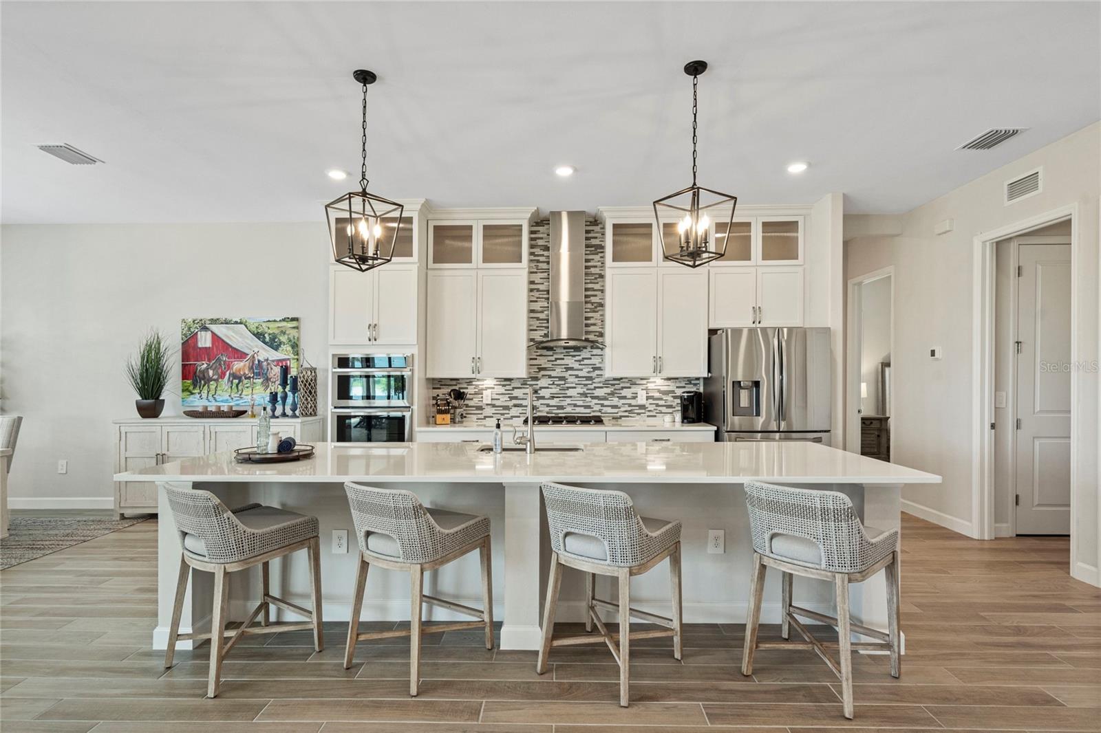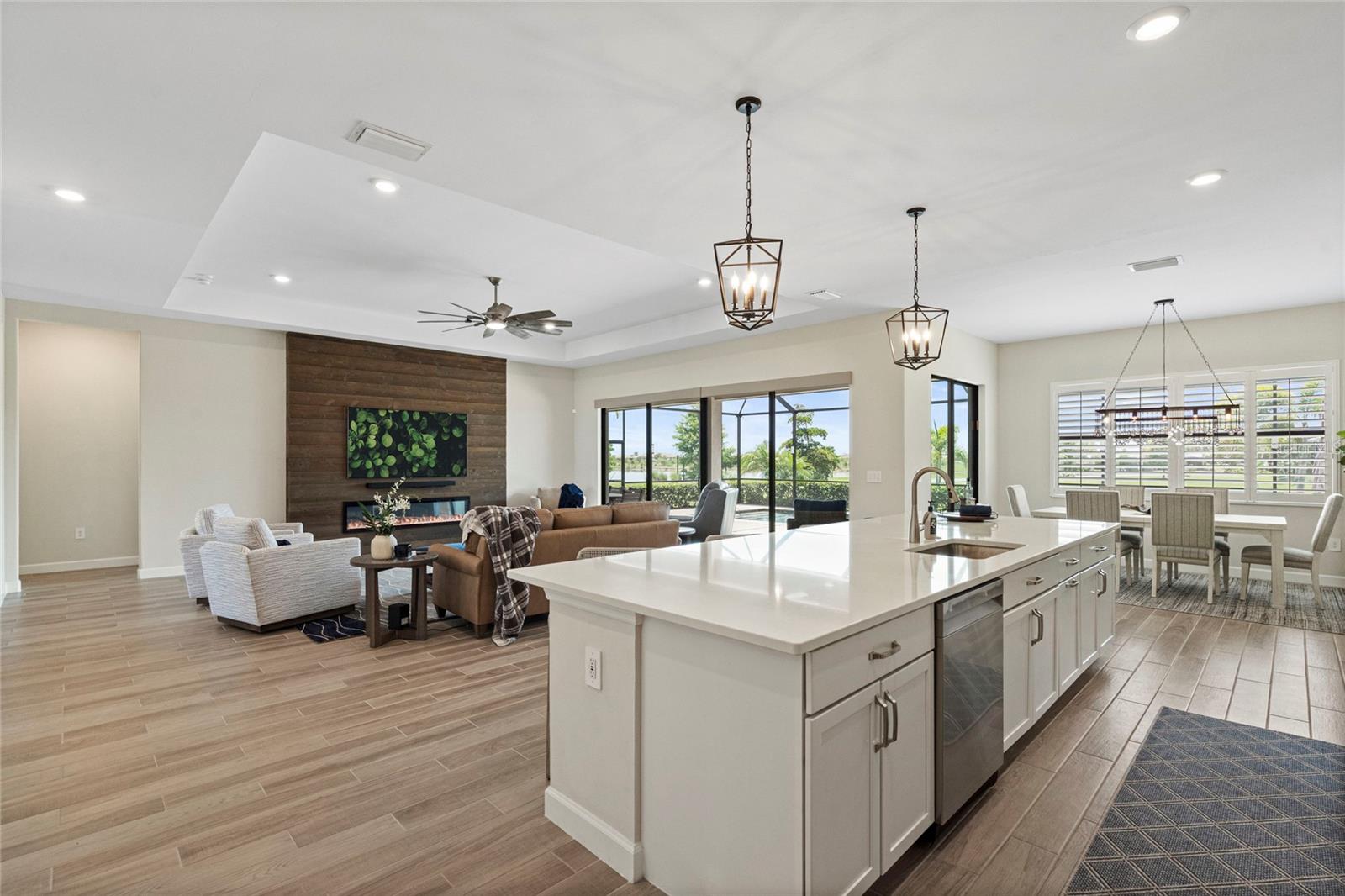 Under contract-accepting backup offers. ***MULTIPLE OFFERS RECEIVED, Highest and Best due by 5pm 10/24/25*** Welcome to this sought after model, the Sunset, in Lakewood Ranch's highly coveted Lorraine Lakes. This fantastic, gated community with resort style amenities makes coming home feel like a vacation. This newly built home in 2022 has already been upgraded with many custom features making this home stand out above the rest. As you enter, you are greeted by double front doors and a spacious dramatic 12 ft foyer, followed by the impressive open concept floor plan of this popular Sunset model. The great room with tray ceiling and newly installed custom electric fireplace feature wall in 2024 is the perfect space to relax and unwind. The gorgeous kitchen with massive quartz island features some of the home's most impressive upgrades that include cabinets with custom edged glass cabinet tops and built in lighting. The cabinetry has been enhanced with reinforced expanded shelving, high-end hardware, and soft closing features. The appliances have all been replaced and upgraded to a higher standard than supplied by the builder. A stylish and sleek range hood and backsplash complete the fantastic kitchen upgrades. Elegant and timeless upgraded lighting on dimmer switches is featured throughout the home, adding both style and value. There are some things you can't put a price on, and the spectacular sunset views from this oversized screened in lanai with pool and spa is one of them. This spectacular western exposure pool home with unobstructed 160-degree water views from every angle is sure to be a favorite feature. The professionally landscaped corner lot is great that you do not have any other homes on the south side of the property. Additional highlights include custom closet organizers, UV light on the HVAC, 10 ft ceiling height in the main living area, plantation shutters, private primary suite bath with customized shower including a rain dump, privacy SPF sun control motorized roller shades on the back lanai, 3 car garage with epoxy garage floor, professionally landscaped yard with an array of tropical palm trees showcased by the landscape mood lighting, and a gas line for the outdoor grill. Lakewood Ranch is recognized as the number one selling master planned community, and Lorraine Lakes helps set the standards to make that recognition possible. The HOA benefits include lawn maintenance, irrigation, cable, internet, 3 entrances, many common areas, gate guard, and 24-hour security. The amazing resort style town center features amenities including a full-service restaurant, tiki bar, arcade, gym, fitness center, saunas, pickle ball, tennis, volleyball, resort pool, lap pool, and splash pad to name a few. Lorraine Lakes flourishes with walking paths and lovely lakes including the main pond with dock, and fishing is permitted. Important to note, the builder has completed selling out the estate series homes making this a rare and valuable find. This home conveyed for 1.025M in Feb of 2024, the sellers have made condition improvements and price concessions to be competitive in the current market. Schedule your showing today!