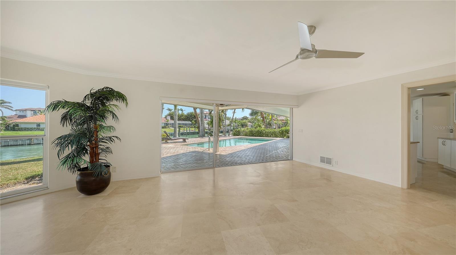 One or more photo(s) has been virtually staged. Perfectly positioned on deep canal waters just moments from Sarasota Bay, this Bird Key residence captures the essence of relaxed coastal living. Set on a generous lot and framed by tropical landscaping, this home blends privacy with proximity to Sarasota's vibrant downtown and waterfront destinations. A circular brick-paver driveway leads to the welcoming front entry, while a brand-new roof (2024) offers peace of mind. Inside, more than 2,400 square feet of light-filled living space unfolds across an open, thoughtfully designed floorplan. Neutral oversized tile flooring flows throughout the main living areas, unifying the open-concept kitchen, family room, and dining spaces. The kitchen boasts granite countertops, sleek cabinetry, stainless steel appliances, a breakfast bar, and expansive counter space--ideal for both daily living and effortless entertaining. Walls of sliding glass doors extend the living area out to the screened lanai, where a covered lounge and pavered deck frame the sparkling pool. The residence features three spacious bedrooms, including a private primary suite with large walk-in closet and a en-suite bathroom. The home's split-bedroom layout ensures comfortable accommodations for guests, while ample storage and a generous laundry area add everyday functionality. A newly rebuilt seawall (2022) and deep-water dock provide direct access to Sarasota Bay, making this a true boater's retreat. Enjoy morning coffee or sunset cocktails with tranquil canal views just steps from your back door. Bird Key is one of Sarasota's most sought-after neighborhoods, prized for its central location, manicured streets, and strong sense of community. Residents enjoy proximity to the Bird Key Yacht Club, with optional membership for boating, tennis, fitness, and dining. Just minutes away are the world-class shopping and dining of St. Armands Circle, pristine beaches of Lido and Longboat Key, and Sarasota's thriving arts and cultural district.This residence offers an opportunity to live on the water with generous indoor and outdoor spaces--perfect for savoring the Florida lifestyle in style and comfort.