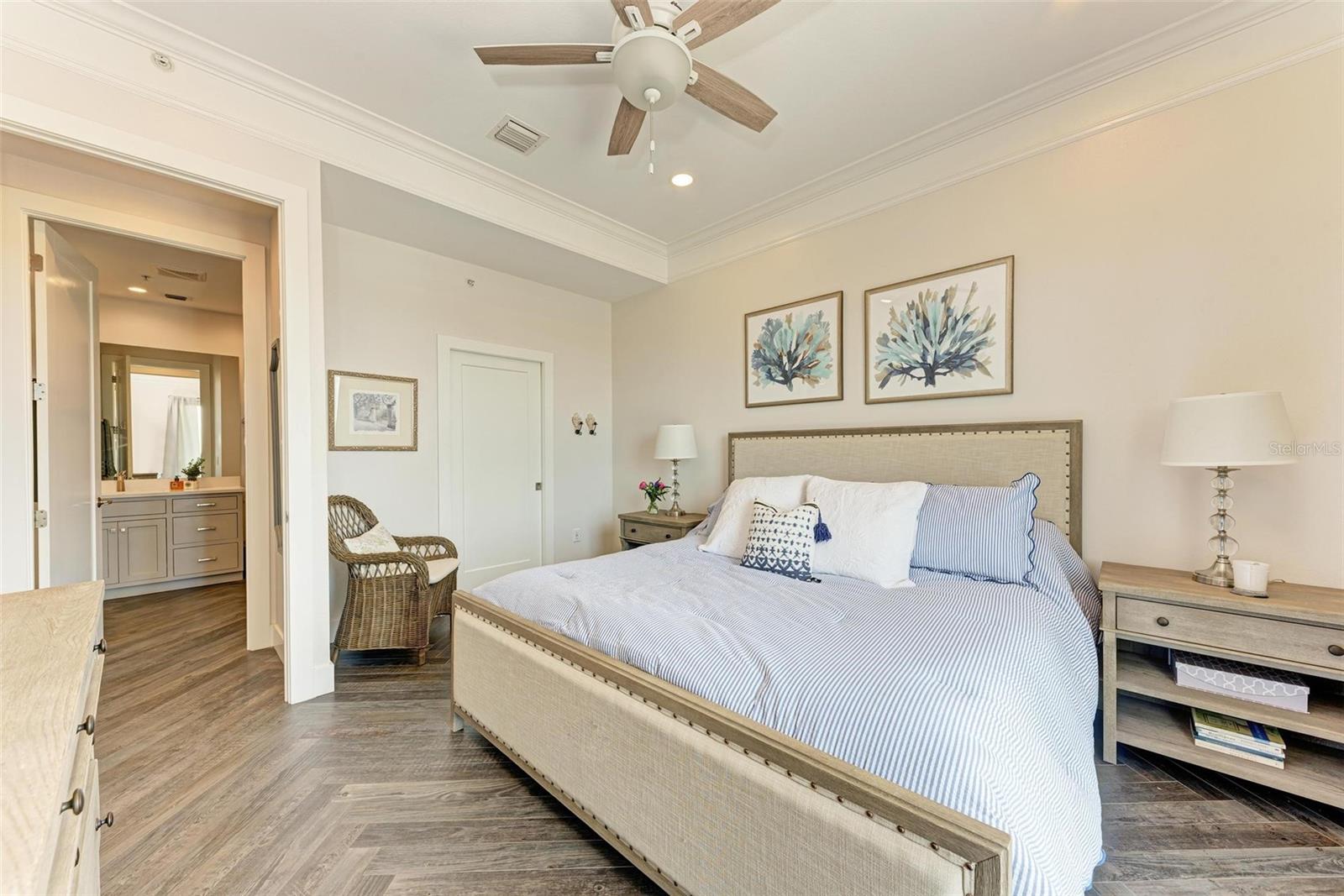 Welcome to this totally updated 2Bed/1Bath Downtown Sarasota Penthouse unit, offering all the amenities of a luxury hotel, and the lavish style of a new building, at a third of the cost. Beautiful kitchen with quartz countertops, open floor plan into the living room and dining area. An opulent bath includes a deluxe shower, and surround-mirrors, located steps from the large primary bedroom. The primary bedroom has a walk-in closet and glass sliders for easy access to the covered balcony. Laundry is in unit with additional storage space. Enjoy the outdoors from three access points to your 44-foot covered balcony that spans the entire length of the unit. This is a highly-amenitized building, and it includes 24/7 manned reception/security desk, all access points are key fobbed, on-site building manager, state of the art fitness center, dramatic club room, catering kitchen, multimedia room, sitting room, massage room, aerobics/yoga room, conference room, business center, and two guest suites. The outdoor grounds showcase a 70-foot luxury pool, jetted spa, barbeque grill and tables, and a meditation garden with reflection pond, all within Sarasota's Rosemary District. Many restaurants and grocery shopping are a close distance away, and the new Bayfront Park is a quick five-minute walk away.