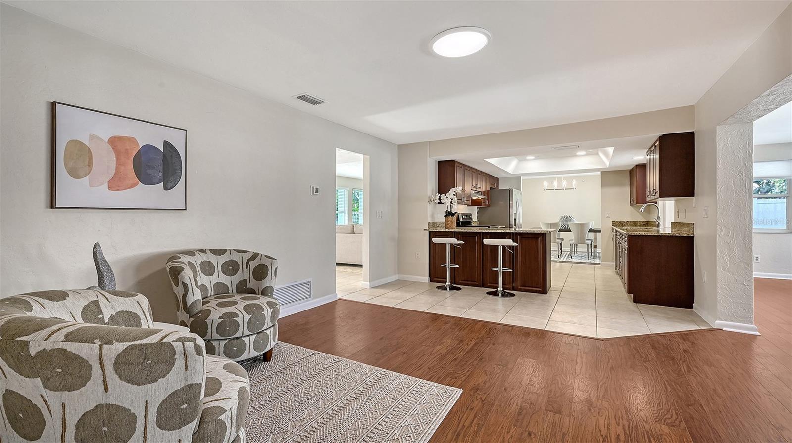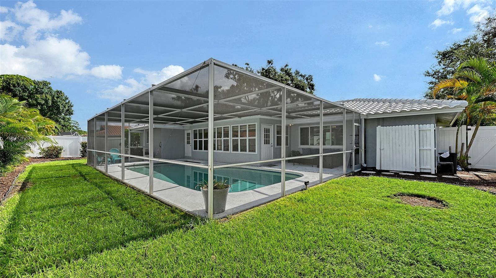 BEAUTIFULLY UPDATED AND MOVE-IN READY GULF GATE POOL HOME WITH BRAND-NEW TILE ROOF! 2025 UPDATES ALSO INCLUDE CARPET, BATHS, EXTERIOR AND INTERIOR PAINT, DRIVEWAY, FENCE, LANDSCAPING AND MORE! Located in the sought-after Gulf Gate Woods community, this beautifully refreshed 3-bedroom, 2 full bathroom residence blends timeless design with modern upgrades, all nestled just minutes from world-renowned Siesta Key Beach. Step inside to discover a spacious and inviting layout ideal for both everyday living and entertaining. The bright and spacious living room welcomes you with natural light and new neutral tone plush carpet. The open-concept kitchen features a just completed raised ceiling with recessed lighting and additional 2017 improvements including stainless steel appliances, soft close cabinetry, and granite countertop, and flows seamlessly into a generous breakfast room and separate dining room too! The thoughtful split-bedroom floor plan ensures privacy, with the primary suite positioned separately from the guest bedrooms. The primary bedroom is a true retreat, featuring a renovated en-suite bath with a sleek subway tile shower enclosure, on-trend black fixtures, new floating vanity and modern finishes. Two additional bedrooms are located on the opposite wing and share an updated full bath with a granite topped vanity. The additional 24x10 bonus room is a great space for entertaining or relaxation, with windows out to your own private oasis which includes the sparkling pool and screened lanai. A 2023 water heater ensures energy efficiency, while the spacious interior laundry room adds everyday convenience. The prior owner replumbed the home with PVC pipes. The attached two-car garage includes abundant cabinetry, ideal for storage and organization. This home is in the X flood zone and is high and dry. Gulf Gate Woods is a well-established neighborhood known for its sidewalks, streetlights, and friendly sense of community. Zoned for A-rated schools, this prime Sarasota location places you within 10 minutes of Siesta Key Beach, downtown Sarasota, the Legacy Trail, golf courses, fitness centers, Sarasota Memorial Hospital, fine dining, UTC and the charming shops and restaurants of Gulf Gate Village. Whether you're seeking a full-time residence, seasonal getaway, or a smart investment, this home offers flexibility and would also make an excellent option for a long or short-term rental. This is a rare opportunity to own a tastefully updated pool home in one of Sarasota's most desirable neighborhoods. Schedule your private showing today.