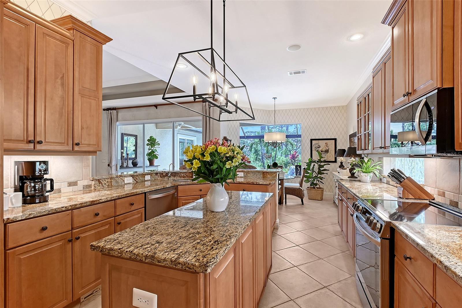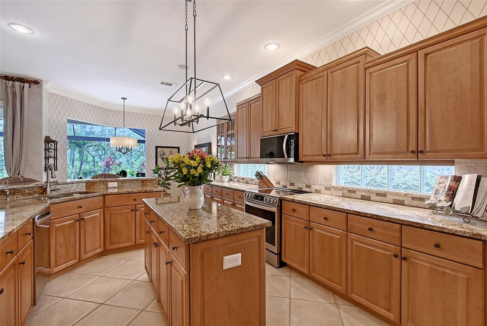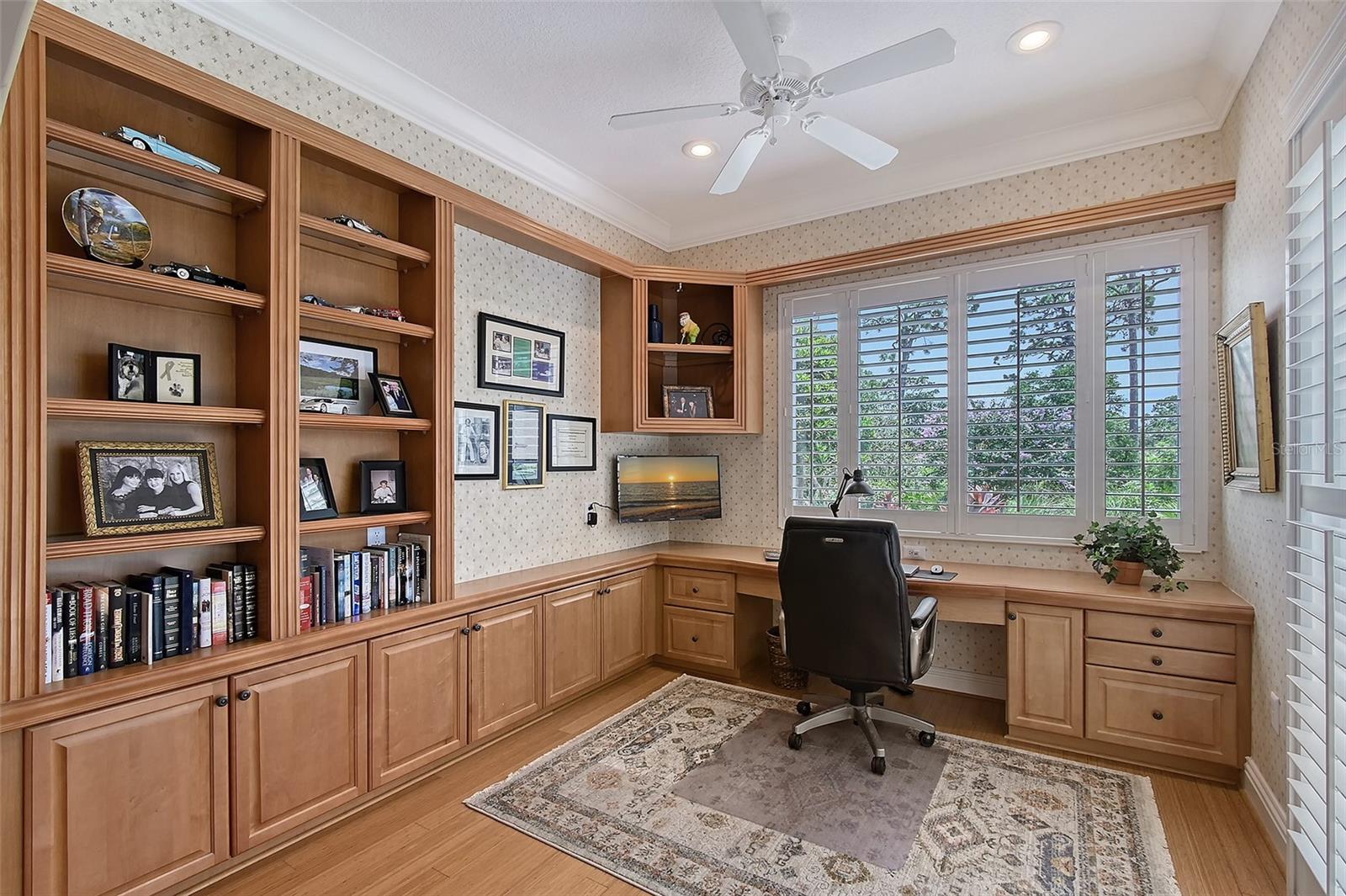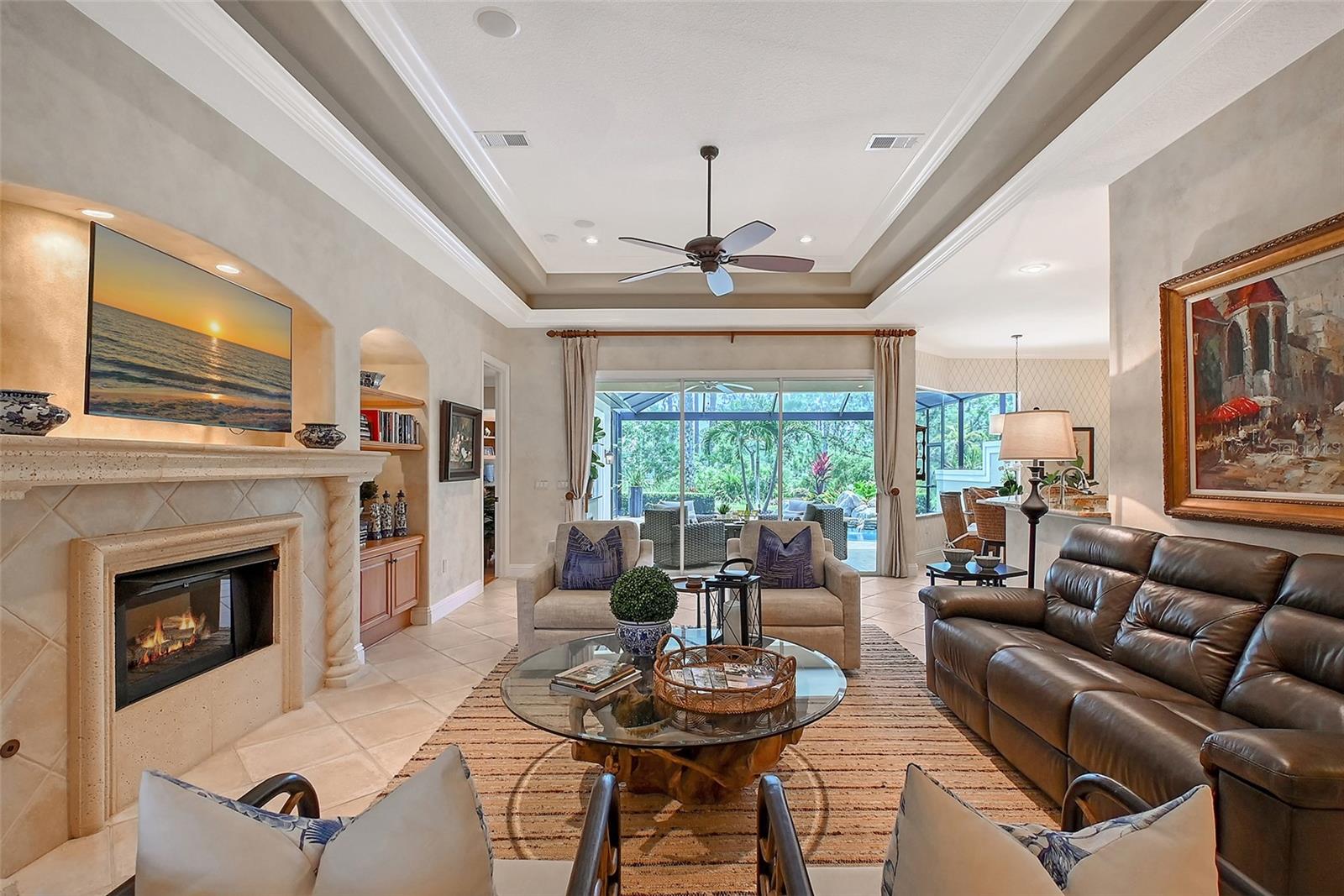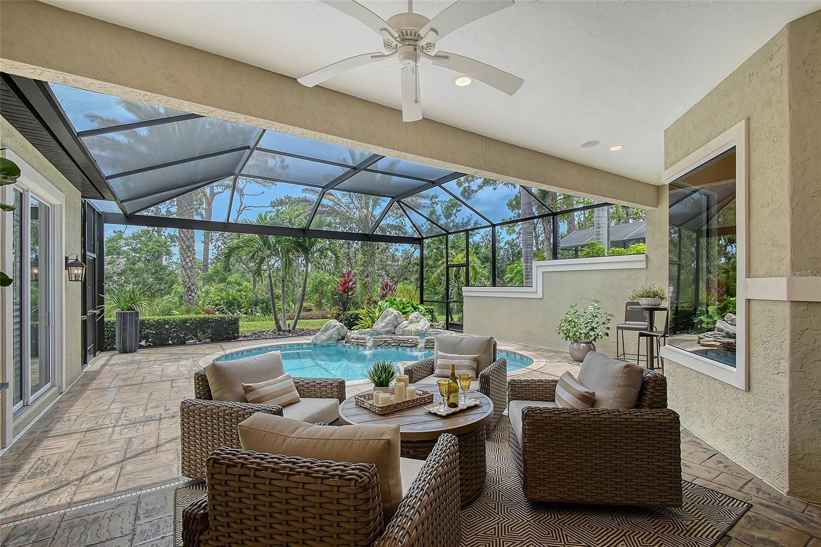 Welcome to Emerald Woods, a desired cul-de-sac within The Oaks Preserve, and this private LeeWetherington custom home that will check all the boxes, and more. Situated on one of thelargest lots and surrounded by preserve for privacy, you'll find essence and elegance as thecolor palette interplays with natural light, and the southern facing lanai and pool will be whereyou can enjoy the maintenance free lifestyle, and the quality of life second to none. Enter thefoyer through 8' insulated front doors with impact glass, and 12' high ceilings with widedecorative crown molding. Designer exceptional interior and exterior details and finishes arecompleted and tastefully appointed. The kitchen offers custom 42" wood upper cabinetry withover and under cabinet lighting, granite countertops, a decorative tile backsplash, center islandwith base cabinetry, a pantry with rollout shelving, stainless appliances (2023), and a seamlessglass aquarium window in the breakfast nook. The great room has 17" stone tile flooring,custom built-in cabinetry and a custom designed stone fireplace with electric logs. The openfloor plan dining room has a hand painted tray ceiling, and a built in buffet with a granite topand 42" upper cabinets with glass inserts. A fantastic escape awaits when you walk out yoursliding glass doors to the outdoor oasis that includes a newly resurfaced custom designed pool and spawith a waterfall feature and a new pool screen and cage with a panoramic view maximizing theenjoyment of the outdoor space. A dry bar/buffet makes entertaining outdoors so easy. Theprimary suite offers an extended office/owner's retreat with a custom designed built in desk andcabinetry, handsome bamboo wood floors, two large walk-in closets with built-ins, a primary bath withnew vanities, undermount sinks, and designer brass and chrome fixtures. The second light andbright guest suite has wood floors, a bay window with plantation shutters and an ensuitecustom designed bath. Additional special features include a new roof (2023) new landscapingand sod, a paver brick driveway, and an oversized 2 car garage with tandem parking for a 3rd carand tons of storage and cabinetry. Experience the best in this move in ready home, and beginyour lifestyle at The Oaks Country Club, with the best location in Sarasota County. Centrallylocated to all the beautiful beaches and offering two 18 hole championship golf courses, tennis,pickleball, croquet, fitness center, dining, and a wide variety of social options. The Oaks is aPlatinum Club of America, an Elite Distinguished Club of The World, and best of all there is nowaitlist for a golf or social membership! Don't wait to begin your terrific and exceptional lifestyle!