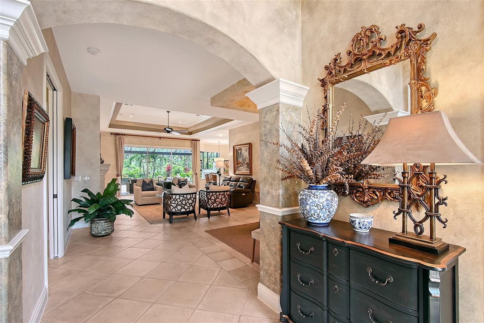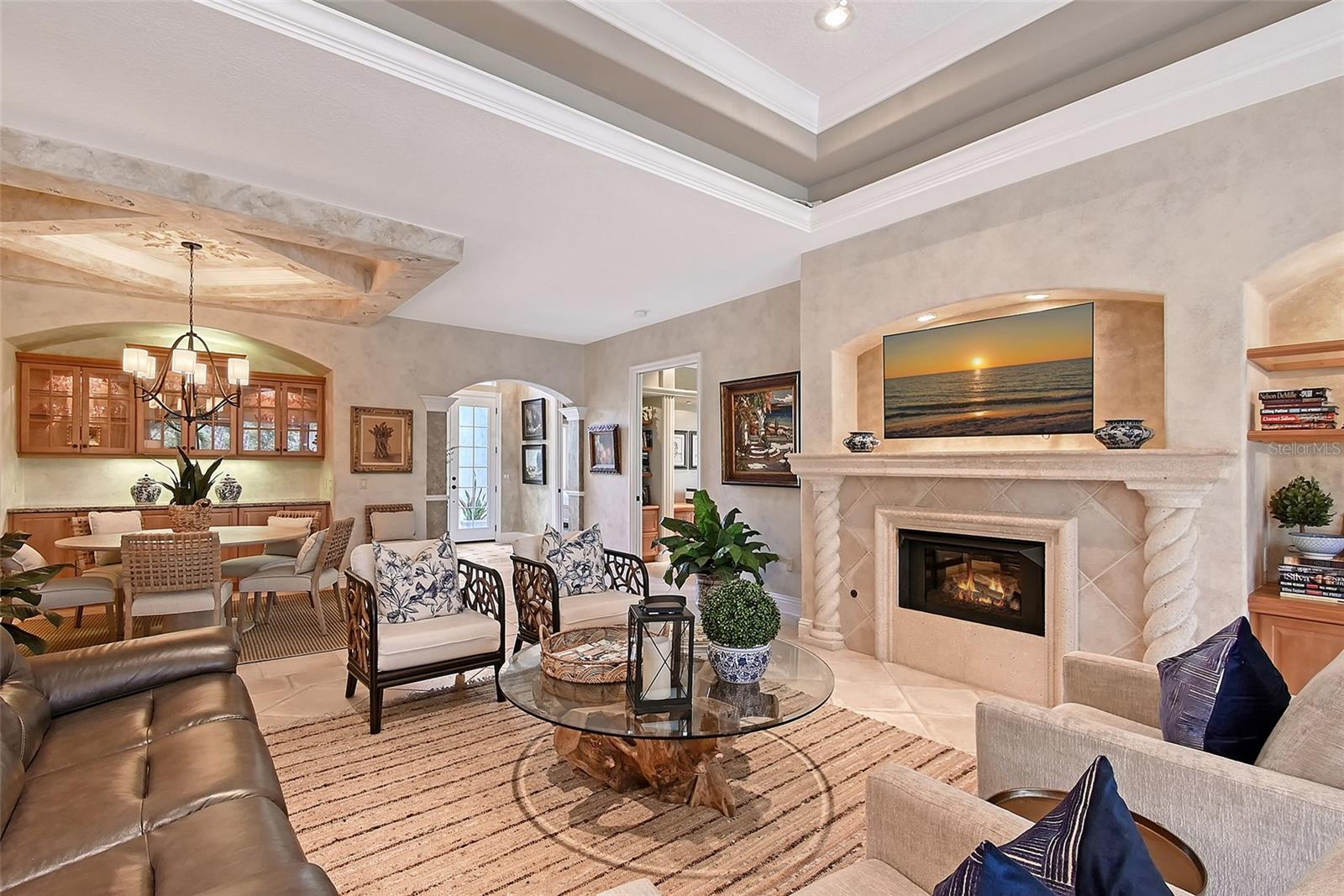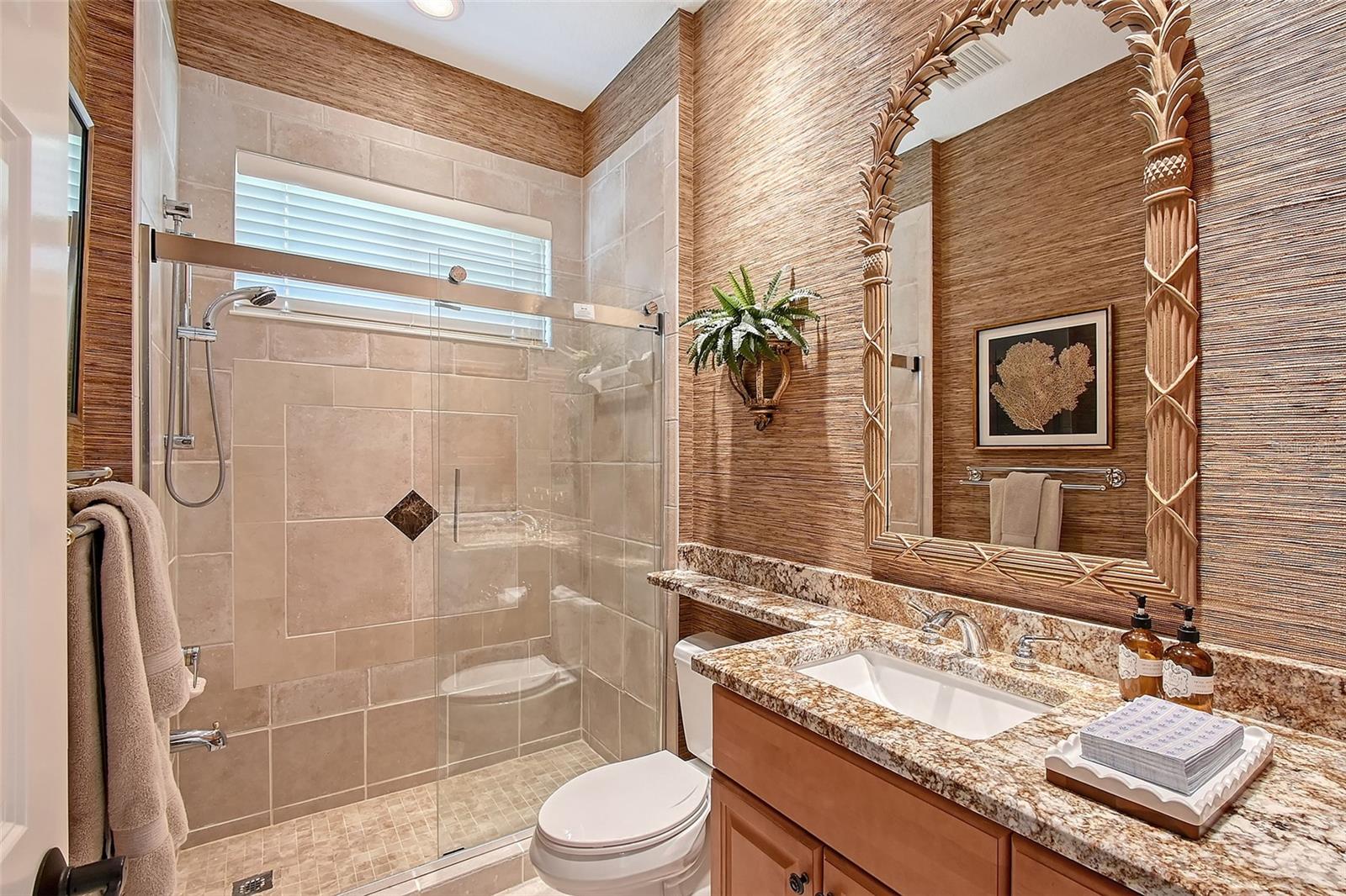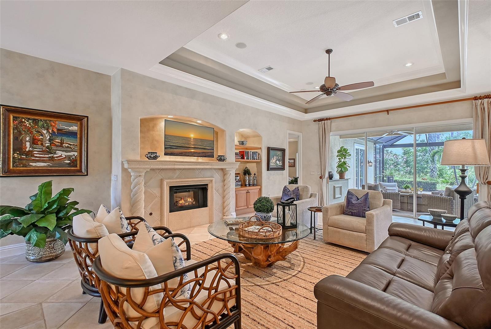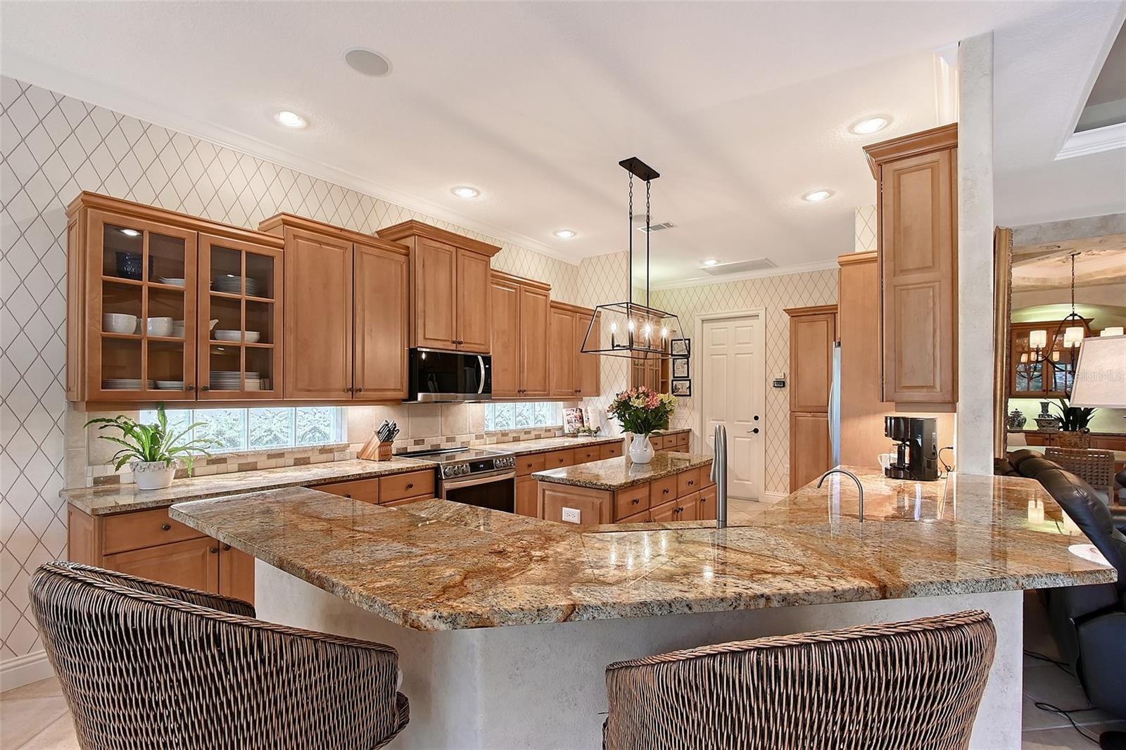 Welcome to Emerald Woods, a desired cul-de-sac within The Oaks Preserve, and this private LeeWetherington custom home that will check all the boxes, and more. Situated on one of thelargest lots and surrounded by preserve for privacy, you'll find essence and elegance as thecolor palette interplays with natural light, and the southern facing lanai and pool will be whereyou can enjoy the maintenance free lifestyle, and the quality of life second to none. Enter thefoyer through 8' insulated front doors with impact glass, and 12' high ceilings with widedecorative crown molding. Designer exceptional interior and exterior details and finishes arecompleted and tastefully appointed. The kitchen offers custom 42" wood upper cabinetry withover and under cabinet lighting, granite countertops, a decorative tile backsplash, center islandwith base cabinetry, a pantry with rollout shelving, stainless appliances (2023), and a seamlessglass aquarium window in the breakfast nook. The great room has 17" stone tile flooring,custom built-in cabinetry and a custom designed stone fireplace with electric logs. The openfloor plan dining room has a hand painted tray ceiling, and a built in buffet with a granite topand 42" upper cabinets with glass inserts. A fantastic escape awaits when you walk out yoursliding glass doors to the outdoor oasis that includes a newly resurfaced custom designed pool and spawith a waterfall feature and a new pool screen and cage with a panoramic view maximizing theenjoyment of the outdoor space. A dry bar/buffet makes entertaining outdoors so easy. Theprimary suite offers an extended office/owner's retreat with a custom designed built in desk andcabinetry, handsome bamboo wood floors, two large walk-in closets with built-ins, a primary bath withnew vanities, undermount sinks, and designer brass and chrome fixtures. The second light andbright guest suite has wood floors, a bay window with plantation shutters and an ensuitecustom designed bath. Additional special features include a new roof (2023) new landscapingand sod, a paver brick driveway, and an oversized 2 car garage with tandem parking for a 3rd carand tons of storage and cabinetry. Experience the best in this move in ready home, and beginyour lifestyle at The Oaks Country Club, with the best location in Sarasota County. Centrallylocated to all the beautiful beaches and offering two 18 hole championship golf courses, tennis,pickleball, croquet, fitness center, dining, and a wide variety of social options. The Oaks is aPlatinum Club of America, an Elite Distinguished Club of The World, and best of all there is nowaitlist for a golf or social membership! Don't wait to begin your terrific and exceptional lifestyle!