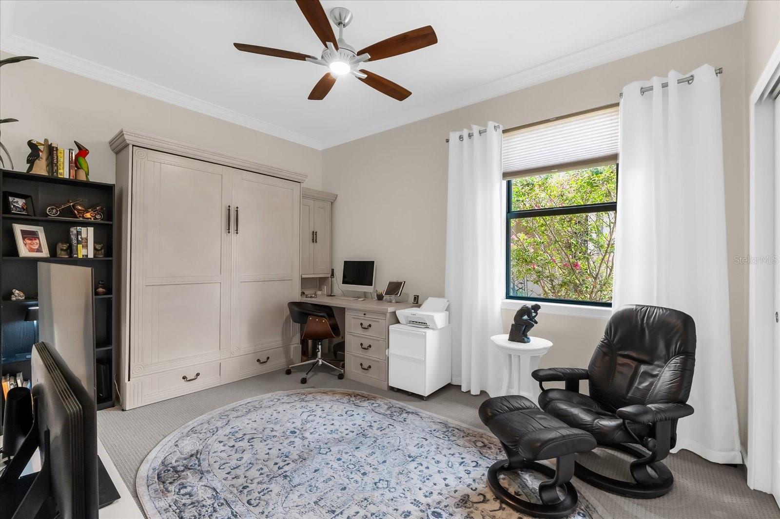 PERFECTLY DESIGNED STEEL CREEK MODEL -WATERFRONT LIVING IN DEL WEBB.This stunning Steel Creek Garden Series Model is truly a trifecta of perfection: the ideal location,breathtaking water views, and an intelligently designed floorplan. Here's your chance to own in thehighly desirable 55+ Del Webb community, located within Lakewood Ranch--the nation's premier multi-generational planned community.Spanning 1,388 sq ft of thoughtfully designed living space on a quiet street, this home features 2bedrooms and 2 bathrooms, with the flexibility to customize the guest suite to your needs. The secondbedroom is equipped with a queen-size Murphy bed, proving versatility for guests or a multipurposespace.The chef-inspired kitchen showcases quartz countertops, upgraded wood cabinetry, and a layout thatflows seamlessly into the dining and living areas--perfect for entertaining family and friends. The sliding doors open the home to its best feature: an expansive lanai overlooking the water,where you'll be captivated by mesmerizing Florida sunsets.Outdoor living is elevated with a saltwater heated pool, accent cage lighting, and three remotecontrolled privacy screens, ensuring comfort and protection year-round. The lanai truly embodies thequintessential Florida lifestyle.The owner's suite is a private retreat, featuring a dual sink vanity, spacious walk-in shower, and anoversized walk-in closet designed for ultimate convenience.Notable upgrades include crown molding and plantation shutters, custom draperies, and elegantfinishes throughout, whole-home air purification system and central vac, new Whirlpool washer,hurricane impact windows and doors, security system, ceiling fans throughout, ceramic tile inmain living areas with plush carpet in the bedrooms.The 2-car garage offers an additional 4-foot extension, providing ample room for storage or agolf cart, along with an epoxy floor finish.Meticulously maintained and move-in ready, this home blends style, comfort, and peace of mindin one exceptional package.Don't miss this rare opportunity to own a slice of paradise in Del Webb Lakewood Ranch.Schedule your private showing today and make this beautiful Steel Creek Model your own.