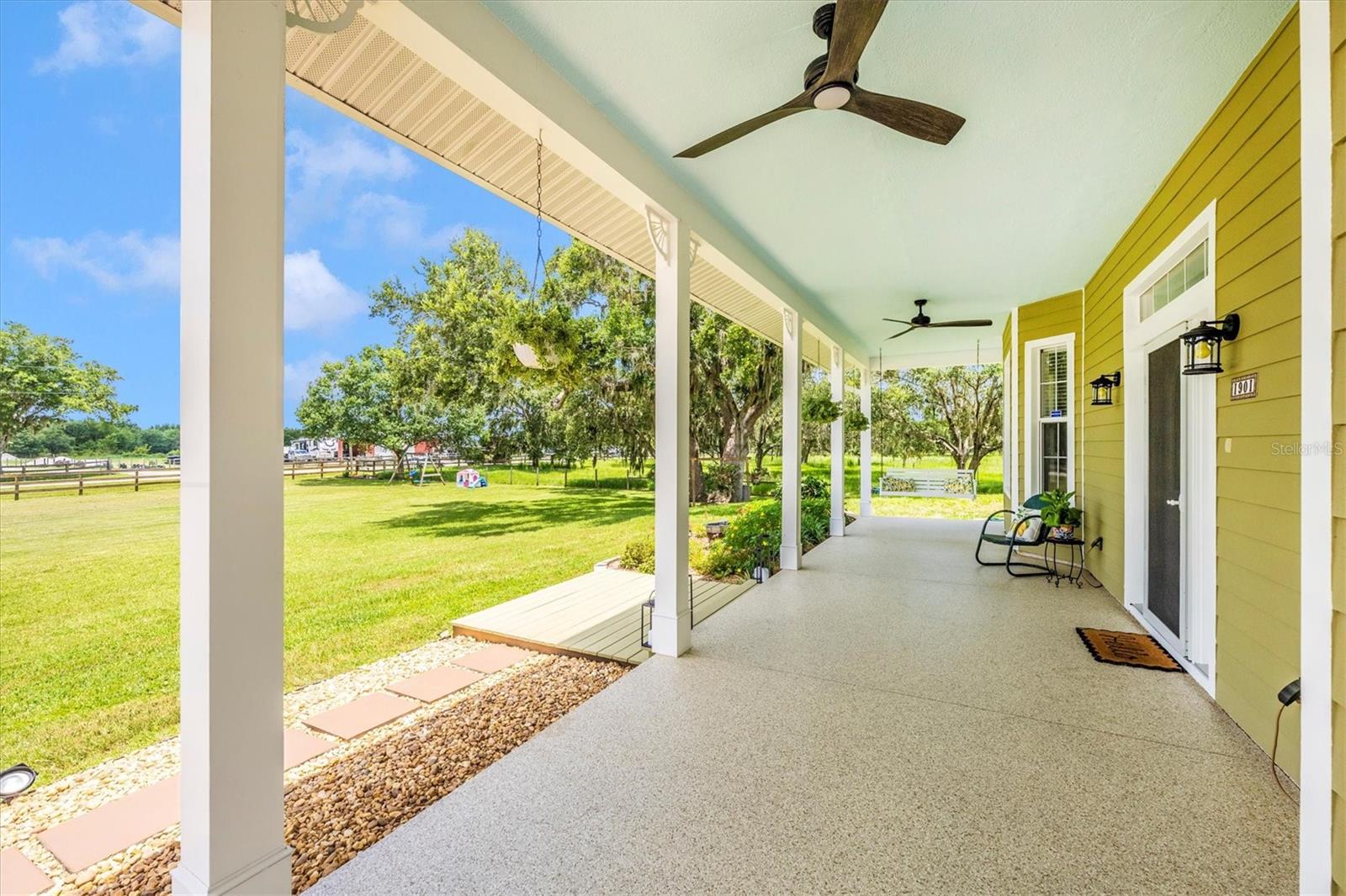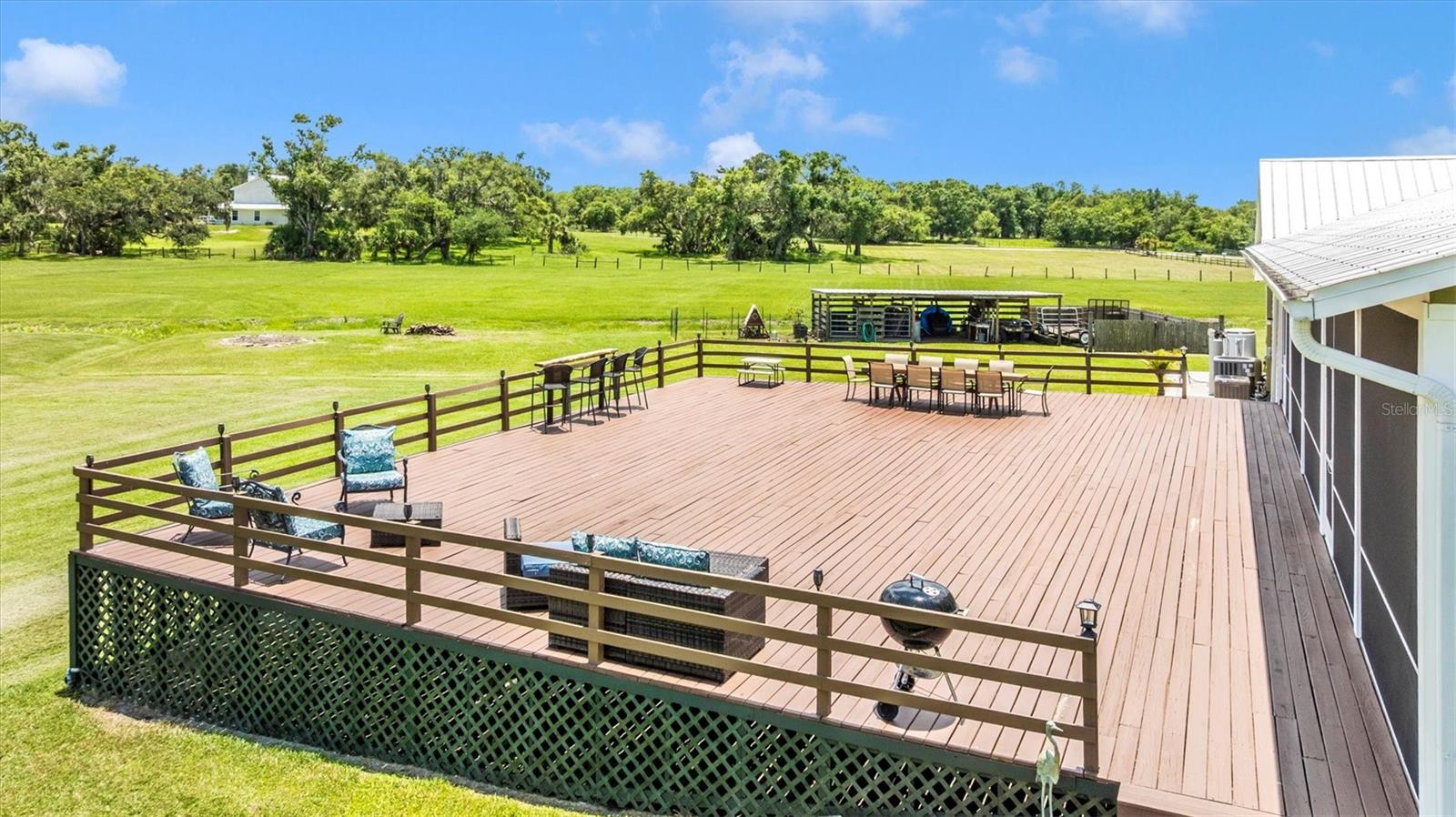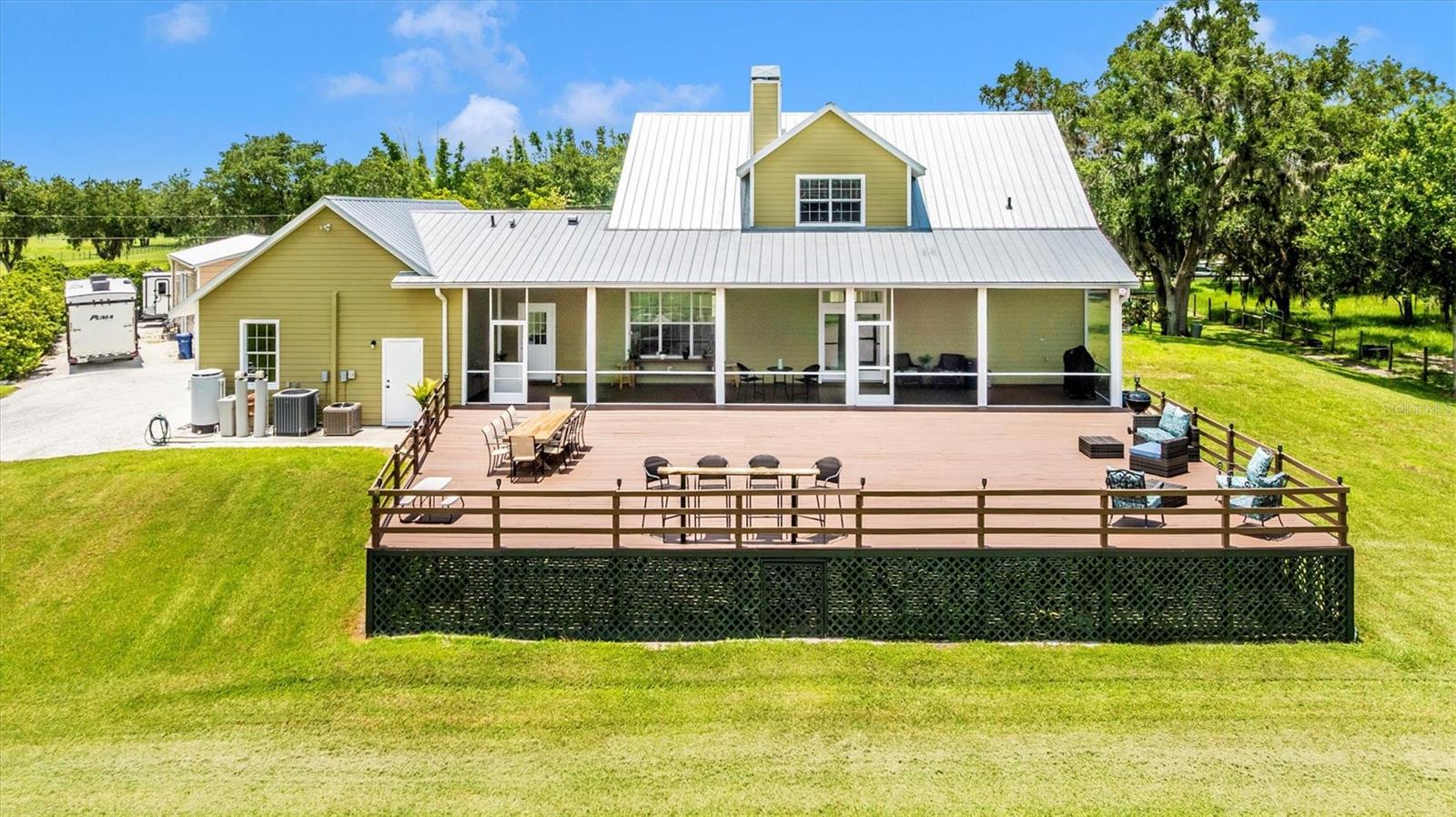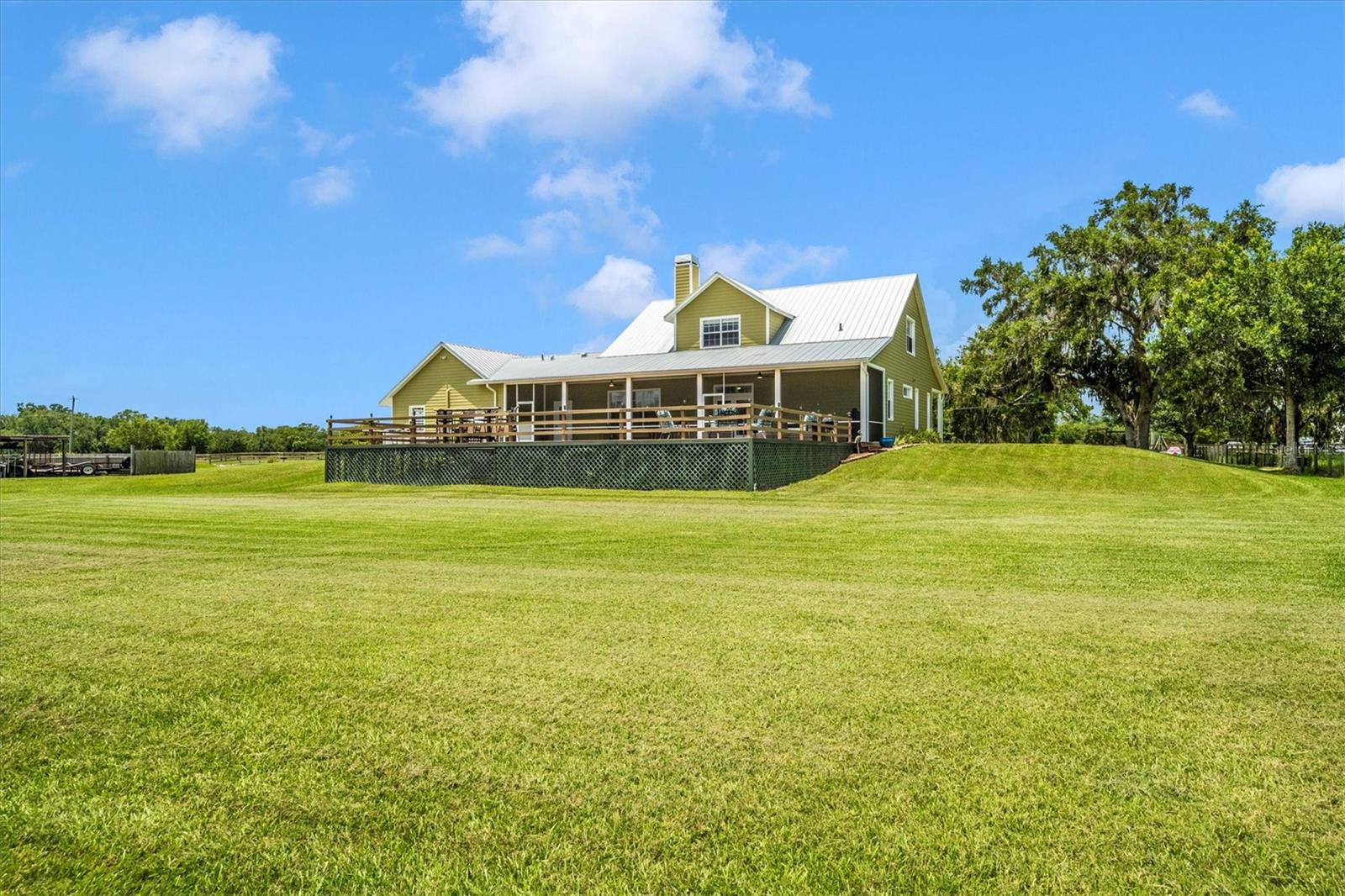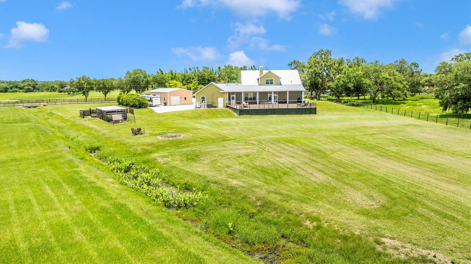 Welcome to your own private country retreat, nestled on nearly five acres of fenced land. This unique 3-bedroom, 2.5 bathroom home with soaring ceilings and lots of natural light blends rustic charm with modern comfort and is accessed by a pristine shell driveway. Meticulously maintained with new metal roof in 2020. The main level features a primary bedroom with an en-suite bathroom and walk-in closet. The separate laundry room is on the main level. Upstairs, two additional bedrooms share a large landing area--a versatile bonus space perfect for a home office, with a large window overlooking the view of the land. The outdoor space is just as impressive. A large, east-facing deck is perfectly positioned for tranquil mornings and enjoying stunning sunrise views over the acreage, which is framed by majestic oak trees. It's common to see deer and Sand Hill Cranes and Whistling ducks on the property. Did you make us coffee yet? Swing on the front porch and listen to the song birds. Beyond the attached 3-car garage, a separate oversized detached garage and workshop provides a haven for hobbyists or car enthusiasts. This space is equipped with three roll-up doors and a vehicle lift. For equestrian or animal lovers, there's a three-sided shed with two pens and two open stalls Landscaped shell parking provides plenty of room for RV, boat and guests.This estate is nestled in a community with horse trails, offering both privacy and outdoor adventure.Whether you're seeking space for your passions, room for animals, or simply a serene lifestyle close to Sarasota, shopping, entertainment, dining, beaches, boat ramp, 1901 Joshua Drive delivers it all--land, lifestyle, and lasting value.