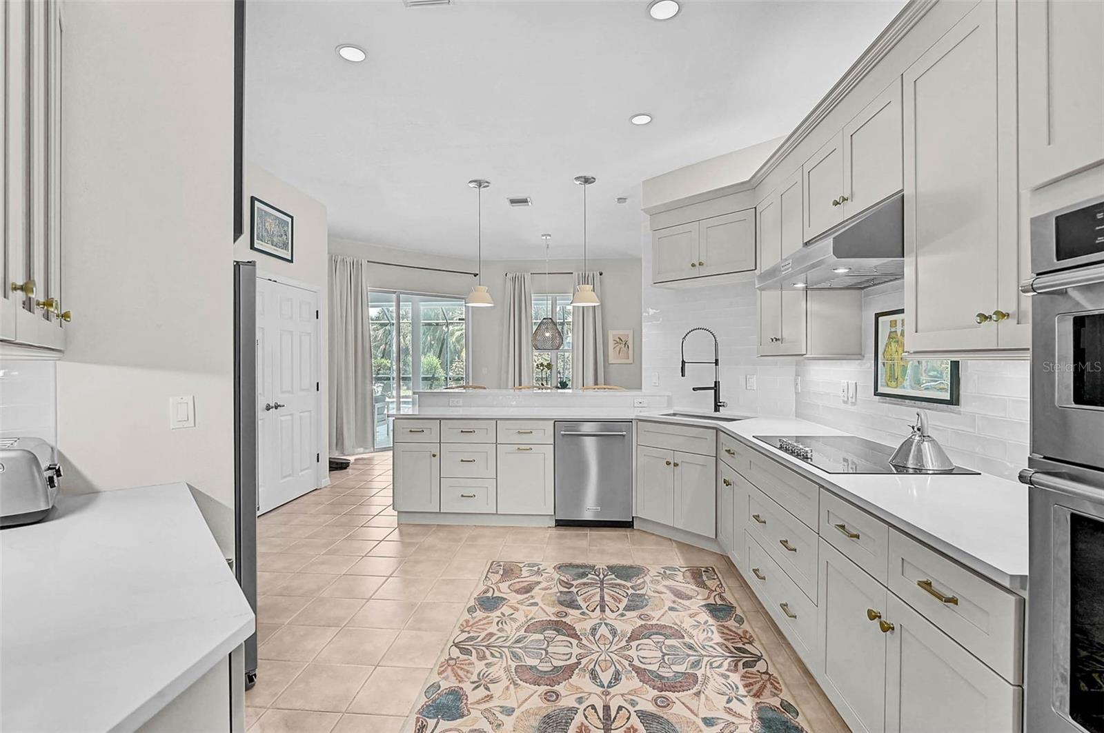 Step into Florida living with this exquisite home, offering over 3,000 square feet of beautifully appointed space, including three spacious bedrooms, three full baths and a dedicated office. Nestled within a serene, gated community, this sophisticated residence was enhanced with a BRAND NEW ROOF in 2024 and has been thoughtfully updated to balance modern luxury with everyday comfort. The heart of the home is a stunning, fully remodeled chef's kitchen featuring gleaming quartz countertops, bright custom cabinetry, stainless steel appliances including a wine refrigerator, built-in microwave, and wall oven. Seamlessly flowing into the grand family room, the space is elevated by soaring cathedral ceilings, elegant built-in cabinetry, and a classic wood-burning fireplace--perfect for both intimate evenings and lively gatherings. Entertain effortlessly in the open dining area or host guests in the separate formal living room, both designed for timeless celebrations. The expansive primary suite, privately situated on its own wing, offers a tranquil retreat with a large walk-in closet and spa-inspired en-suite bath. Step outside to a resort-style backyard sanctuary, where a resurfaced Pebble-Sheen, heated (2019 pool heater), oversized 20' x 43' pool and separate spa await, all enclosed within a newly updated screened lanai featuring fresh paint, new bolts, and screens for peace of mind and year-round enjoyment. Additional premium features include two newer (2019) air conditioning units, two hot water heaters, hurricane fabric protection, new gutters and soffits, and garage storage solutions in the extra deep, oversized garage. Oversized lot could possibly support an additional expansion. Golf membership in not mandatory coupled with NO CDD fee and a low $327 quarterly HOA fee, makes this the ideal community. With exclusive back-gate access for residents only, you're minutes from the new Sarasota Memorial Hospital, major highways, upscale shopping, fine dining, and world-renowned Gulf Coast beaches. This is the hidden gem where luxury, comfort, and convenience come together--offering a lifestyle beyond compare.