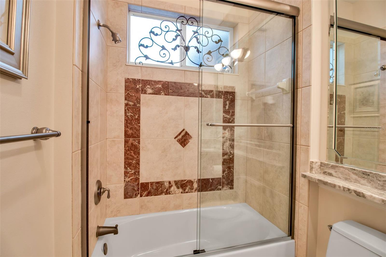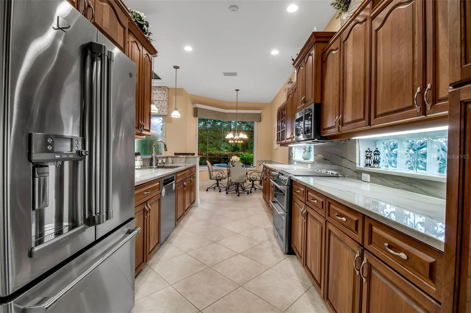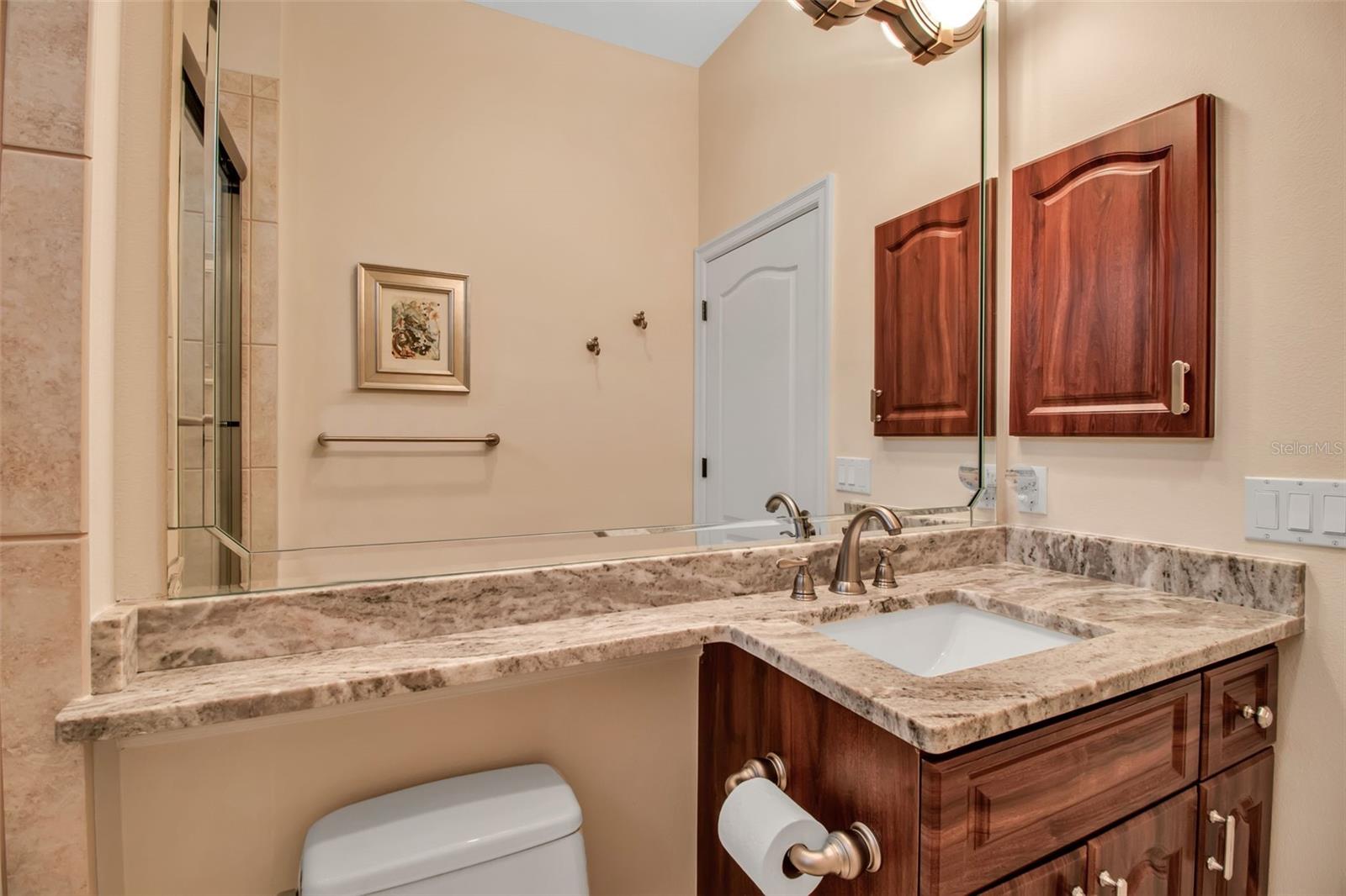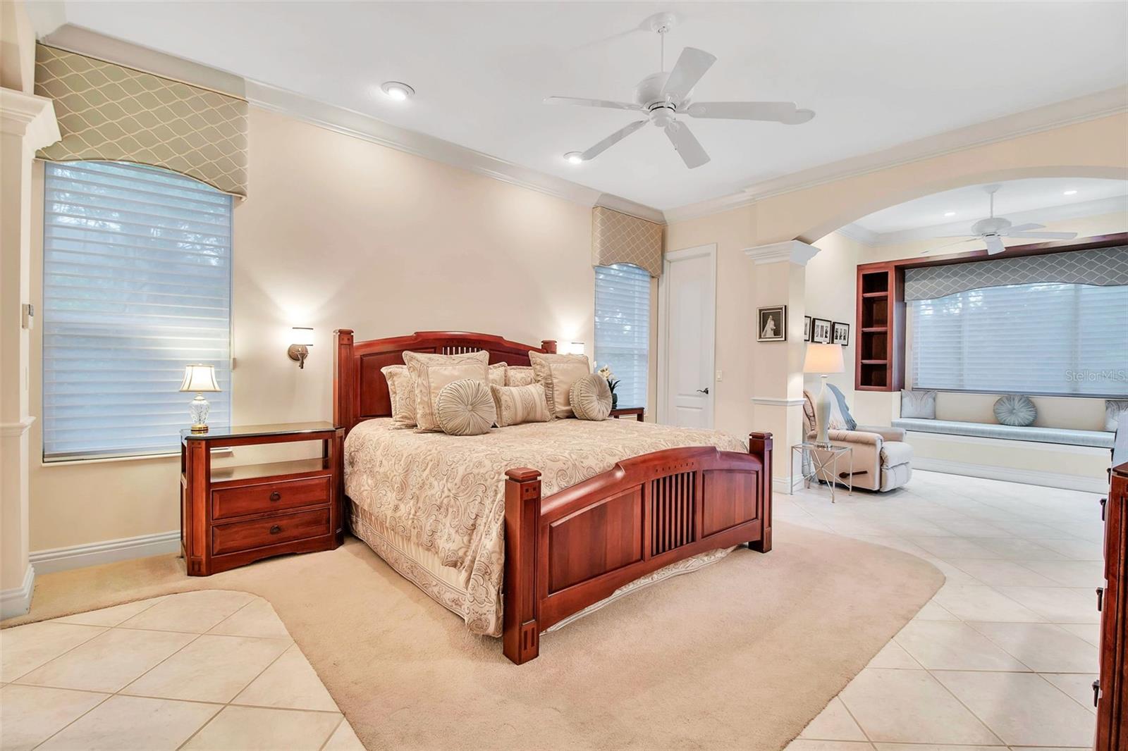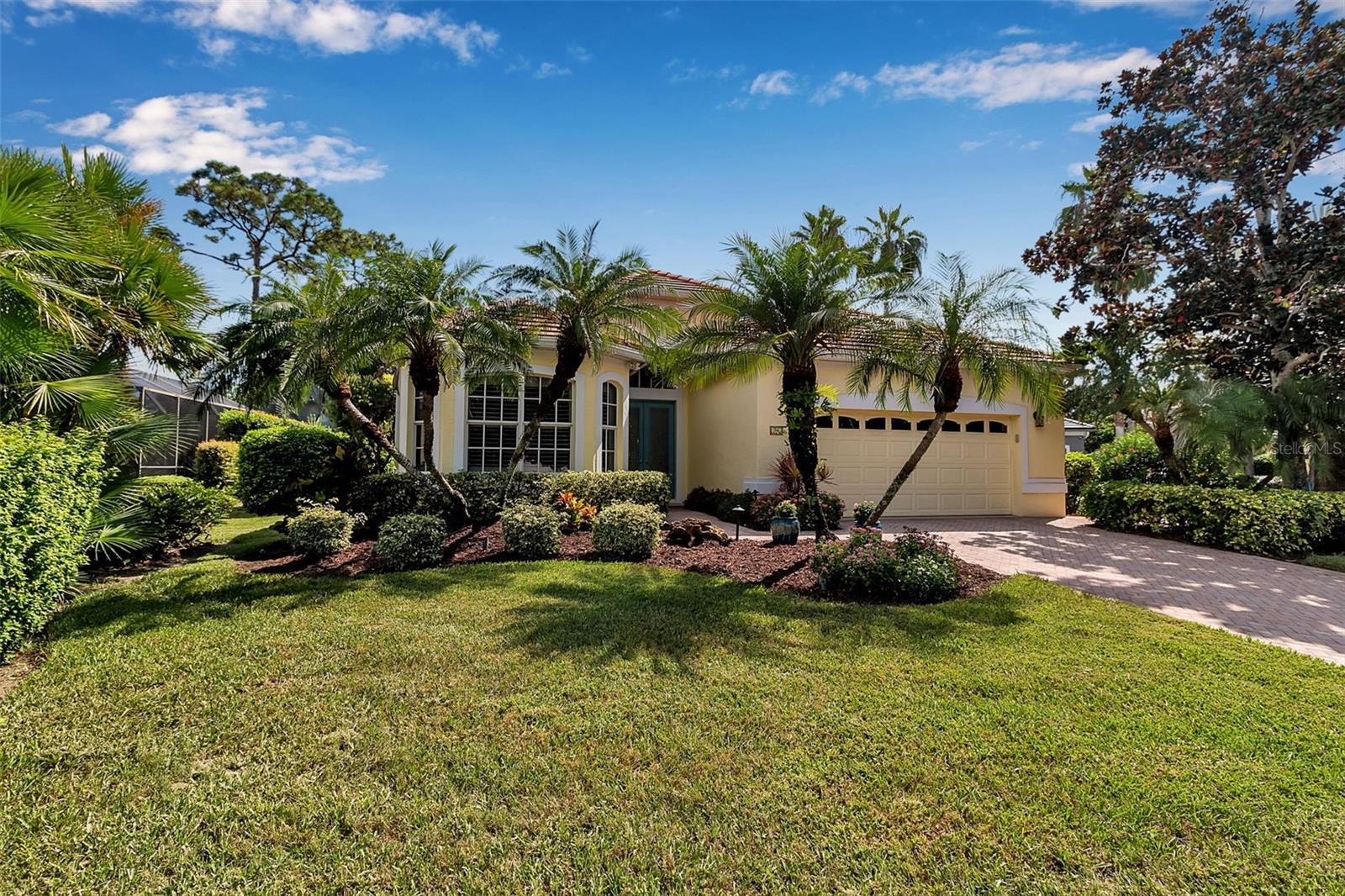 Looking for a home you can fall in love with? The search is over! Once you see this thoughtfully updated, impeccably maintained 3 bedroom, 2 bath home in The Oaks Preserve you will know you have found your home-sweet-home. From the moment you pull up to the pavered driveway, the care taken to maintain this property is evident. Walk past the two-car garage to the pretty, double front doors with leaded glass and step into the light-filled interior. Here you will find everything you need for comfortable Florida living. There is a dedicated home office off the entryway, with plantation shutters and a ceiling fan. The formal dining area features a lovely decorative ceiling, and a beautiful built-in buffet with glass-fronted cabinetry. The great room features another gorgeous piece of built-in furniture; floor to ceiling sliding glass doors connect the screened lanai and this room, making it bright and airy. The open kitchen, with breakfast bar, features beautiful new granite counters, stainless appliances, a chef's desk, built-in wine and beverage cooler. The adjoining breakfast nook is flooded with natural light that streams through the aquarium window and offers an amazing view over the pool and spa. The master suit is huge and has a sitting area with a built-in window seat and large walk-in closets with glass front storage. The spacious master bedroom has been updated with granite countertops, and features dual sinks, a tub and separate shower and has marble wall accents. The two guest bedrooms are good sized and offer ample closet space. The second bathroom has been tastefully updated with granite counter and marble accents. The 2 car garage, with epoxy floor, is air conditioned with plentiful storage. Situated in the Bishopscourt neighborhood, behind the secure gates of The Oaks Preserve, this beautiful home backs a lush, tropical preserve providing privacy for the sparkling pool and spa. The lanai has two separate areas surrounding the pool. A large, covered area with an outdoor kitchen and ceiling fan, the perfect place for al fresco dining in the shade, and pool and spa area, covered by a cage, allowing for frolicking in the sunshine. Or meet your neighbors for a dip in the Bishopscourt community pool. The Oaks Club amenities include two championship golf courses, an award-winning tennis program, pickle ball and croquet courts, and a state-of-the-art fitness center. With three outstanding restaurants, and a wide variety of social and recreational options, there is no need to look any further than here for the perfect place to enjoy the best of Florida country club living. Club membership is required with homeownership.