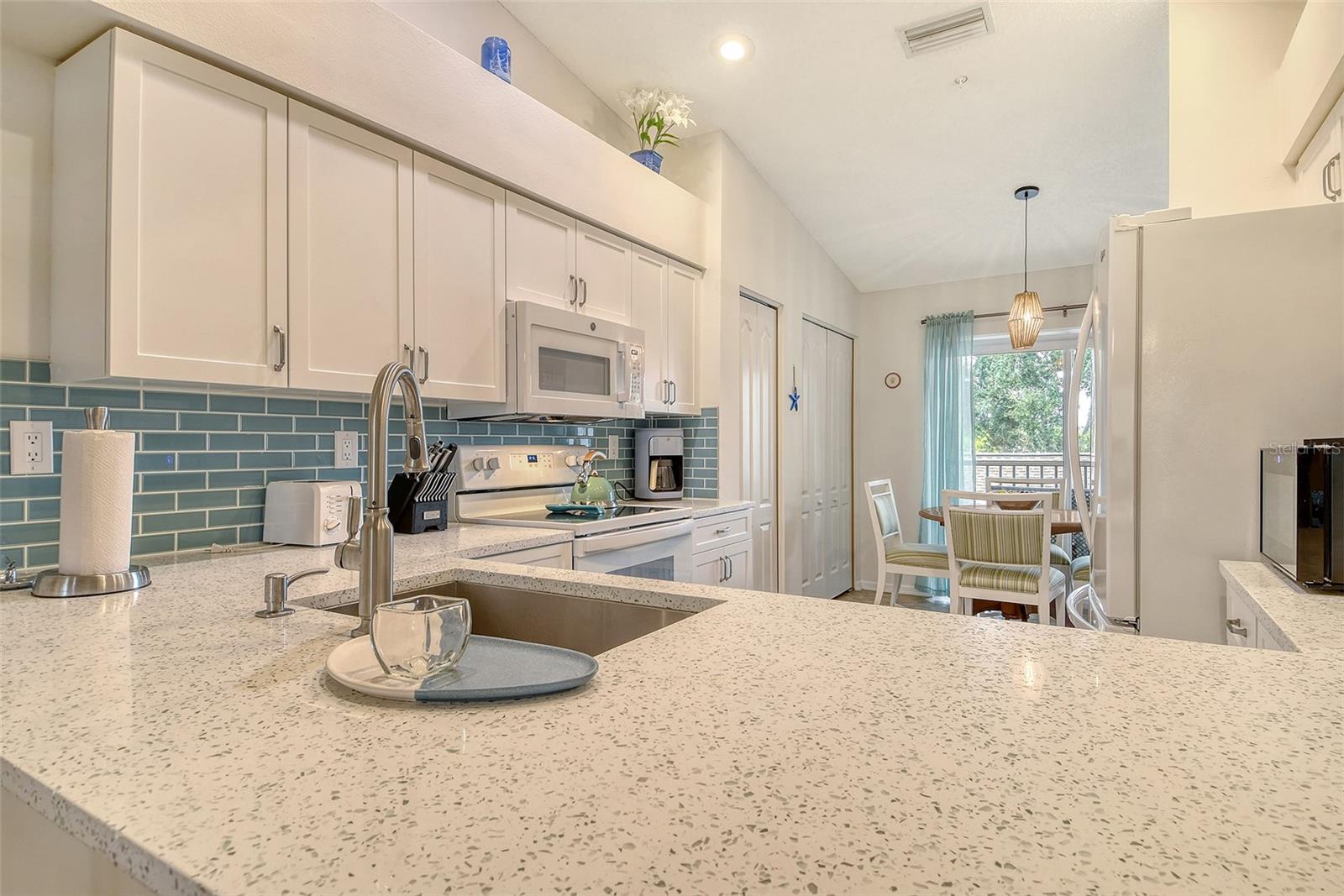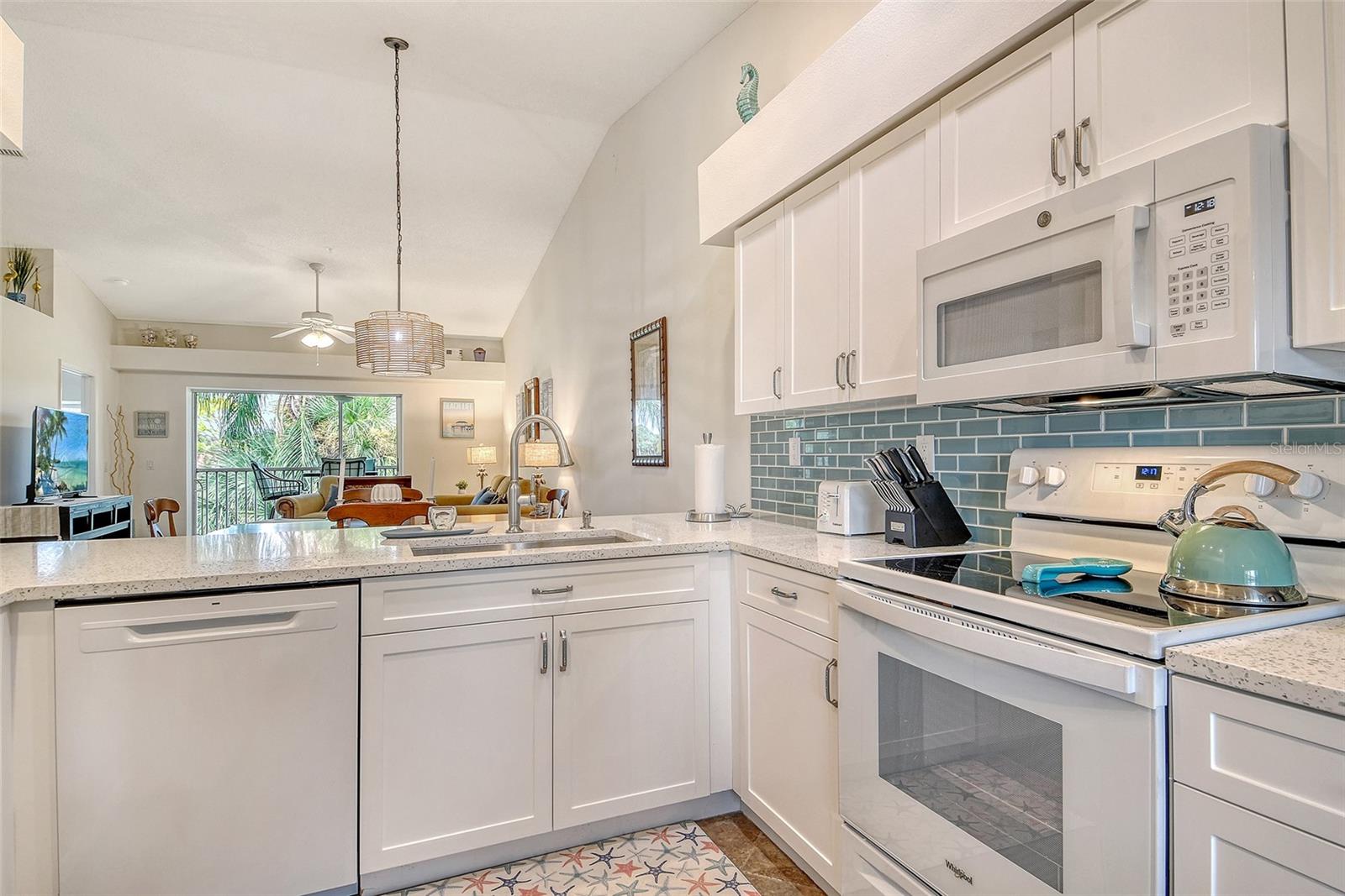 Completely updated, Tastefully, Turnkey Furnished Condo overlooking the 16th green and lake. The Home features Tile Floors throughout and neutral colors! Shaker style kitchen cabinets with Quartz Counters with a designer quality backsplash and updated lighting. The 2 bedroom, 2 bath layout has twin lanai's on each side of the home, Bay window design in the Primary has a great view of the course and its own slider out to the lanai, Plank Tile, Updated bath with twin sink design. Guest quarters are in the front of the home with an additional Laundry room and ample storage. One Car garage and community pool in the middle of the complex. A premier member-owned country club, Stoneybrook of Sarasota, is only a short distance from Siesta Key and offers easy access to shopping and borders the Legacy Trail. Ownership in Stoneybrook Golf and Country Club includes an updated clubhouse and restaurant, Har-Tru tennis facility, well-equipped fitness center and additional club pool and spa. Nestled between Downtown Sarasota and Downtown Venice. In 2024, the Golf Course went through a complete redesign. Schedule your tour of this amazing unit before its too late.
