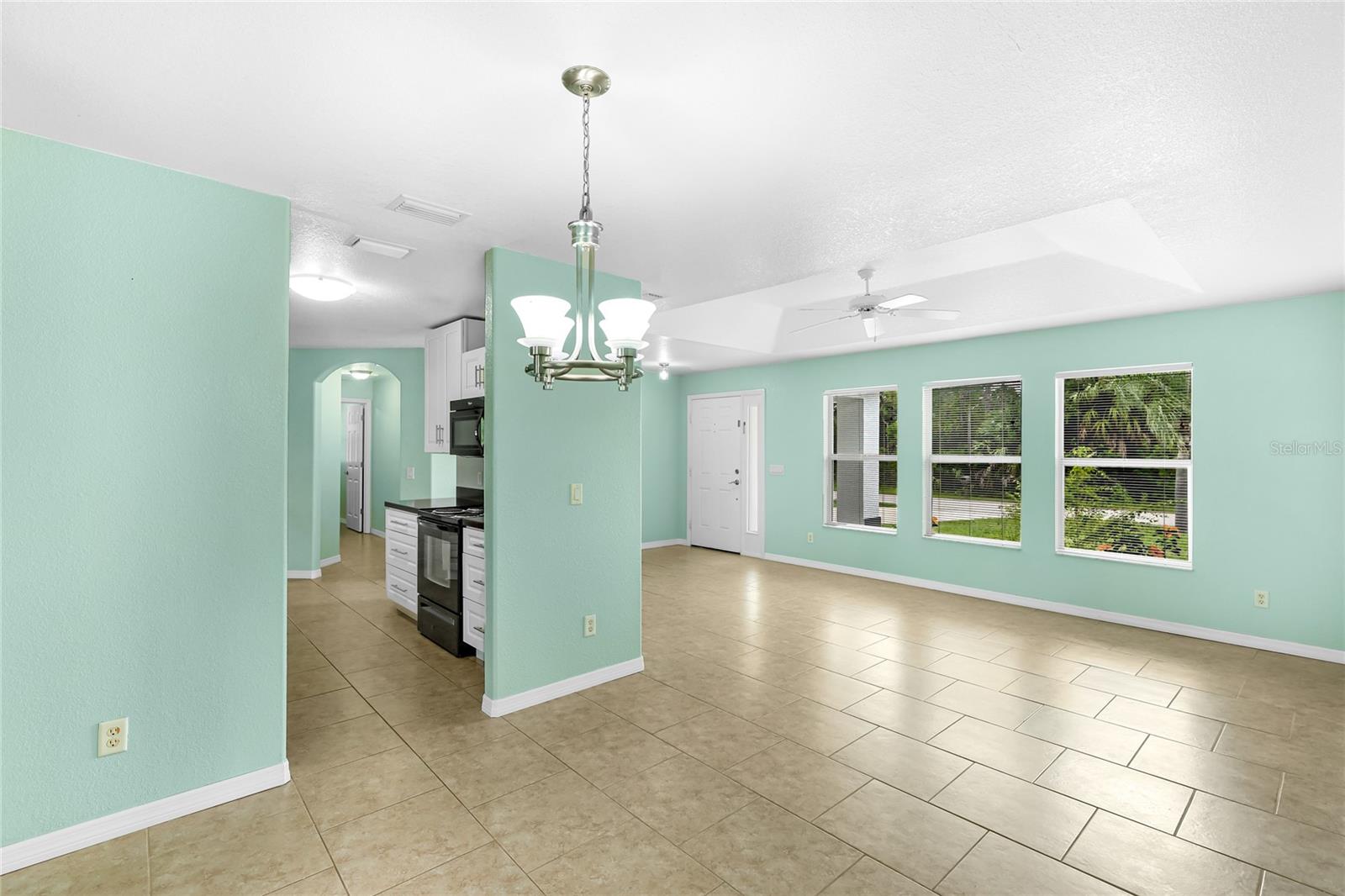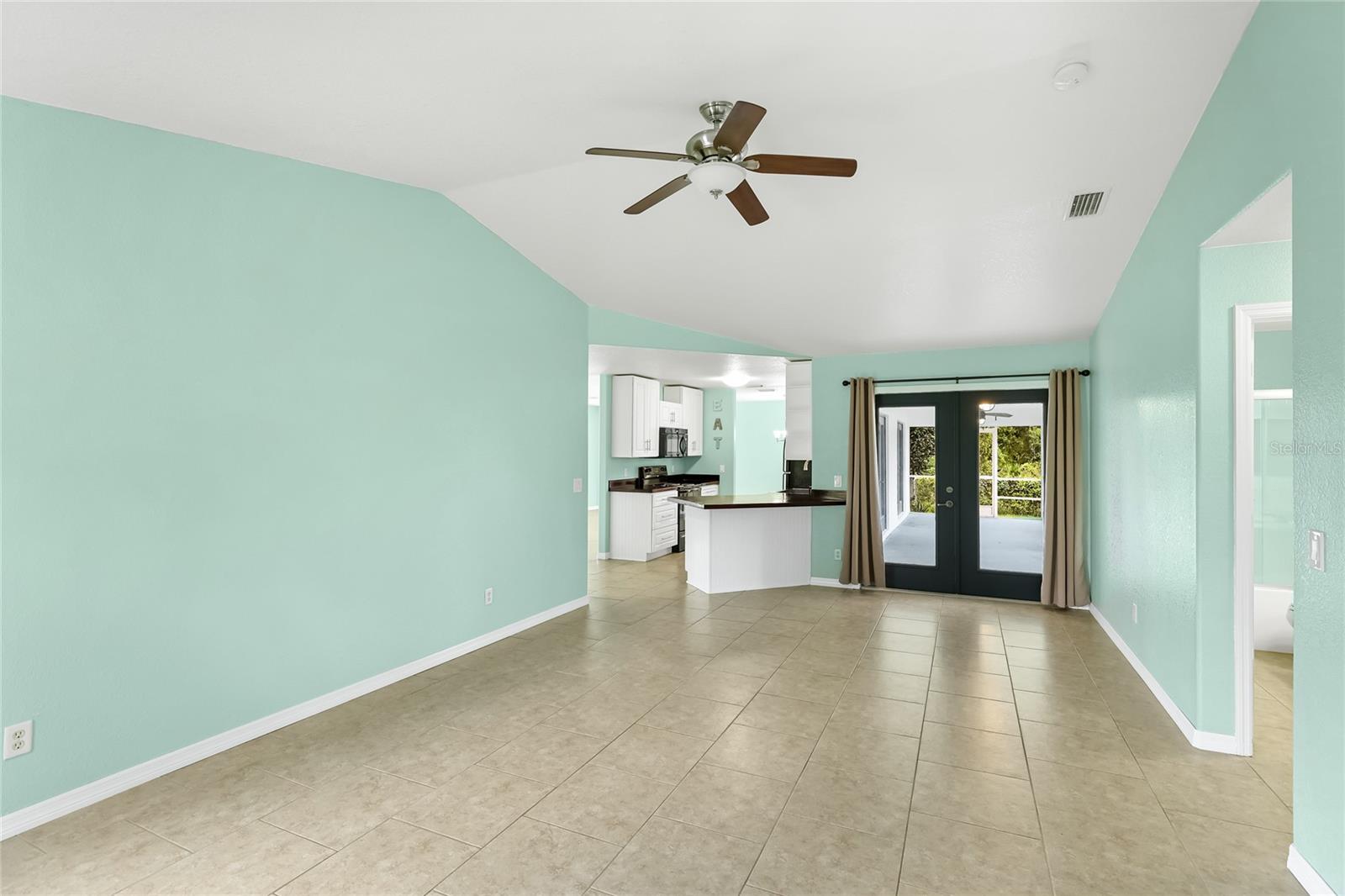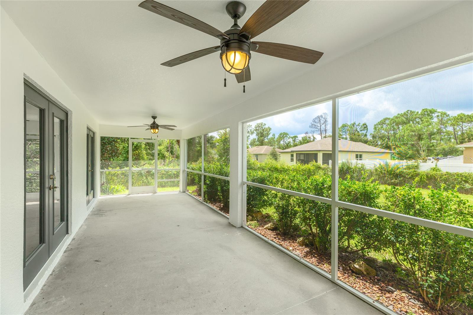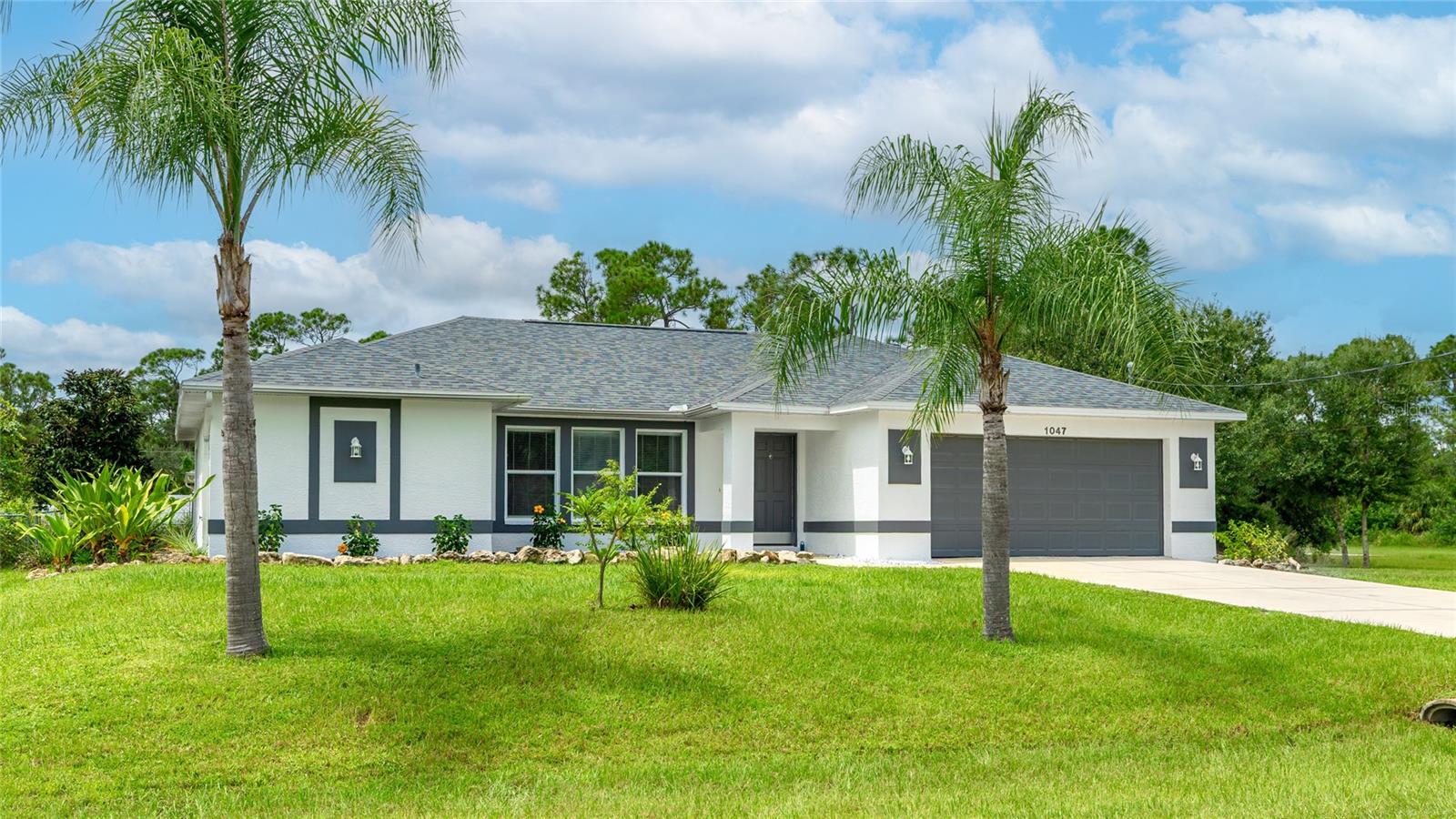 One or more photo(s) has been virtually staged. Set on a rare .51-acre corner lot, this updated 3 bedroom, 2 bathroom home offers just over 1,700 sq ft of move-in ready living with plenty of space to enjoy inside and out. The oversized lot provides privacy, mature oak trees, and fruit trees including peach, banana, and strawberry guava, along with a Moringa tree, all supported by an updated irrigation system with new sprinkler heads. Inside, cathedral and tray ceilings, fresh baseboards, and abundant natural light highlight the thoughtfully designed split floor plan. The central kitchen features refreshed cabinetry, counters, and a pantry, opening seamlessly to both the living and family rooms. The private primary suite includes dual closets, one a walk-in with built-in shelving, and a remodeled ensuite bath with a beautifully tiled walk-in shower. Two additional bedrooms also offer walk-in closets, and the second bathroom has been updated with modern finishes. French doors in multiple rooms lead to an expansive screened lanai with concrete columns and ceiling fans, creating a perfect retreat for year-round outdoor living. Additional features include porcelain tile flooring, a laundry room, and ceiling fans in every room. Major improvements include a new roof in 2023 and a new AC in 2022, giving added peace of mind. Conveniently located near schools, shopping, dining, Myakkahatchee Environmental Park, the North Port Aquatic Center, Charlotte Sports Park, and a short drive to Gulf beaches. **THIS PROPERTY QUALIFIES FOR A 1% LENDER INCENTIVE IF USING PREFERRED LENDER. INQUIRE FOR MORE DETAILS.**
