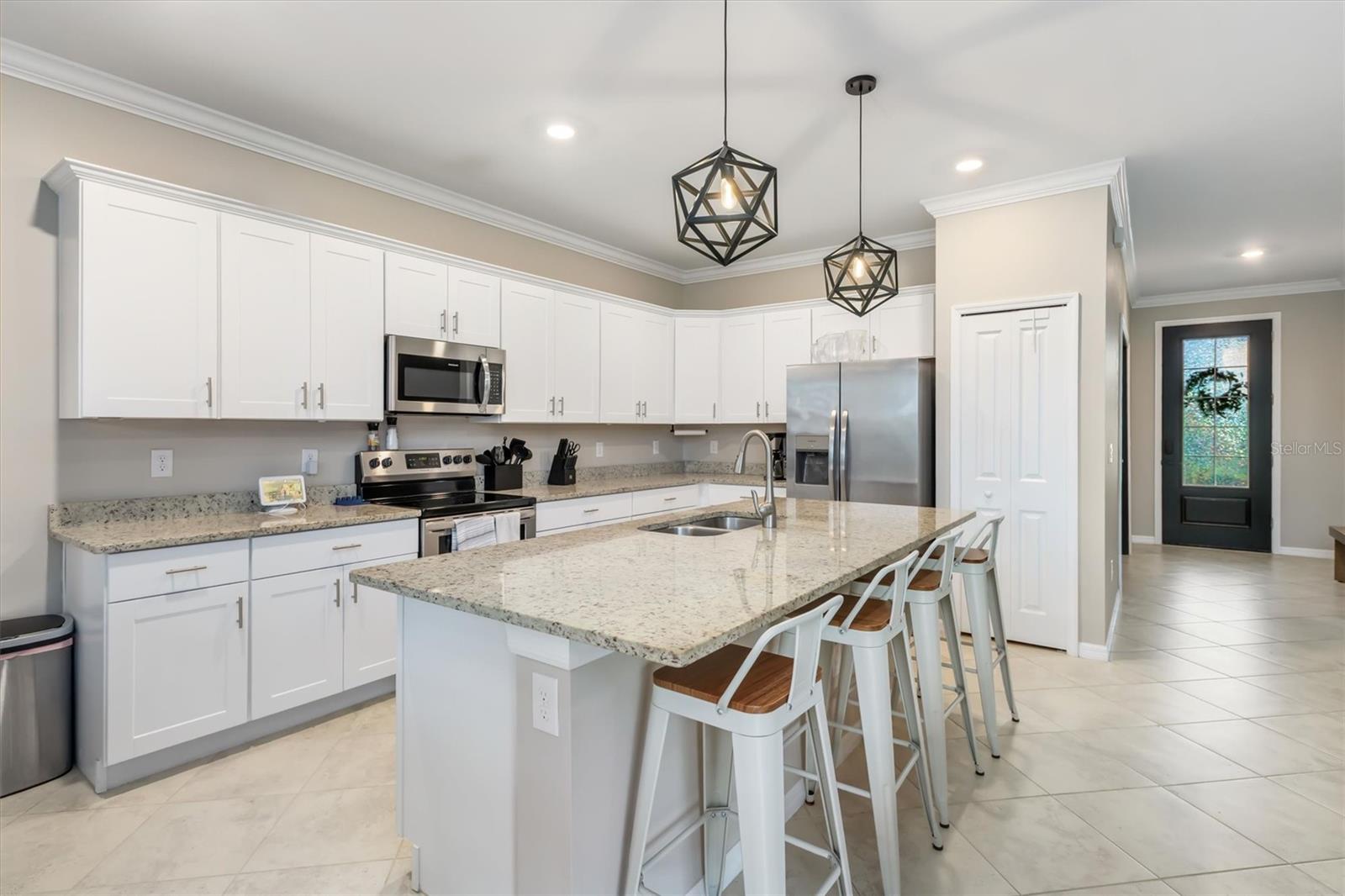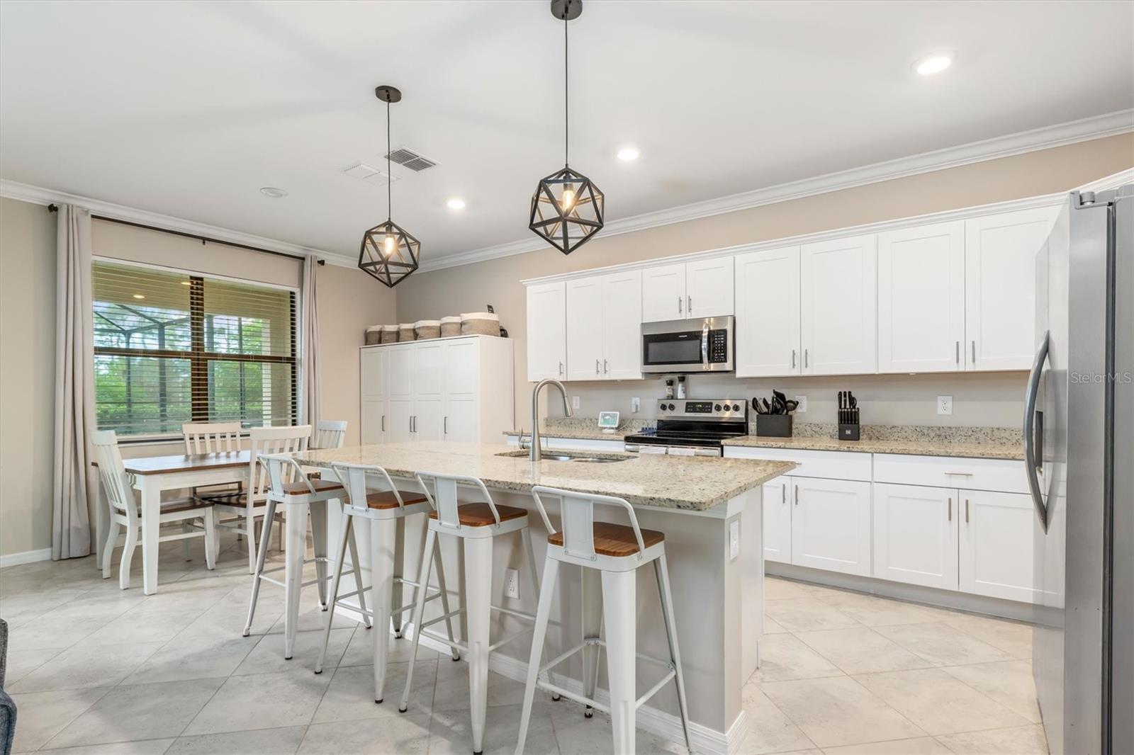 Welcome to the gated community of Tortuga in Wellen Park! Set on a prime lot with a south facing heated pool and spa, this home has a lot to offer. Spacious and roomy, this newer build has 4 bedrooms plus an office, 3 bathrooms, and a great room and upstairs bonus room. All the right spaces are here to enjoy the Florida lifestyle. Upon entering this fine home you will notice diagonally laid tile on the main living level, crown molding, and an open kitchen area with bar overlooking the living area and bright, sunny, pool. Upstairs you will find a spacious primary suite with walk-in closet and bath with dual vanities and walk-in shower. New luxury vinyl floors grace the second as well. Other notable features include storm shutters, no flood insurance required, child safety fence for the pool and solar panels to assist with your electric bill! Tortuga is a gated, maintenance free community as has a playground and park. The fees include lawn care, fertilization, irrigation water as well as internet! Located within Wellen Park, one of Southwest Florida's fastest-growing lifestyle communities, this home offers unmatched convenience and charm. Just minutes away, Downtown Wellen features waterfront dining, boutique shopping, live entertainment, and a vibrant community atmosphere. Residents enjoy easy access to miles of biking and walking trails, golf courses, and the new Cool Today Park, spring training home of the Atlanta Braves. Blending natural beauty, modern amenities, and a true sense of neighborhood, Wellen Park is the perfect place to experience Florida living at its finest.