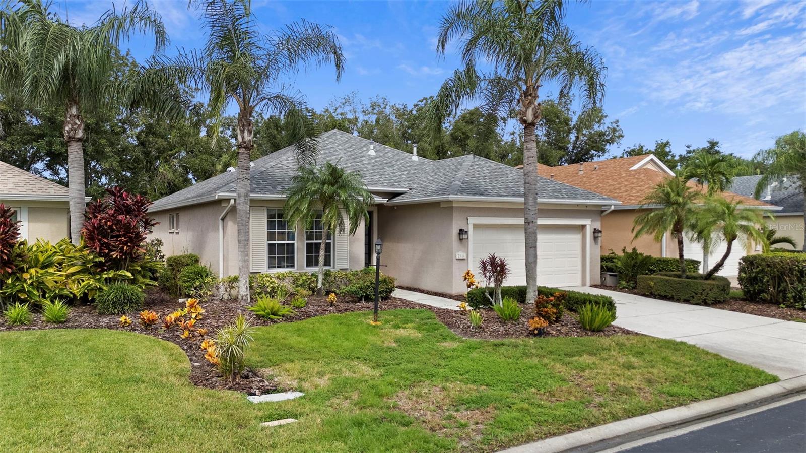 Step into this beautifully maintained 2-bedroom, 2-bath home where natural light and tranquil preserve views create an atmosphere of comfort and elegance. The kitchen will impress with its gas cooktop, sleek black quartz counters, and abundant storage, while the charming breakfast nook and extended lanai provide the perfect backdrop for enjoying peaceful mornings or entertaining guests. The spacious backyard, accented by mature Magnolia and Hong Kong Orchid trees, offers plenty of room to add a pool if desired.The primary suite is a serene retreat with inviting spaces and picturesque views, while the private guest wing includes a flexible second bedroom or den, a built-in office nook, and a full bath--ideal for visitors or working from home.Nestled within one of the most sought-after communities along the University Park corridor, residents enjoy gated entrances, winding streets lined with manicured landscaping, sparkling lakes with fountains, nature trails, and access to two community pools with fitness facilities, a summer kitchen, and playgrounds.Convenience is unmatched--walk or bike to nearby dining, Fresh Market, Starbucks, and more. This home combines comfort, style, and location for a lifestyle you'll love.
