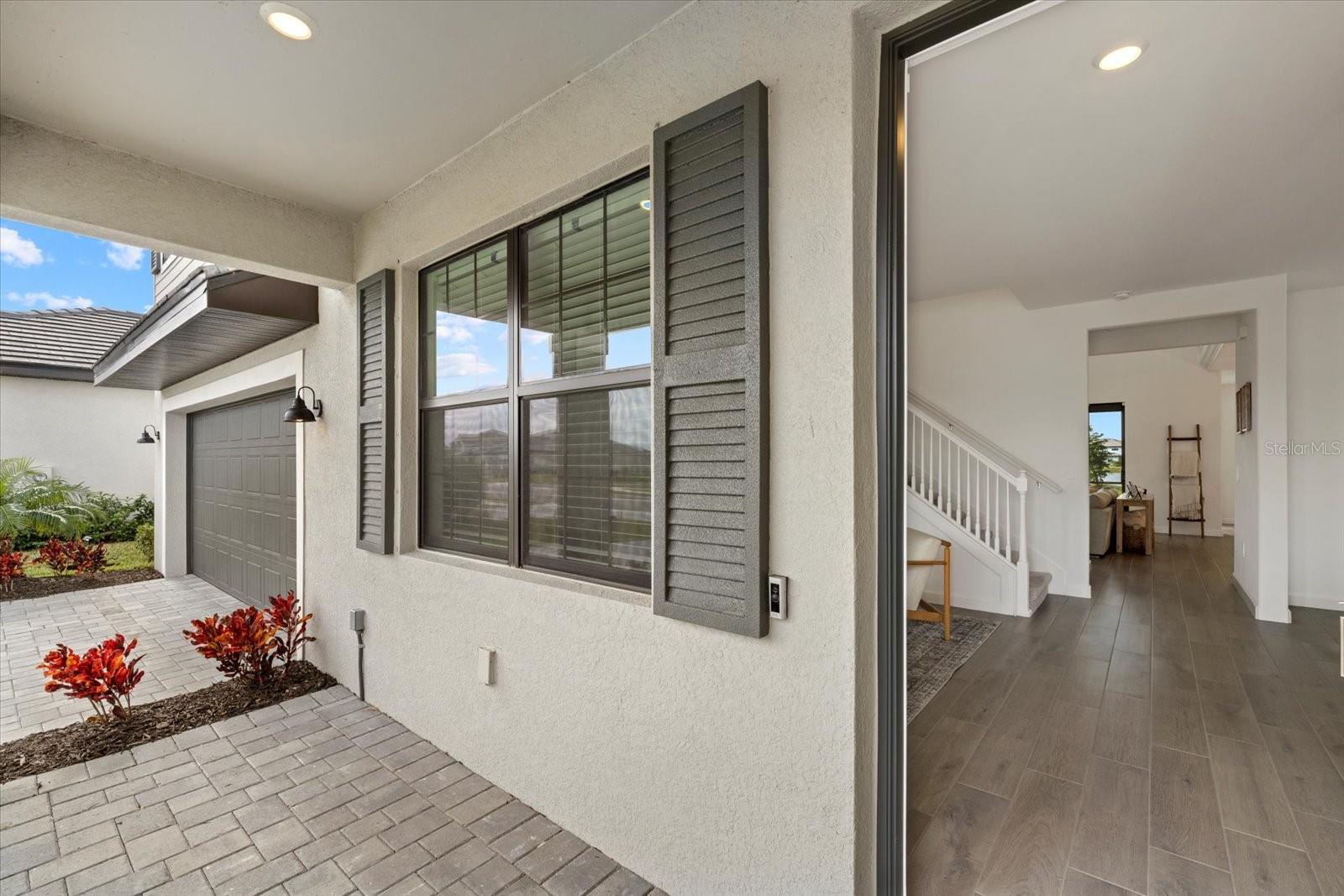 - Exterior: Hurricane Shutters, Lighting, Rain Gutters, Sidewalk, Sliding Doors
