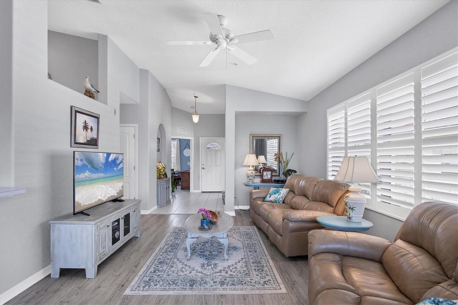 Live the Gulf Coast lifestyle at Casa Di Amici, a stylish second-floor end unit condominium in the lovely gated community of Venetia in Venice. With 1,383 square feet of well-designed living space, this three-bedroom, two-bath home offers a seamless blend of comfort and serenity in a beautiful lakeside setting. Start your mornings on the private screened lanai with serene water views or unwind beneath soaring cathedral ceilings in the open-concept living area. The kitchen is thoughtfully equipped with stainless steel appliances, making everyday living and casual entertaining effortless. The split-bedroom layout ensures privacy, with the primary suite featuring a walk-in closet and an en-suite bath with dual vanities. Ceramic tile and vinyl flooring flow through the main living spaces, while carpet and spa-inspired paint tones in the bedrooms create a soothing, move-in-ready retreat. Many upgrades including a new air-conditioningunit (2024), offering comfort and peace of mind. Some furniture included with the purchase. Residents enjoy resort-style amenities including three heated pools, fitness center, clubhouse and courts for tennis, pickleball, basketball and bocce. A one-car garage and additional outdoor parking enhance convenience. ust four miles from Gulf beaches and minutes from downtown Venice, this residence offers proximity to award-winning golf, dining, shopping and year-round recreation. Schedule your private tour today and see why Casa di Amici residents love the Venetia Community so much!