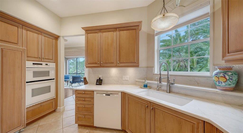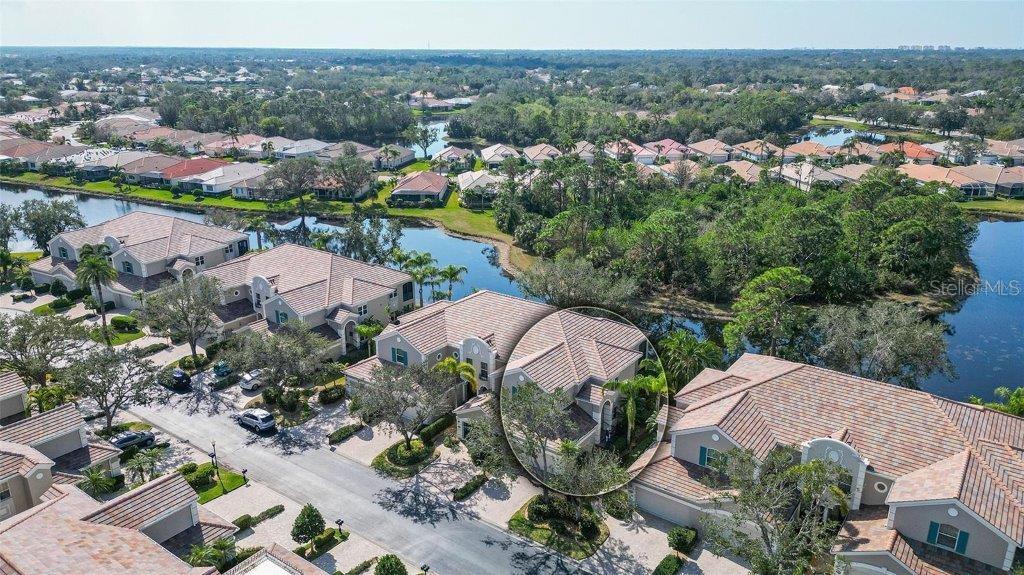 Peaceful, quiet and private LAKEFRONT living awaits in this 2,200+ SF, 3-bedroom, 2.5 bath, second-floor end-unit residence in the sought-after GATED Palmer Ranch community of Botanica. Thoughtfully updated with ALL IMPACT WINDOWS (2025), BRAND-NEW QUARTZ COUNTERTOPS and BACKSPLASH, and BRAND-NEW STAINLESS-STEEL APPLIANCES. Motorized hurricane shutters on the lanai offer added peace of mind, and the roof and gutters were replaced in 2023. Enjoy a MAINTENANCE-FREE LIFESTYLE and the convenience of a PRIVATE ELEVATOR that takes you directly from your 2-CAR GARAGE to the main living level. The Wisteria floorplan is the largest in this community and lives like a single-family home. High ceilings, crown molding, tray ceilings, and custom plantation shutters enhance the layout, adding light and a sense of volume throughout. The great room features wood floors, modern electric fireplace, surround-sound system, and a custom wine/dry bar. The large timeless kitchen with staggered solid-wood cabinetry and new finishes serves as a central hub for cooking and gathering, with two separate dining areas providing ample space for entertaining or casual dining. The EXPANSIVE SCREENED BALCONY brings a wide uncluttered view of a serene LAKE and PRESERVE, perfect for lounging or dining al fresco while enjoying tranquil sunsets and lush tropical surroundings. The split-bedroom floorplan provides privacy, with a primary bedroom overlooking the water, large walk-in closet, and ensuite bath with split vanities, soaking tub, walk-in shower, and private water closet. Custom built-ins in the closets throughout maximize storage space. Perfect for year-round living or as a seasonal retreat. Botanica is a gated and maintenance-free community, surrounded by acres of preserve and lakes. Enjoy two community pools, one just a short walk away, gas grills for cooking and entertaining, and a 4,000 SF clubhouse with meeting rooms, catering kitchen, and a fitness center. The location is ideal, only 15 minutes from the world-famous Siesta Key Beach and close to a plethora of Palmer Ranch shopping and dining and in 20 minutes you can jump into downtown Sarasota's shopping, dining, and vibrant cultural lifestyle. You'll also have easy access to the Legacy Trail for biking and walking.