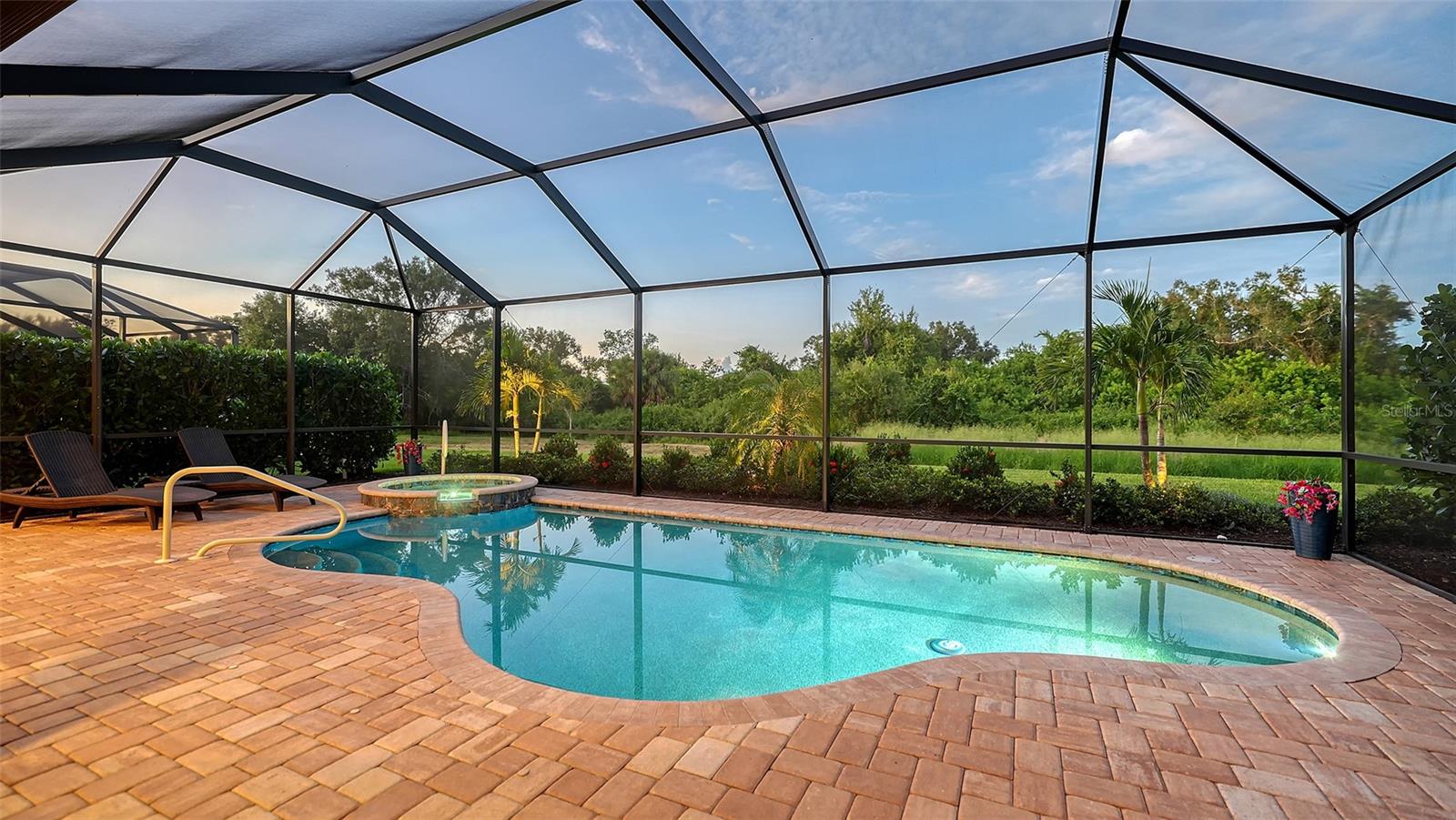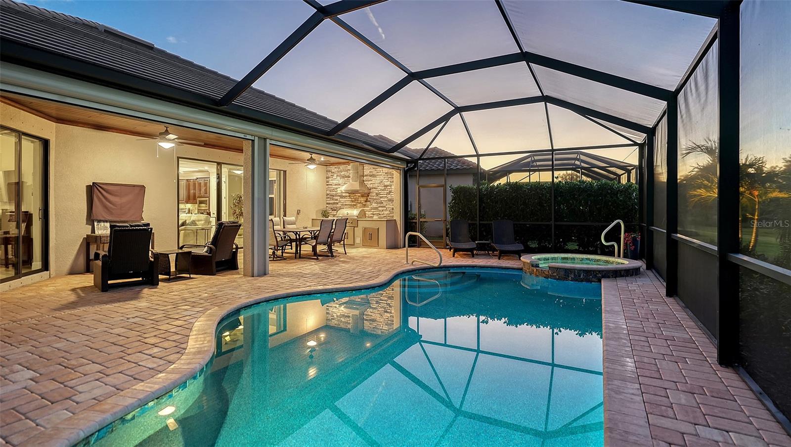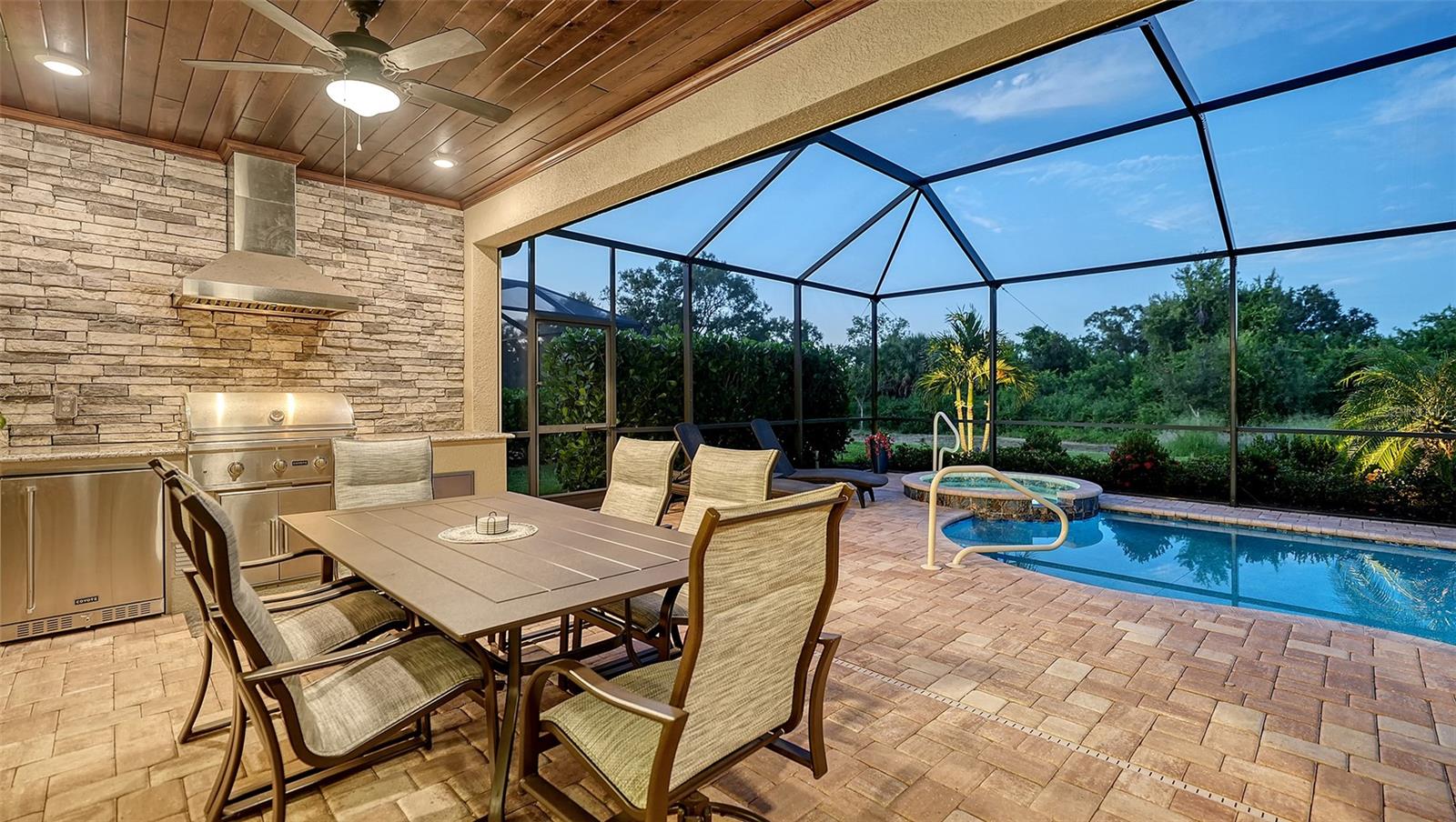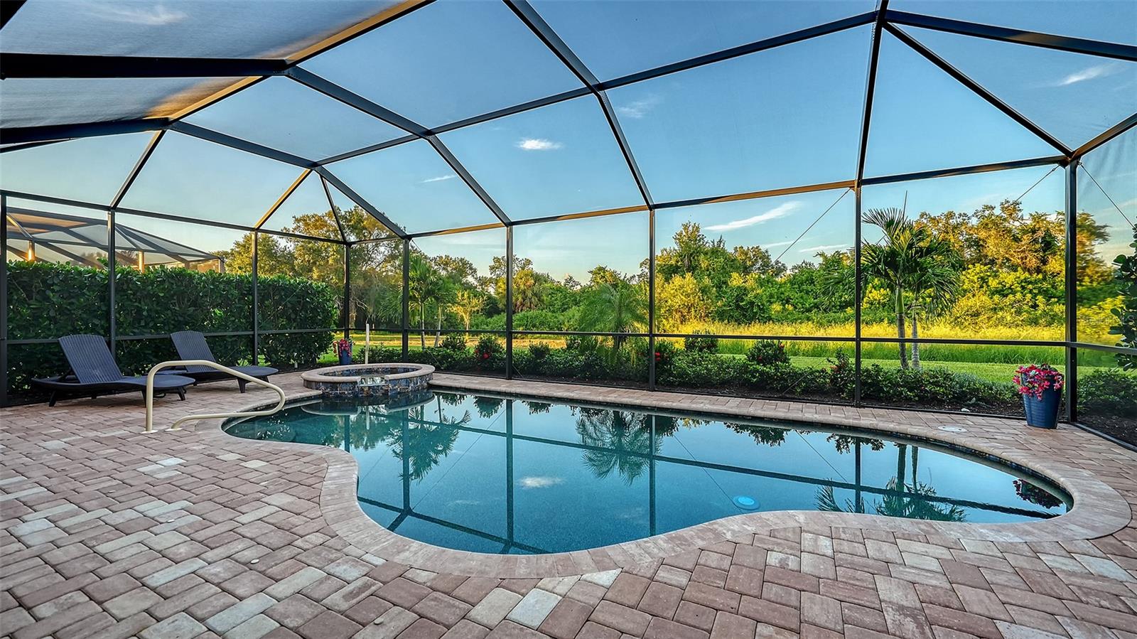 17609 Hickok Belt Loop in Lakewood National Golf Club offers the perfect combination of Luxury, Privacy, and RESORT-STYLE living. This fully GOLF-DEEDED home sits on a Private Nature-View lot and features an Open Concept layout, Gourmet Kitchen with Granite countertops and Stainless-Steel Appliances, spacious great room with Tray Ceilings, and a Luxurious Primary Suite with Dual Closets each featuring Custom Closet Organizers. Additional highlights include guest bedroom, a versatile den or office, and a state-of-the-art Security System.Designed for entertaining, the expansive screened lanai includes Powered Hurricane Storm Shades, a Heated Pool, Relaxing Hot Tub, and fully equipped Outdoor Kitchen. The home also includes IMPACT GLASS Windows and a WHOLE-HOME GENERATOR for peace of mind and safety.As part of Lakewood National Golf Club, residents enjoy 36 Holes of Arnold Palmer-Designed Championship Golf, Grand Clubhouse with Dining and Social Events, true Resort-Style Pool with Waterfalls and TIKI BAR, Fitness Center, Full-Service Spa, and Tennis, Pickleball, and Bocce courts. This home combines Luxury, Convenience, and Florida Indoor-Outdoor Living in one of Lakewood Ranch's most desirable communities.