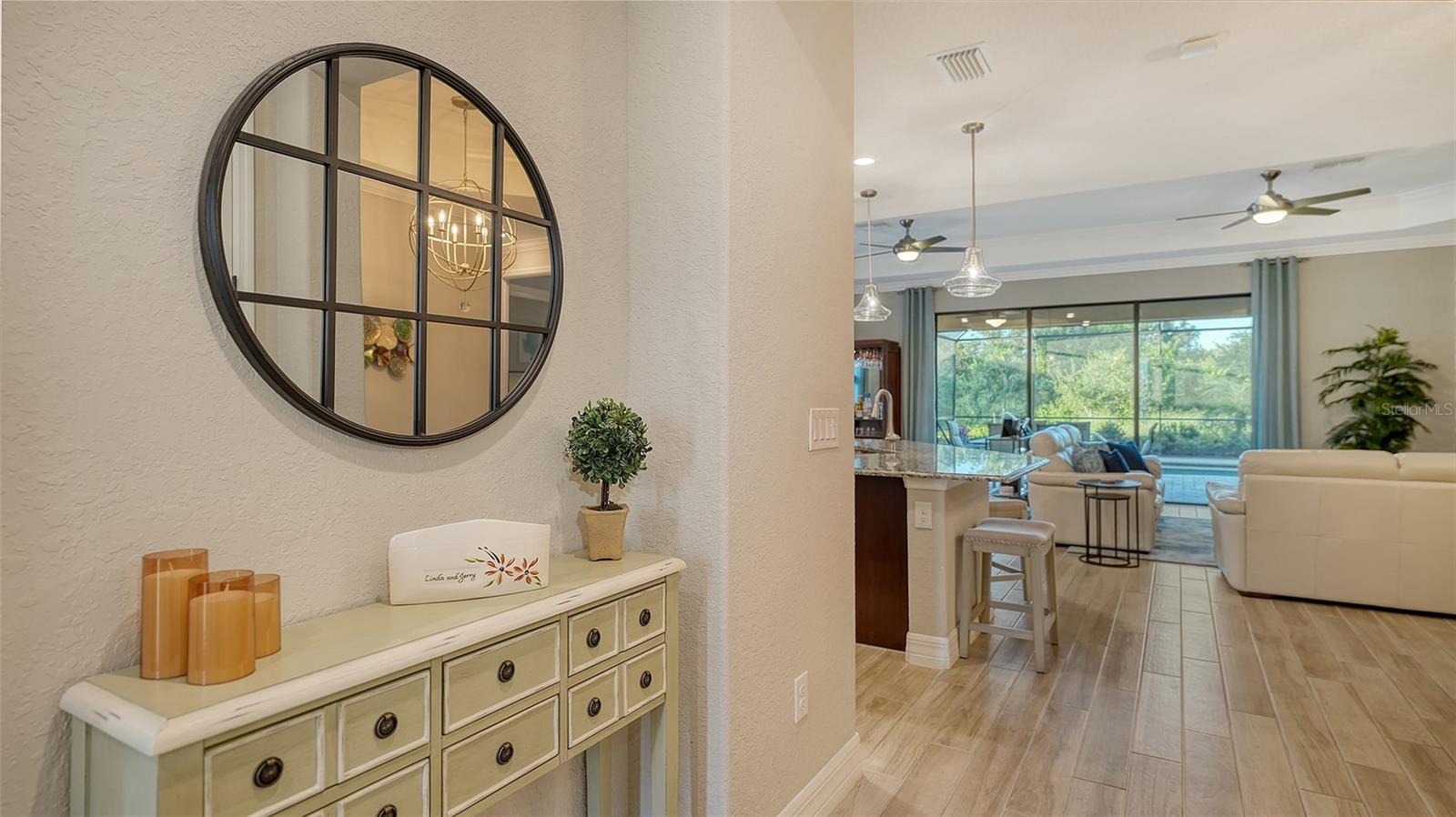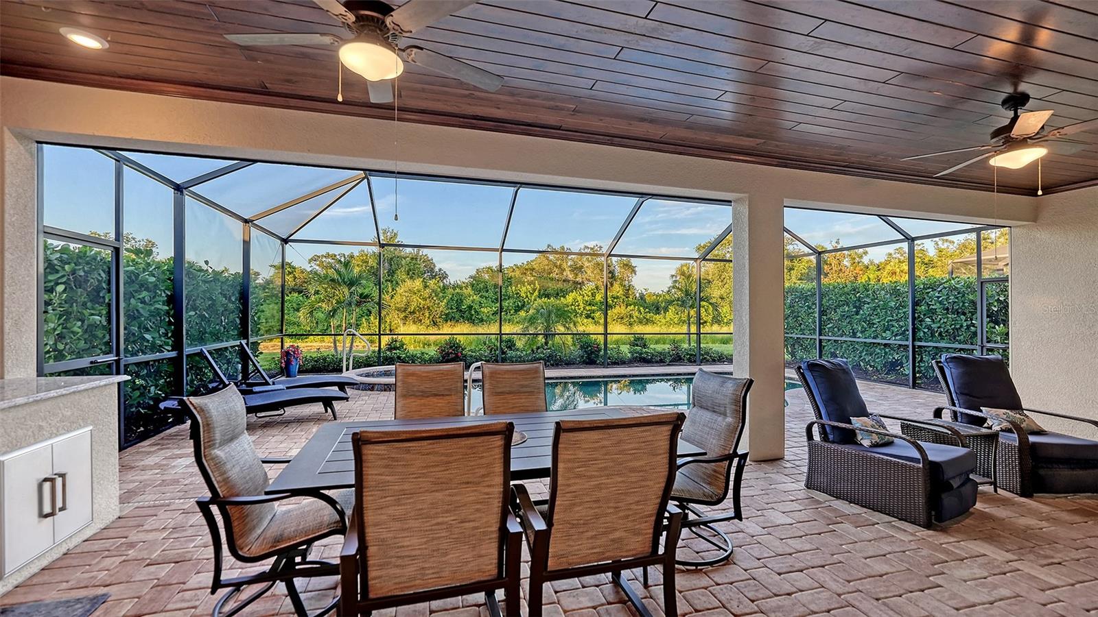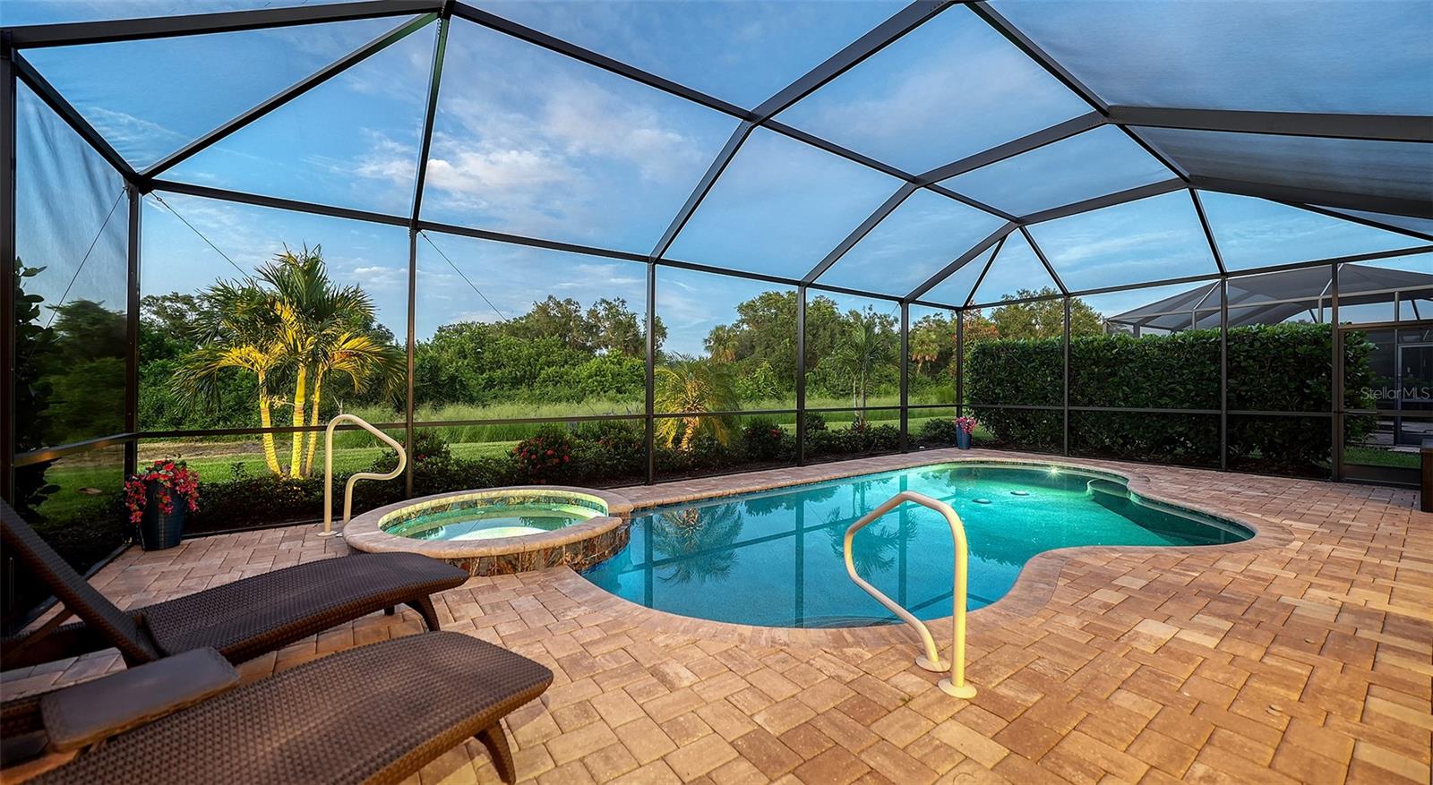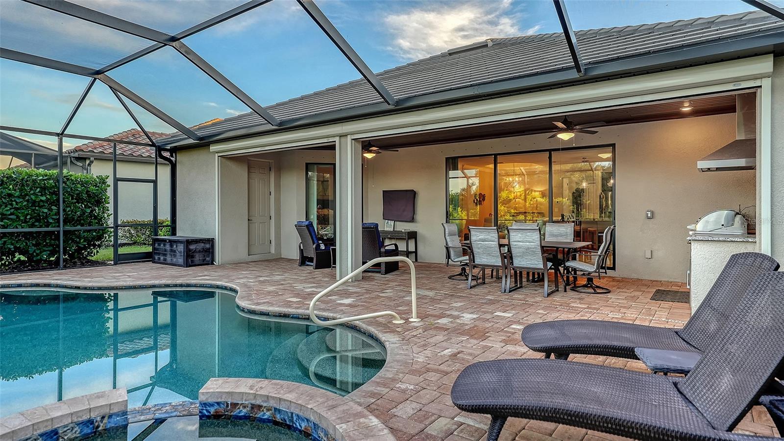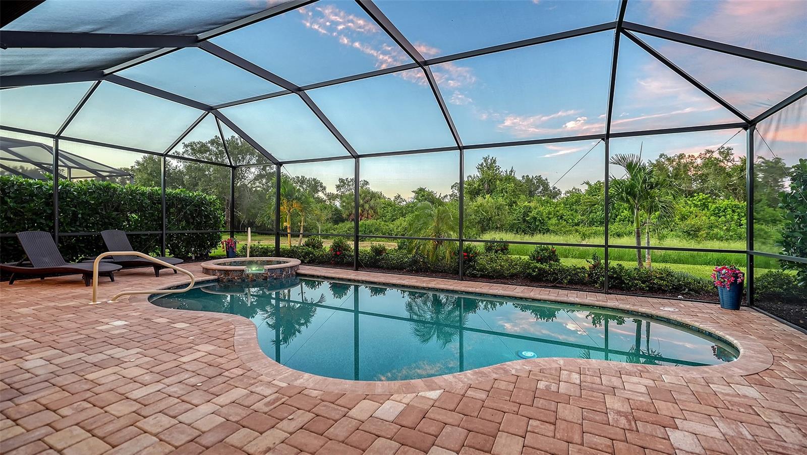 17609 Hickok Belt Loop in Lakewood National Golf Club offers the perfect combination of Luxury, Privacy, and RESORT-STYLE living. This fully GOLF-DEEDED home sits on a Private Nature-View lot and features an Open Concept layout, Gourmet Kitchen with Granite countertops and Stainless-Steel Appliances, spacious great room with Tray Ceilings, and a Luxurious Primary Suite with Dual Closets each featuring Custom Closet Organizers. Additional highlights include guest bedroom, a versatile den or office, and a state-of-the-art Security System.Designed for entertaining, the expansive screened lanai includes Powered Hurricane Storm Shades, a Heated Pool, Relaxing Hot Tub, and fully equipped Outdoor Kitchen. The home also includes IMPACT GLASS Windows and a WHOLE-HOME GENERATOR for peace of mind and safety.As part of Lakewood National Golf Club, residents enjoy 36 Holes of Arnold Palmer-Designed Championship Golf, Grand Clubhouse with Dining and Social Events, true Resort-Style Pool with Waterfalls and TIKI BAR, Fitness Center, Full-Service Spa, and Tennis, Pickleball, and Bocce courts. This home combines Luxury, Convenience, and Florida Indoor-Outdoor Living in one of Lakewood Ranch's most desirable communities.