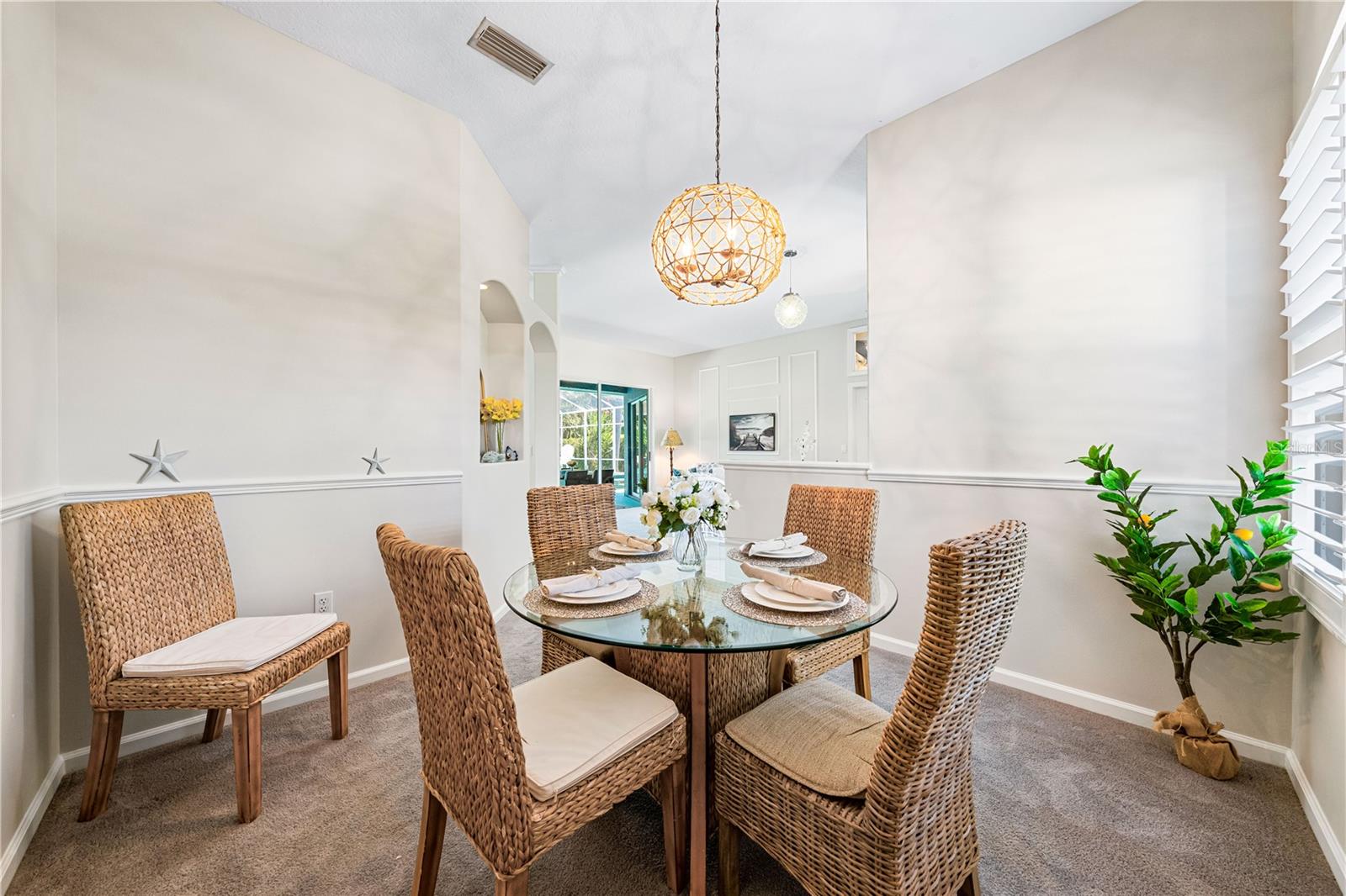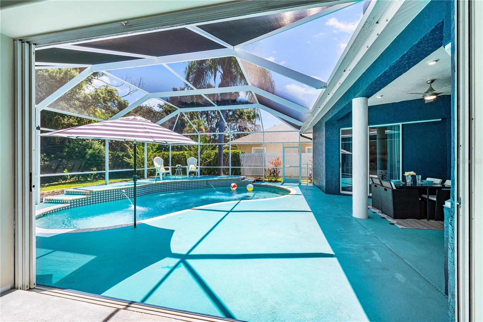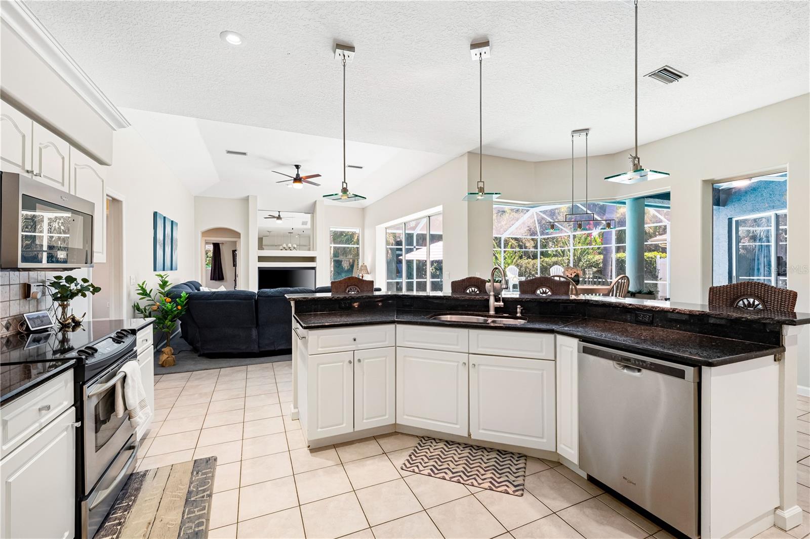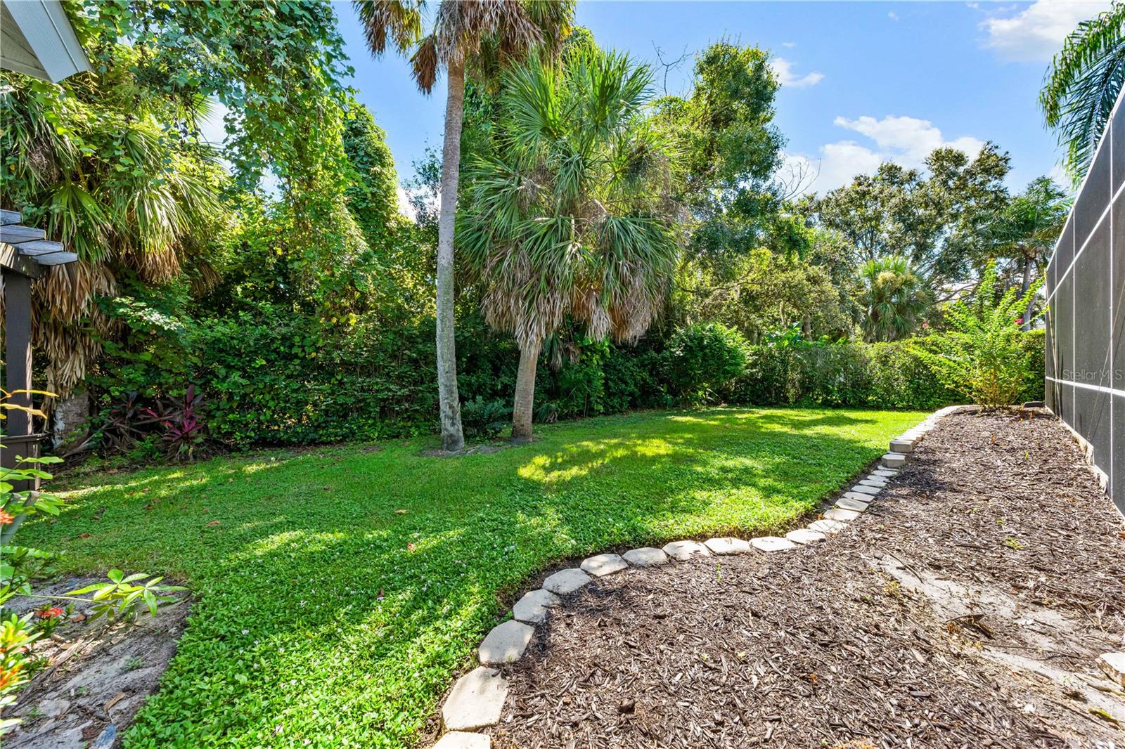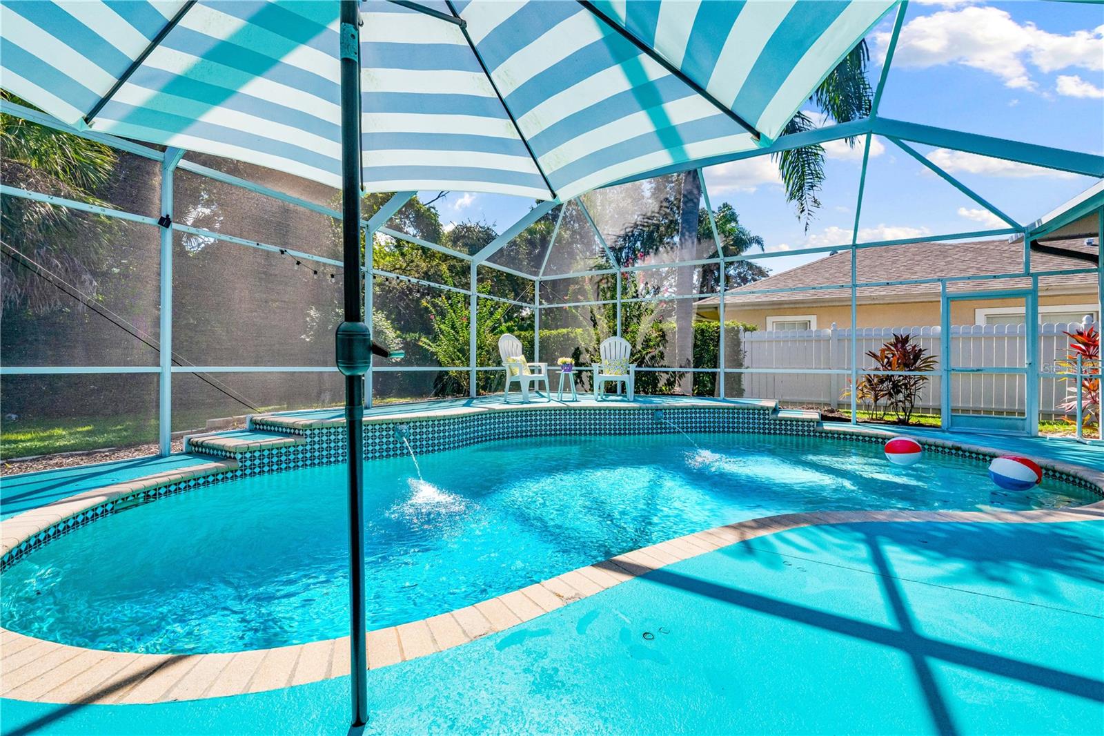 One of the largest homes in Bay Oaks Estates, this 5-bed, 2.5-bath single-story pool retreat delivers the best of indoor-outdoor Florida living with flexible spaces for guests, work, and play. Curb appeal pops with a brick paver circular drive, lush landscaping, and a covered, columned entry with French double doors and an arched transom. Inside, high ceilings and an abundance of natural light set a welcoming tone. The formal living and dining rooms flow to the heart of the home - a well-appointed kitchen designed for everyday living and entertaining, featuring granite counters, tile backsplash, stainless appliances, a center island with raised breakfast bar, closet pantry, built-in desk and wine rack, recessed & pendant lighting, and a picturesque breakfast nook with wraparound windows. The kitchen opens to the spacious family room with a tray ceiling and mirrored media niche. A pocketing three-panel slider seamlessly extends the living space to the covered lanai and screened pool; additional sliders from the formal living room, the primary suite, and a secondary bedroom maintain the indoor-outdoor connection.Out back, the lanai enjoys a private, tranquil, tree-lined backdrop, overlooking a curved, free-form pool with twin arc fountain jets, a raised sun terrace for lounging, and generous space to relax or gather. A screen door leads to the lawn and a separate pergola patio with power - perfect for morning coffee or an evening grill. From the backyard you have direct access to the Legacy Trail, the popular paved, multi-use path linking Sarasota and Venice, for miles of biking and walking through nature.The private primary retreat offers lanai access, two closets (one walk-in), and a spa-like en-suite bath with a Jacuzzi jetted soaking tub framed by an arched window with plantation shutters, separate walk-in shower with wall body sprays, a long double vanity, and a private water closet. Thoughtful split-bedroom design places three secondary bedrooms and a full bath together in their own wing (one is oversized with lanai access that can flex as a game/media space), while a full 5th bedroom - currently used as an office - sits near the primary suite. An interior laundry room adds storage shelves, cabinets, and a utility sink. Major updates for peace of mind include: replumbed water lines, roof (2015), A/C (2019), new water heater (2024), new pool pump (2024), kitchen appliances (2021), washer and dryer (2023), polycarbonate storm panels, and irrigation.All in a well-kept, low-fee, pet-friendly Osprey community conveniently located just minutes from top-rated schools, including the prestigious Pine View School, and close to the Gulf beaches of world-renowned Siesta Key, Nokomis, and Venice, as well as Oscar Scherer State Park, and a variety of shopping, dining, entertainment, and everyday conveniences; the Gulf Coast lifestyle at its finest. Schedule your private showing today and fall in love with the lifestyle that 571 Pine Ranch East Rd has to offer.