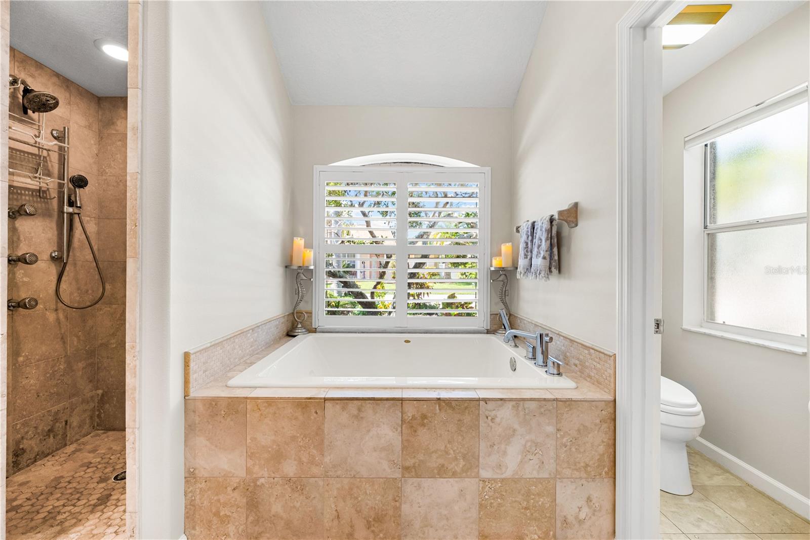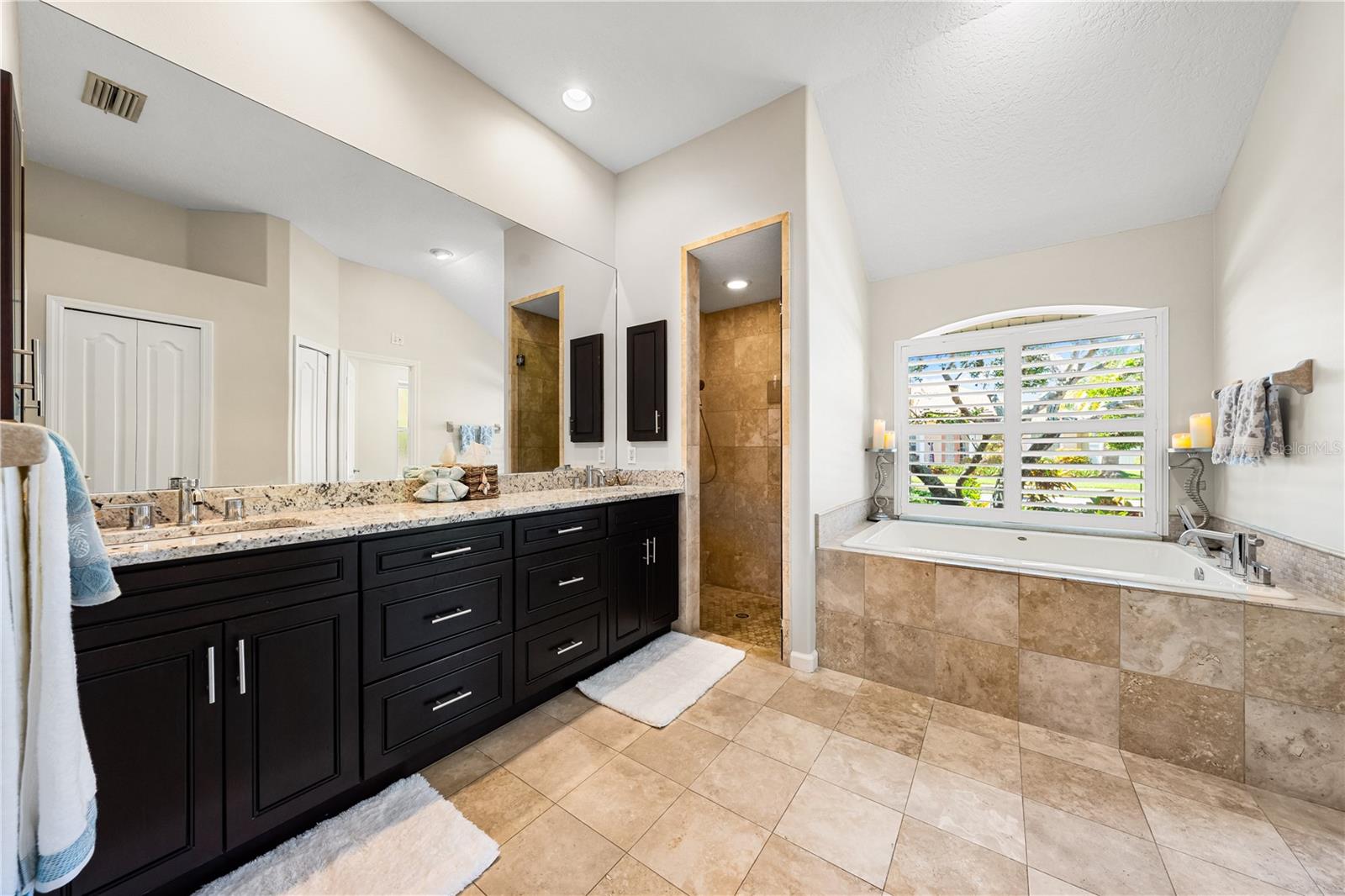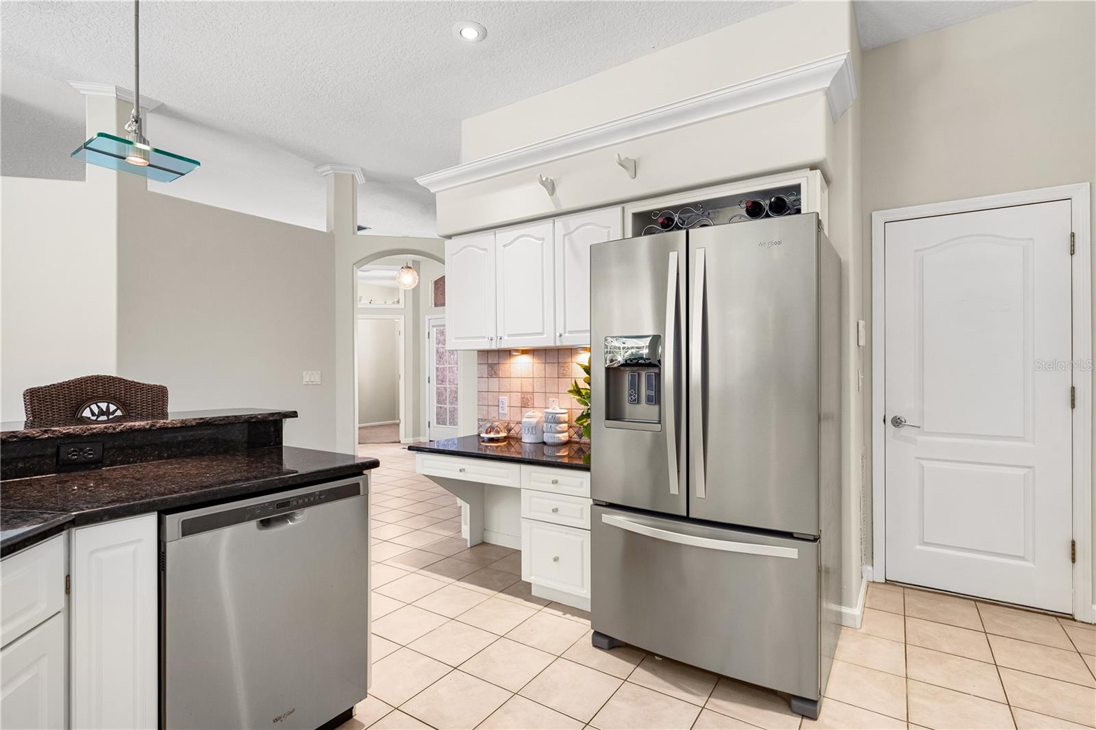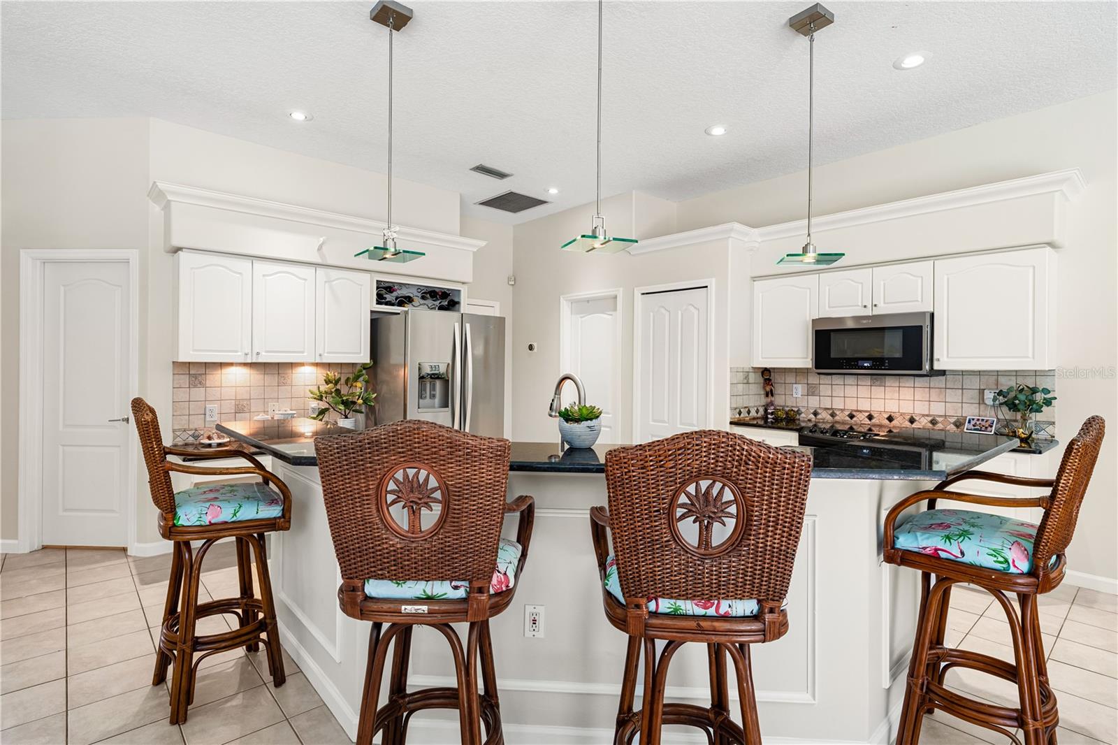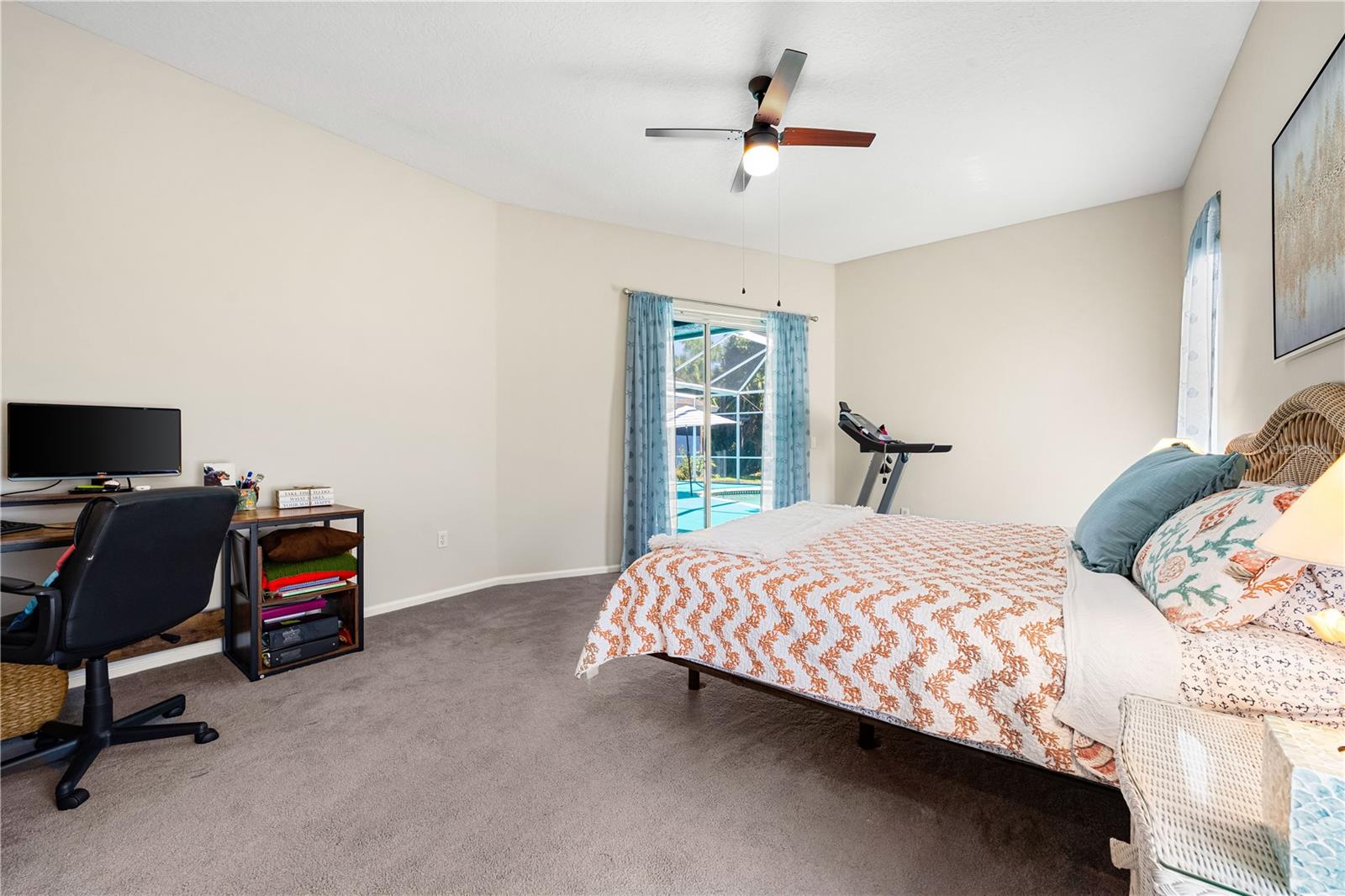 One of the largest homes in Bay Oaks Estates, this 5-bed, 2.5-bath single-story pool retreat delivers the best of indoor-outdoor Florida living with flexible spaces for guests, work, and play. Curb appeal pops with a brick paver circular drive, lush landscaping, and a covered, columned entry with French double doors and an arched transom. Inside, high ceilings and an abundance of natural light set a welcoming tone. The formal living and dining rooms flow to the heart of the home - a well-appointed kitchen designed for everyday living and entertaining, featuring granite counters, tile backsplash, stainless appliances, a center island with raised breakfast bar, closet pantry, built-in desk and wine rack, recessed & pendant lighting, and a picturesque breakfast nook with wraparound windows. The kitchen opens to the spacious family room with a tray ceiling and mirrored media niche. A pocketing three-panel slider seamlessly extends the living space to the covered lanai and screened pool; additional sliders from the formal living room, the primary suite, and a secondary bedroom maintain the indoor-outdoor connection.Out back, the lanai enjoys a private, tranquil, tree-lined backdrop, overlooking a curved, free-form pool with twin arc fountain jets, a raised sun terrace for lounging, and generous space to relax or gather. A screen door leads to the lawn and a separate pergola patio with power - perfect for morning coffee or an evening grill. From the backyard you have direct access to the Legacy Trail, the popular paved, multi-use path linking Sarasota and Venice, for miles of biking and walking through nature.The private primary retreat offers lanai access, two closets (one walk-in), and a spa-like en-suite bath with a Jacuzzi jetted soaking tub framed by an arched window with plantation shutters, separate walk-in shower with wall body sprays, a long double vanity, and a private water closet. Thoughtful split-bedroom design places three secondary bedrooms and a full bath together in their own wing (one is oversized with lanai access that can flex as a game/media space), while a full 5th bedroom - currently used as an office - sits near the primary suite. An interior laundry room adds storage shelves, cabinets, and a utility sink. Major updates for peace of mind include: replumbed water lines, roof (2015), A/C (2019), new water heater (2024), new pool pump (2024), kitchen appliances (2021), washer and dryer (2023), polycarbonate storm panels, and irrigation.All in a well-kept, low-fee, pet-friendly Osprey community conveniently located just minutes from top-rated schools, including the prestigious Pine View School, and close to the Gulf beaches of world-renowned Siesta Key, Nokomis, and Venice, as well as Oscar Scherer State Park, and a variety of shopping, dining, entertainment, and everyday conveniences; the Gulf Coast lifestyle at its finest. Schedule your private showing today and fall in love with the lifestyle that 571 Pine Ranch East Rd has to offer.