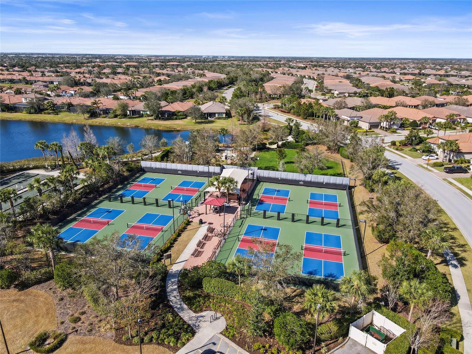 Under contract-accepting backup offers. Experience resort-style living every day in this beautifully appointed Lazio model located in the highly sought-after Esplanade Golf & Country Club at Lakewood Ranch. Perfectly positioned on one of the most desirable lots in the community, this residence captures breathtaking water views overlooking the community's secondary pool and amenity center, creating a tranquil backdrop that sets the tone for everyday relaxation and entertaining.Step inside and you'll immediately notice the attention to detail throughout. Custom murals add artistic character and warmth, while tray ceilings with crown molding elevate each room with timeless sophistication. Designed for both comfort and function, this home features custom built-in closets, offering a blend of style and practicality that discerning buyers will appreciate.The heart of the home flows seamlessly to the outdoors, where a custom extended patio and panoramic screen enclosure frame the stunning water view. A motorized pergola allows for effortless shade control, while the custom outdoor kitchen and grill make alfresco dining a year-round delight. The recently refreshed landscaping enhances the serene setting, giving the home exceptional curb appeal and a true sense of retreat.As a non-golf deeded property, you'll enjoy access to Esplanade's world-class resort amenities including resort-style pools, fitness and wellness centers, tennis, pickleball, dining, and vibrant social programming. Residents also have the luxury of enjoying on-site spa and massage services as well as professional esthetician treatments that bring the resort experience right to your doorstep.This is more than a home. It is a lifestyle defined by luxury, leisure, and connection. Discover the perfect balance of elegance and ease in one of Lakewood Ranch's premier gated communities.