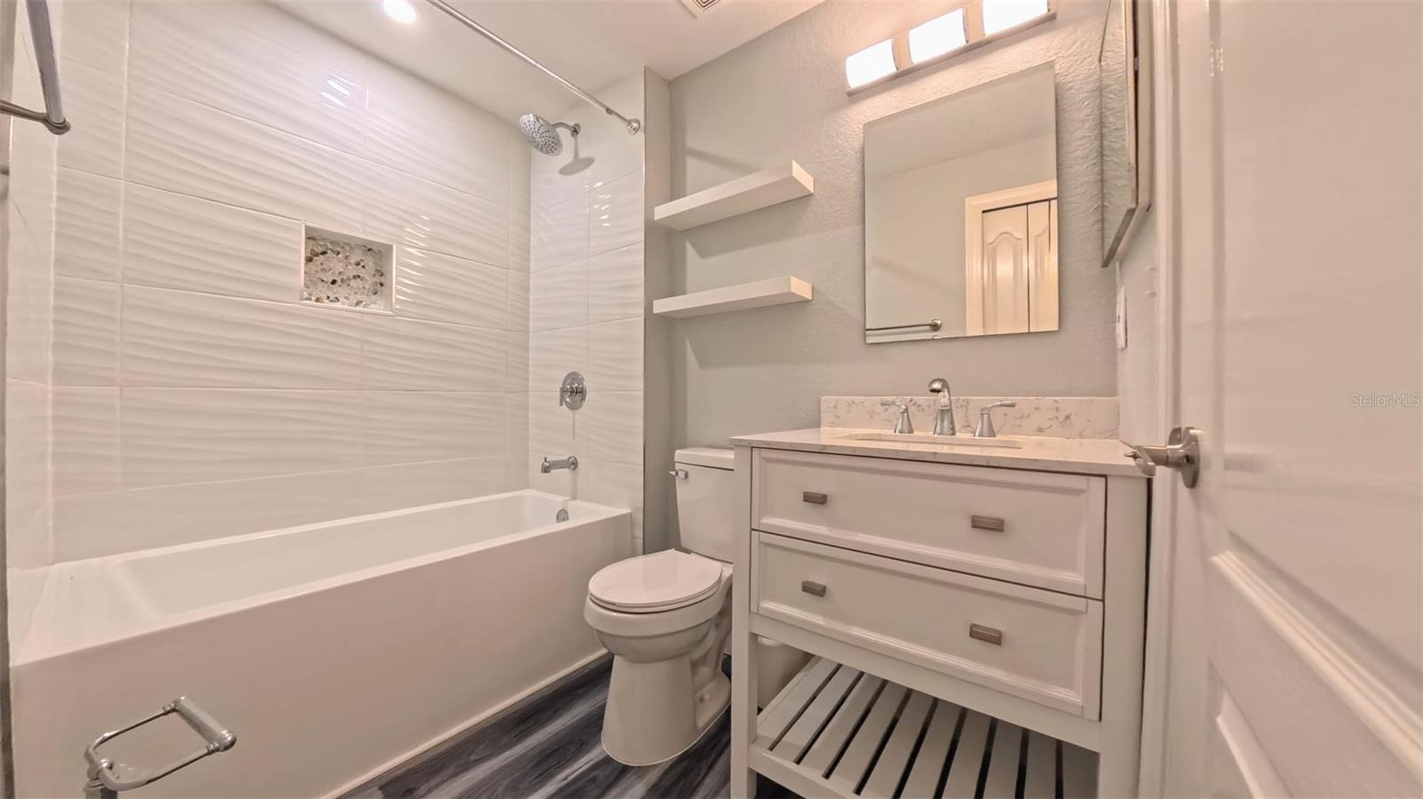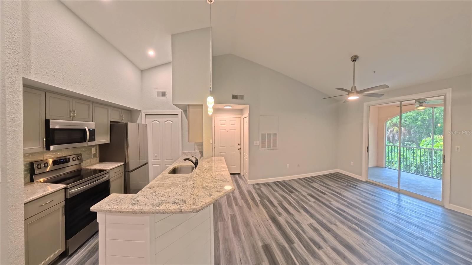 BEAUTIFULLY UPGRADED AND GREAT COASTAL LOCATION & CLOSE TO THE TOP-RATED U.S. BEACH ON SIESTA KEY. This 2-bedroom, 2 bath condominium home is an end unit on the 2nd floor with vaulted ceiling (top floor in the building). It has tree-top views and sky from the screened patio. It comes with a covered, lighted carport in front of the building and is conveniently located across from the clubhouse, pool, fitness center and mailboxes. It boasts beautiful wood laminate flooring, custom paint, shiplap in the living room, upgraded light fixtures and ceiling fans, new plumbing fixtures and door hardware throughout. It features an open floor plan with a raised breakfast bar that is central and shared with the living and dining areas. The kitchen features solid surface countertops, glass tile backsplash, custom cabinetry, stainless appliances and contains a side-entry laundry closet with a full-size washer and dryer. The private, master bedroom has 2 large windows, a walk-in closet and "en suite" bathroom. The shower is tiled and glass enclosed with a beautiful vanity and lighted mirror. The second bedroom has 2 large windows and is located across the hall from the main bathroom which includes a large tub with a shower. The building's exterior has been renovated with impact resistant thermal windows. The floor plan is in the photo gallery. The condo is in the quiet, gated community named "Bella Villino Condominiums" which is located in the award-winning, master-planned development of "Palmer Ranch" in south Sarasota. The community boasts superb amenities not available at comparable properties in this price range and features an elegant clubhouse with a resort-style heated pool and spa, a large fitness center with state-of-the-art equipment including cardio machines, indoor racquetball and basketball, a billiards room, and a business center. The community has a tennis court, pickle-ball courts, a car detail area, gas grills with picnic areas, pet stations located around the property, an onsite property manager, and maintenance staff. It is close to world-class beaches, marinas, the popular Legacy Trail (bicycle, jog, or walk), shopping centers with a Costco, Target, Publix, Walgreens, CVS, various banks, restaurants, golf courses, art centers, museums, and so much more. This unit is ready for a new owner!