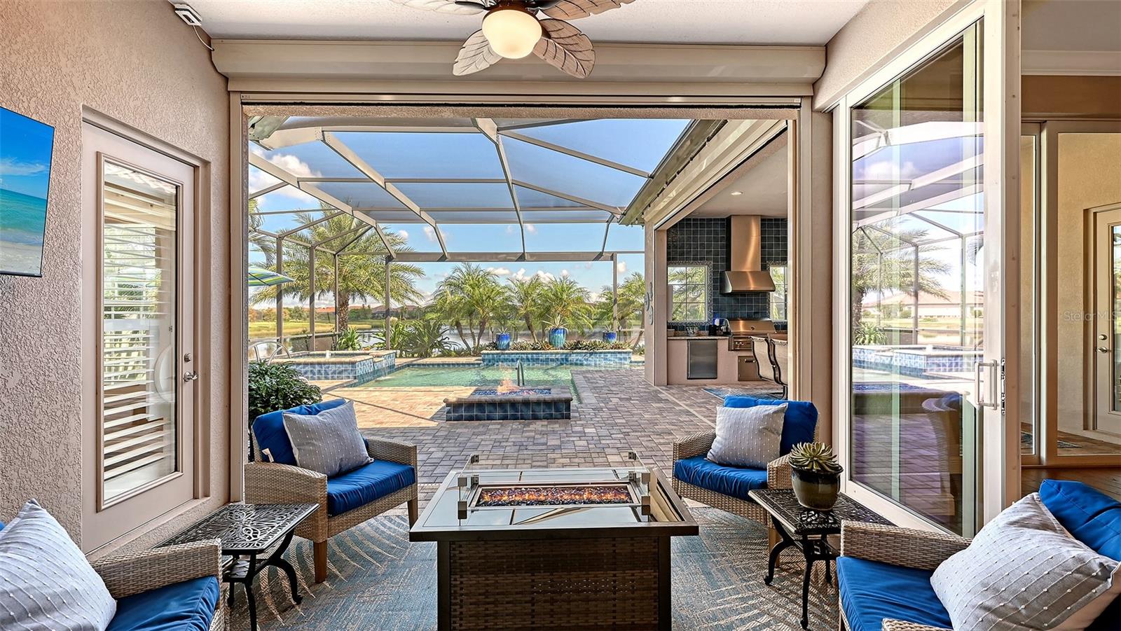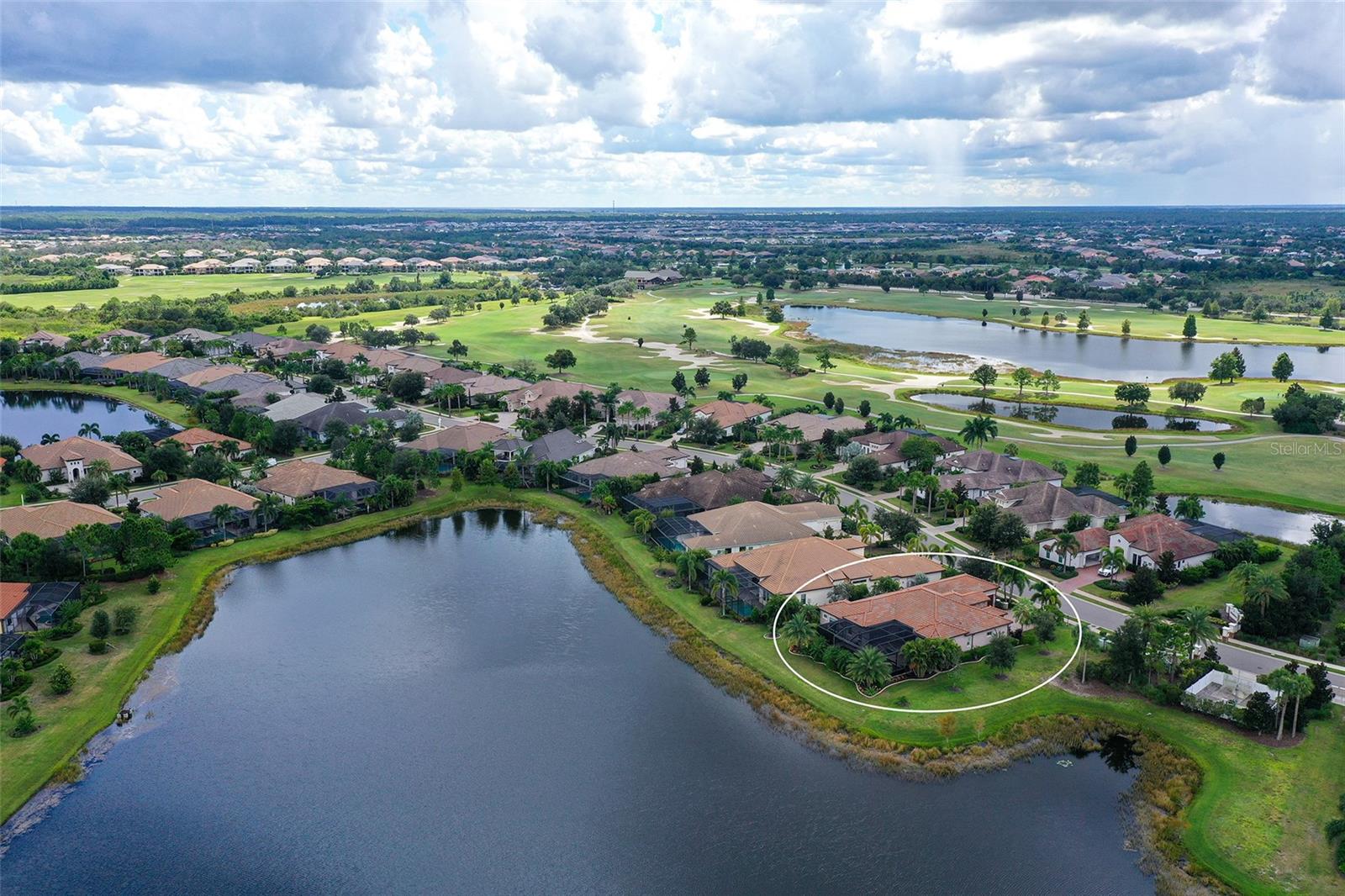 Positioned on a premier homesite with water on two sides and sweeping long-lake views, this John Cannon custom-built residence blends quality construction with timeless design. Hurricane impact glass, front and rear roll-down storm shades, and a whole-house generator provide peace of mind, while beautiful wood floors, solid core doors, crown molding, volume tray and coffered ceilings, plantation shutters, and built-in speakers elevate the interiors. At the heart of the home, the kitchen showcases a large center island with dinette seating, wine bar with wine fridge, stainless steel appliances, and a gas cooktop, opening effortlessly to the living and dining rooms for both everyday living and entertaining. The expansive primary suite features a double-door entry, tray ceiling, lanai access, spa-like bath with walk-in shower, dual vanities with makeup counter, and an enviable custom-designed closet. Thoughtfully arranged guest suites ensure privacy, while the versatile fourth bedroom with lanai access easily serves as an office or bonus room. Zero-corner sliders in the living room and multiple sets of sliders from the dinette extend the living space outdoors, where the lanai becomes an entertainer's paradise--complete with saltwater pool and spa, full outdoor kitchen, and both lounging and dining areas framed by spectacular water views. Added highlights include a tankless water heater, landscape lighting, utility sinks in both the laundry room and garage, and countless other thoughtful details that make this home exceptional. Lakewood Ranch is the number one best-selling multigenerational community in the country and is located near world-class shopping, dining, and entertainment at Lakewood Ranch Main Street, University Town Center, and downtown Sarasota, with minutes to I-75, beaches, excellent schools, and medical facilities. Several levels of membership to the Lakewood Ranch Golf and Country Club are available and optional.