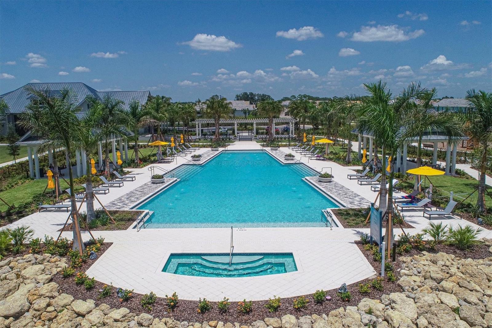Welcome to this stunning Homes by Towne Schooner model in the Lakehouse Cove neighborhood, just minutes from Lakewood Ranch's Waterside Place. This beautifully designed three-bedroom, two-bath home offers a luxurious blend of comfort and style, ideal for relaxation and entertaining. At the heart of the home is the spacious great room featuring a tray ceiling, stylish lighting and an electric fireplace, creating a warm and inviting atmosphere. Sliding glass doors open to the sunny paver lanai, heated saltwater pool and spa, ideal for enjoying Florida's year-round sunshine. The open-concept floor plan flows seamlessly into the kitchen, which is a chef's dream with a large island that seats five, white cabinetry, stainless steel appliances, quartz countertops and pendant lighting. A dry bar with a beverage cooler and pass-through window to the lanai allows you to serve guests outside. The adjacent dining room is conveniently off the kitchen. Retreat to the primary suite, featuring a tray ceiling, abundant natural light and plantation shutters. The en-suite bath offers dual sinks, a walk-in shower and an expansive walk-in closet with built-in organizers. Two guest bedrooms, at front of the home, share a guest bath, providing ultimate privacy. The third bedroom is ideal for use as an office or guest room. Your outdoor space is prepped for an outdoor kitchen, making it easy to create your own alfresco dining and entertaining space. This maintenance-free home features hurricane-impact windows and doors, neutral gray paint, tall ceilings and white molding throughout, offering a fresh, modern look. The beautifully landscaped lawn completes the package, providing an attractive curb appeal. With its built-in sound system, large covered outdoor entertaining space and proximity to Lakewood Ranch's Waterside Place, this home is must-see! Lakehouse Cove at Waterside presents a lifestyle enriched with an array of amenities that redefine community living. The full-time social director orchestrates events and activities that foster a sense of community, making Lakehouse Cove a place where neighbors become friends. Just a leisurely distance away, Waterside Place awaits, offering a vibrant hub of shopping, dining and entertainment. The clubhouse provides a central gathering point for residents to connect and unwind. Dive into relaxation at the pool and spa, where the serene waters offer a refreshing escape. Stay active at the fitness center or engage in a friendly game at the pickleball courts. For pets, two dog parks provide a space for play and socialization. The children's playground ensures every member of the family has a space to enjoy. Your dream home is here, ready to welcome you with open arms. Don't miss the opportunity to make it yours!