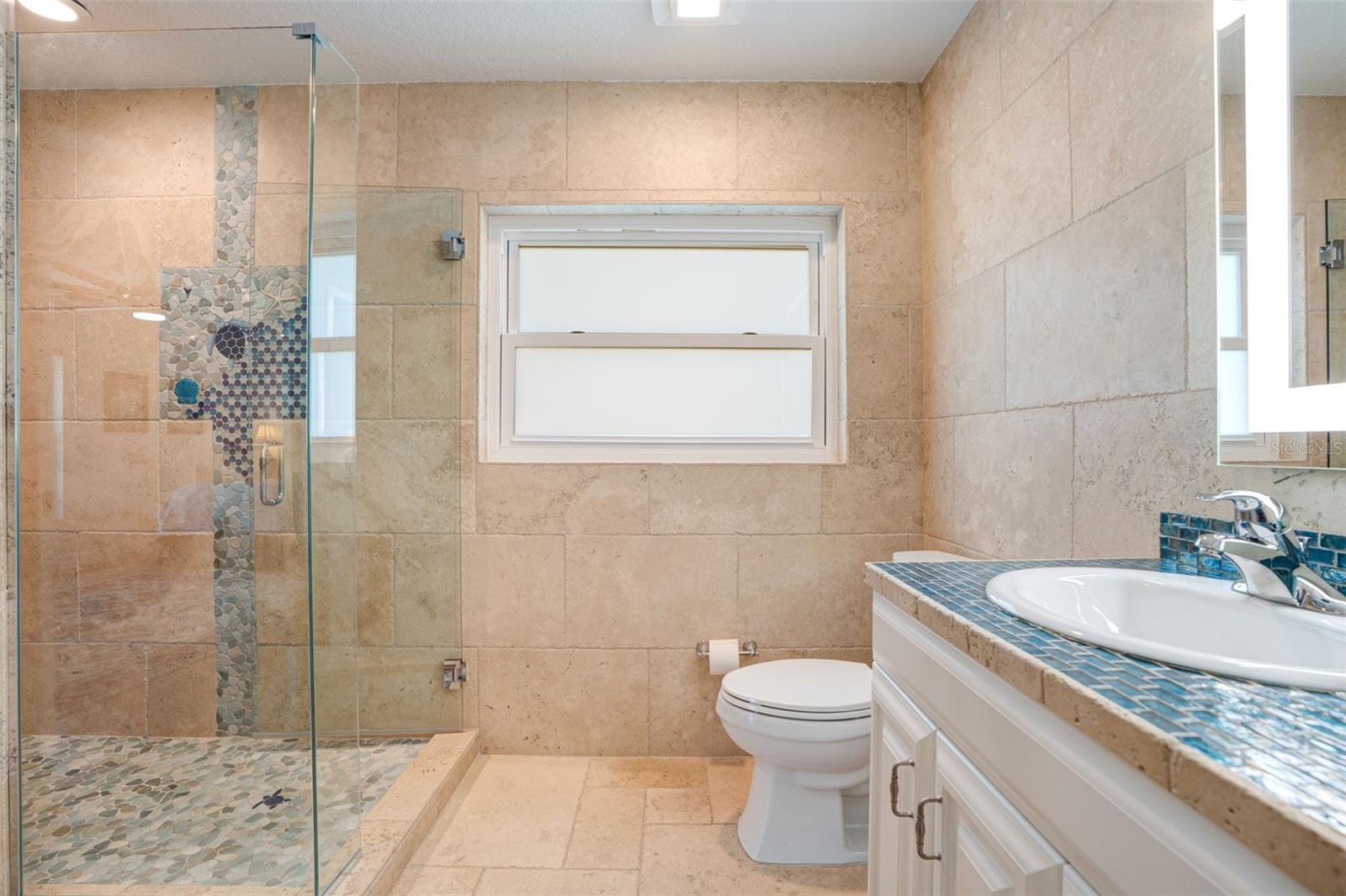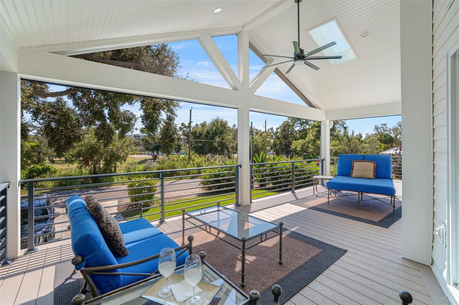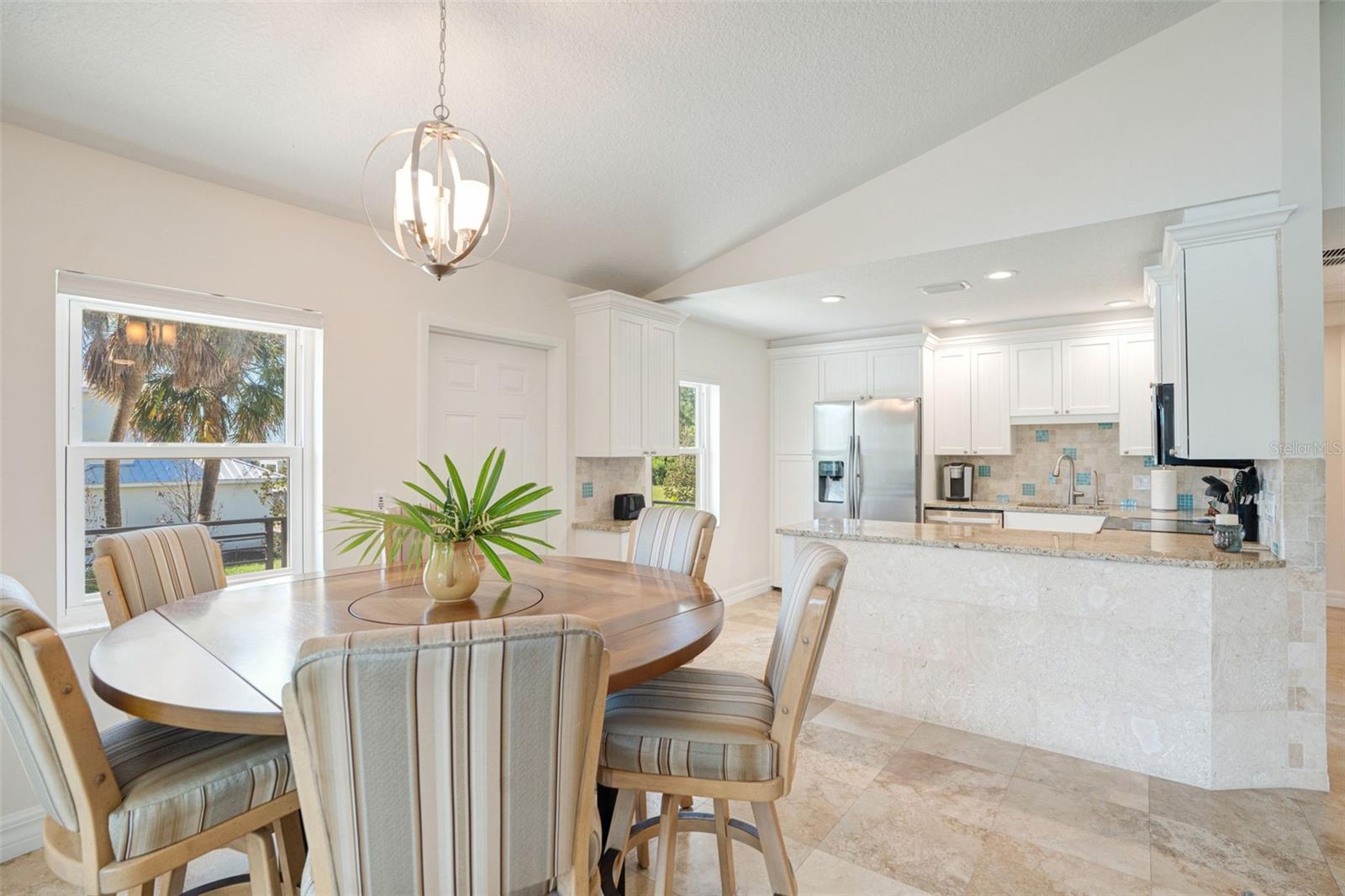 Live like you're on vacation in this updated Key West-style home West of the Trail. Upgrades include a new standing seam metal roof, hurricane impact windows, electric tankless water heater, wraparound "Lifeproof" composite decking, and a custom heated pool. Interior features vaulted ceilings with a mix of travertine, LVP, and tile flooring, plus a kitchen with solid wood cabinets, stainless steel appliances, beadboard ceiling, and custom backsplash. The screened second-story porch has an electronic roll-up system for open-air or enclosed comfort. A unique "hidden" door design allows the home to function as one residence or two separate units, with the lower level offering its own entrance, bedroom, bath, family room, and laundry--perfect for in-laws, guests, or rental income. Outdoors, enjoy lush landscaping, a tropical pool setting, and unbeatable location just a block from the public dock and kayak launch. Minutes to Sarasota, Venice Island, beaches, Legacy Trail, and Spanish Pointe.