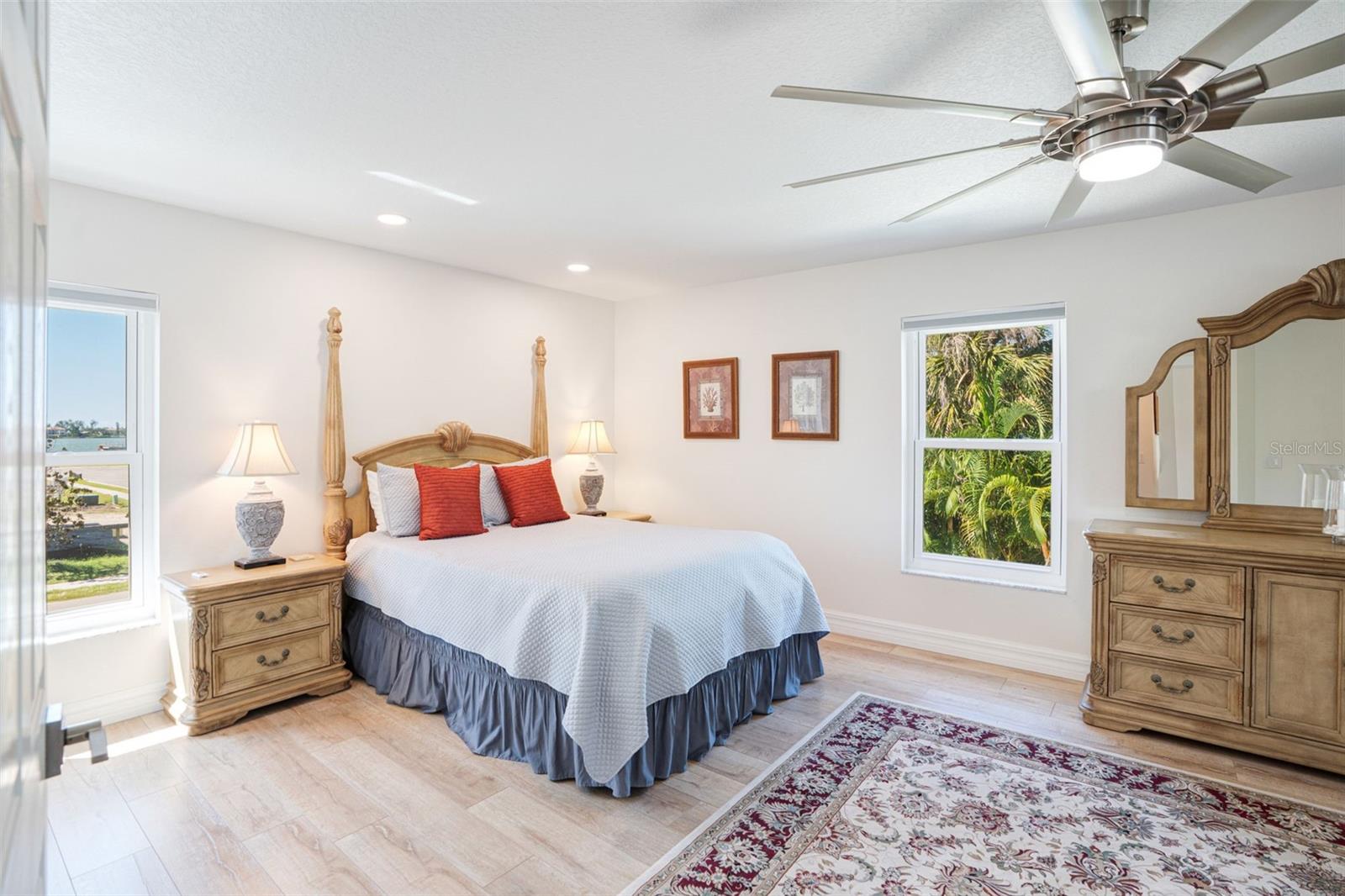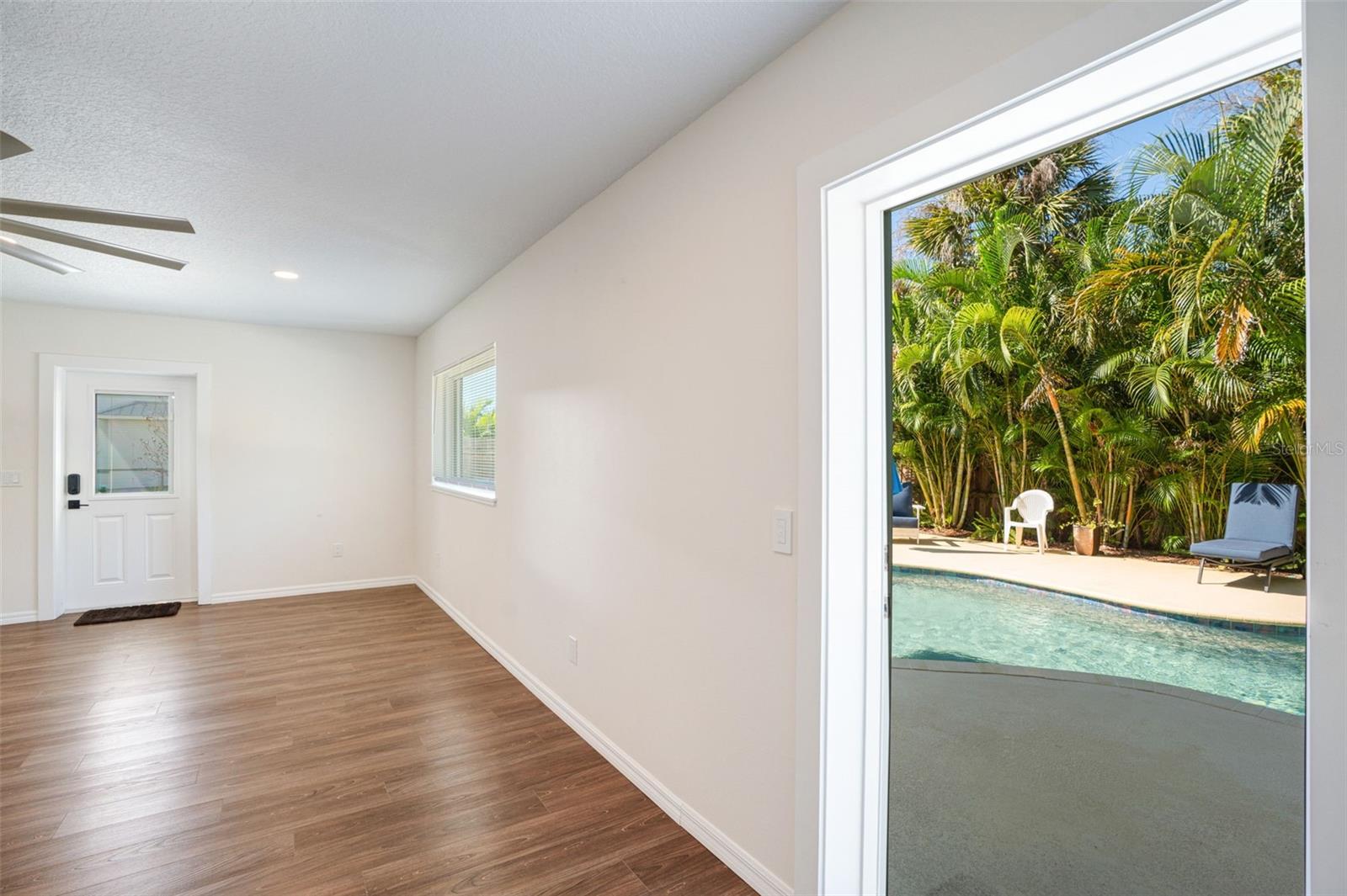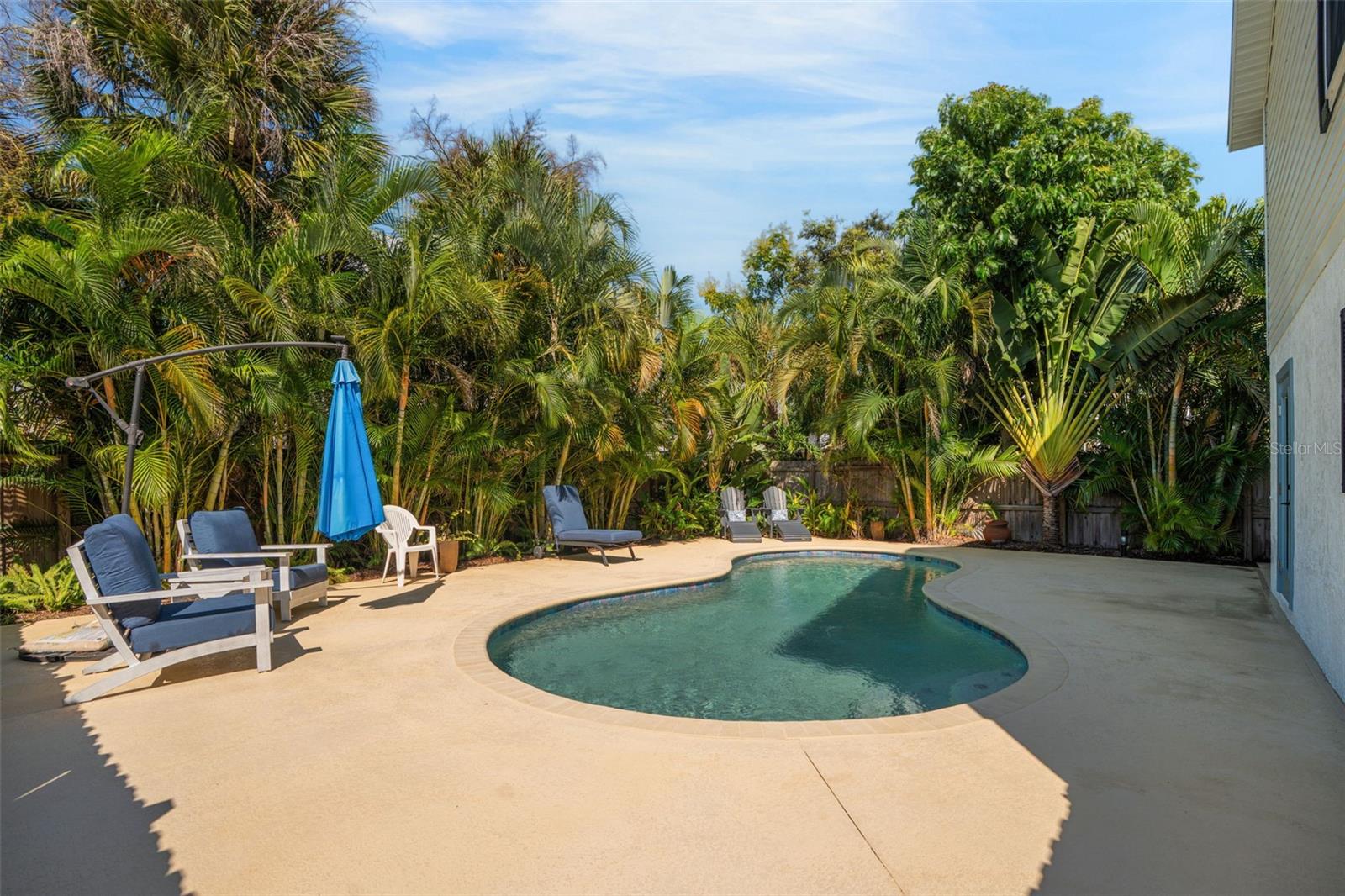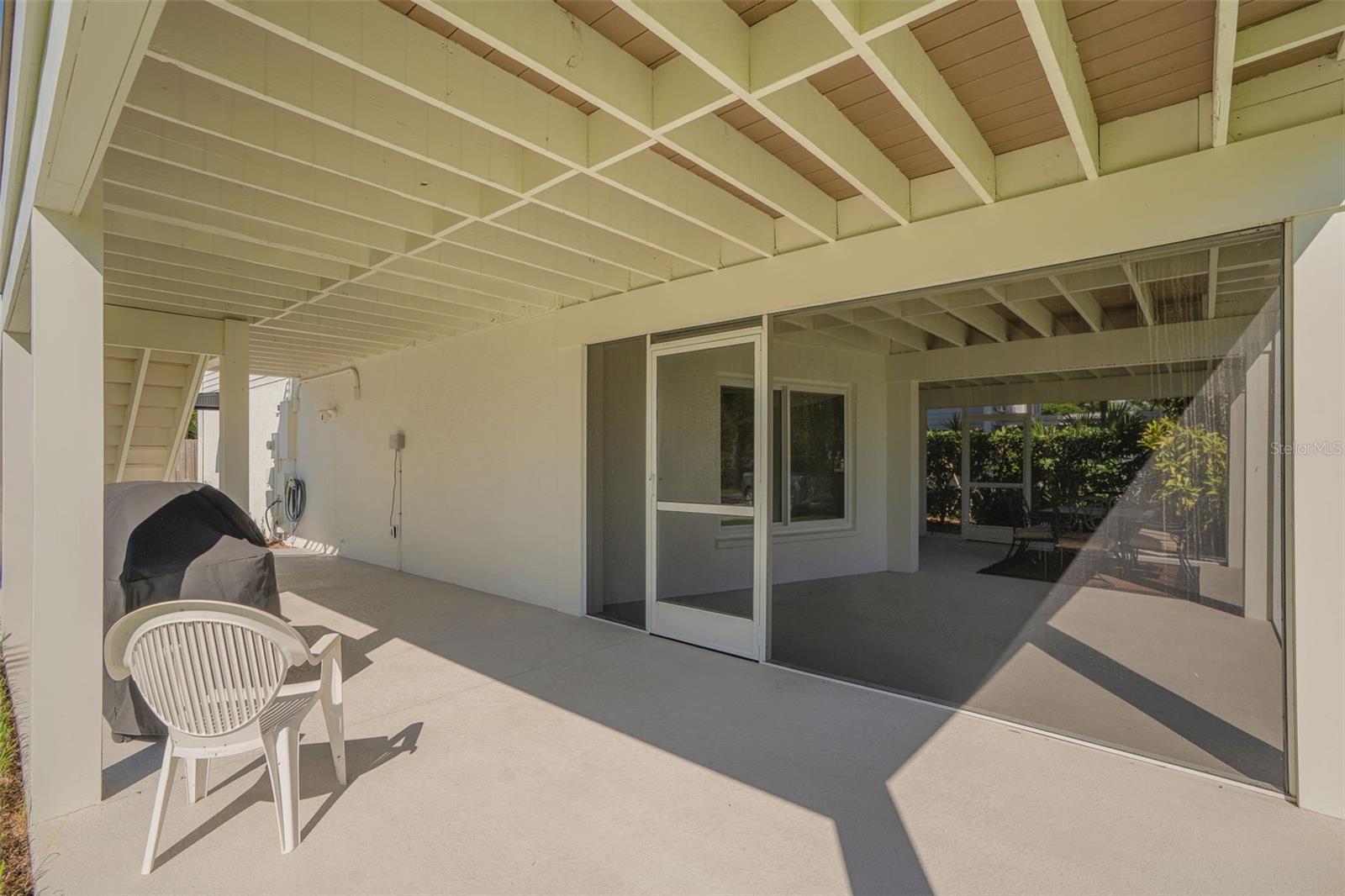 Live like you're on vacation in this updated Key West-style home West of the Trail. Upgrades include a new standing seam metal roof, hurricane impact windows, electric tankless water heater, wraparound "Lifeproof" composite decking, and a custom heated pool. Interior features vaulted ceilings with a mix of travertine, LVP, and tile flooring, plus a kitchen with solid wood cabinets, stainless steel appliances, beadboard ceiling, and custom backsplash. The screened second-story porch has an electronic roll-up system for open-air or enclosed comfort. A unique "hidden" door design allows the home to function as one residence or two separate units, with the lower level offering its own entrance, bedroom, bath, family room, and laundry--perfect for in-laws, guests, or rental income. Outdoors, enjoy lush landscaping, a tropical pool setting, and unbeatable location just a block from the public dock and kayak launch. Minutes to Sarasota, Venice Island, beaches, Legacy Trail, and Spanish Pointe.