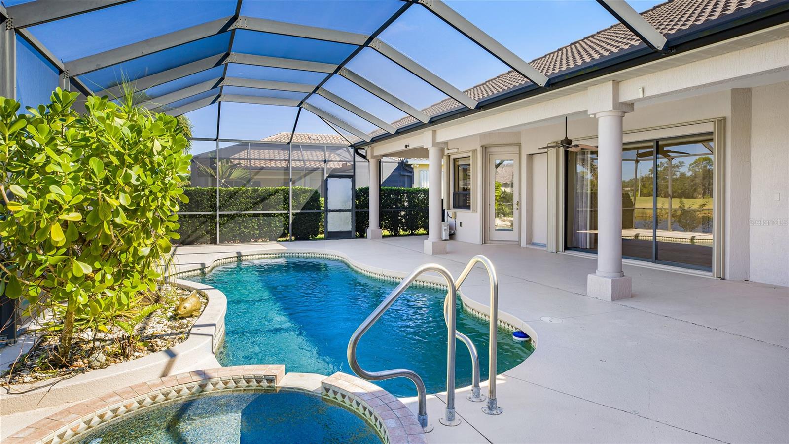 Under contract-accepting backup offers. One or more photo(s) has been virtually staged. Welcome to Pelican Pointe Golf & Country Club, one of Venice's premier gated communities offering resort-style amenities and a vibrant social lifestyle. This 4-bedroom, 3-bathroom home combines functional design with peaceful lake views and a private screened pool and spa. The open layout features tray ceilings, tile and wood flooring, and multiple sliders that bring in natural light and blend indoor and outdoor living. The kitchen is equipped with Bosch stainless steel appliances, double ovens, granite countertops, a vented range hood, and an under-sink water filtration system. The primary suite includes a walk-in closet and an ensuite bath featuring a steam shower and built-in bench. Additional highlights include a screened front portico that allows cross-breezes through the home, aluminum storm shutters, a whole-house security system, and an automatic backup power generator supporting essential areas of the home. Recent updates include a new Lennox main HVAC and Mitsubishi mini-splits (2025) with Wi-Fi thermostats, plus a new hot water heater (2024). Enjoy relaxing poolside with serene lake views or take advantage of the Pelican Pointe lifestyle--featuring a championship golf course, clubhouse with dining, fitness center, tennis, pickleball, and community events, all minutes from Venice's beaches, shopping, and historic downtown. **THIS PROPERTY QUALIFIES FOR A 1% LENDER INCENTIVE IF USING PREFERRED LENDER. INQUIRE FOR MORE DETAILS.**