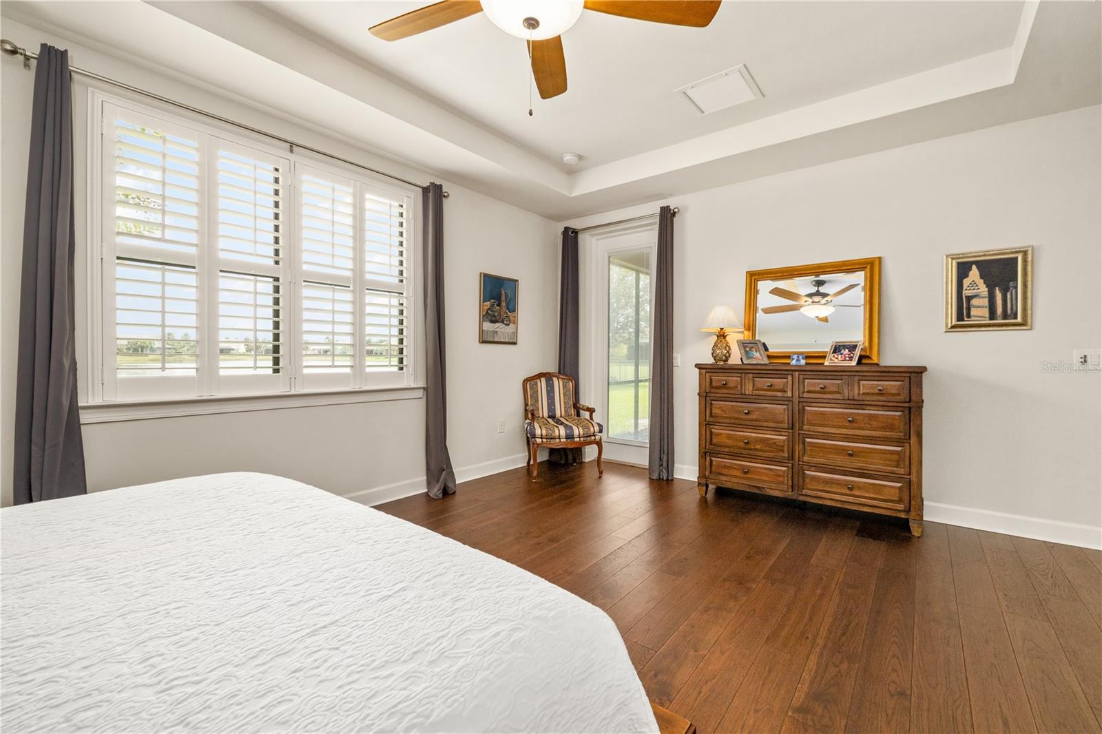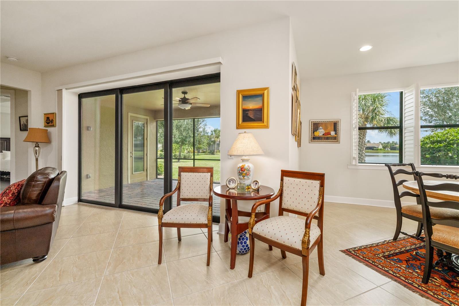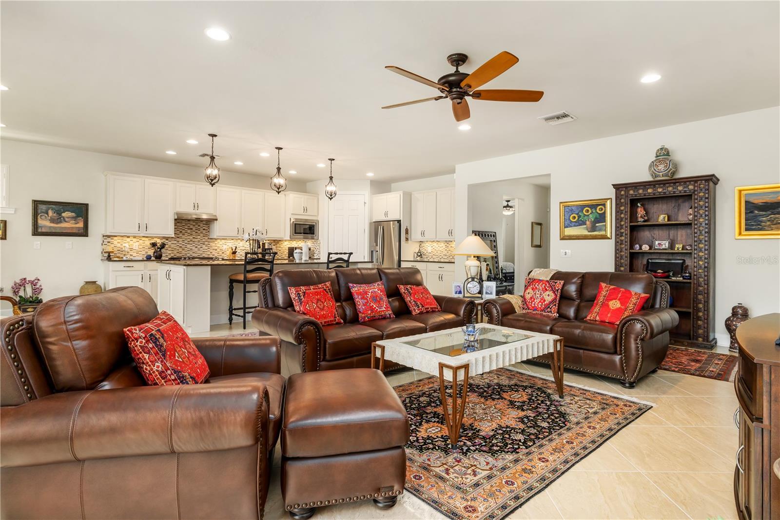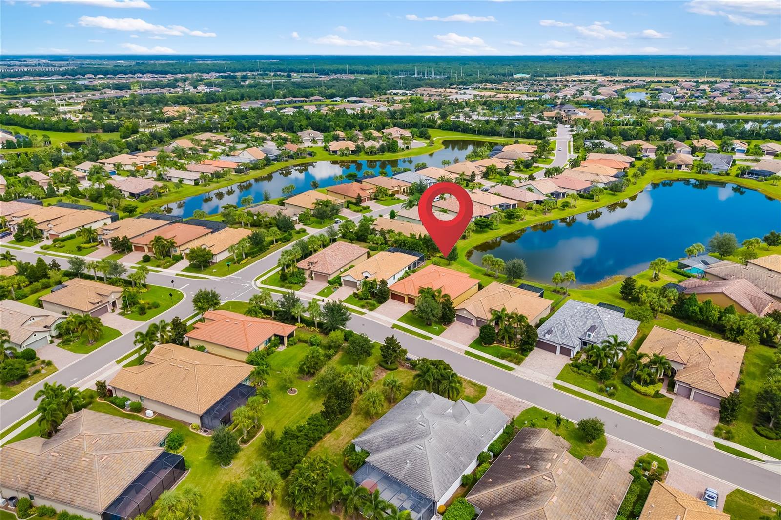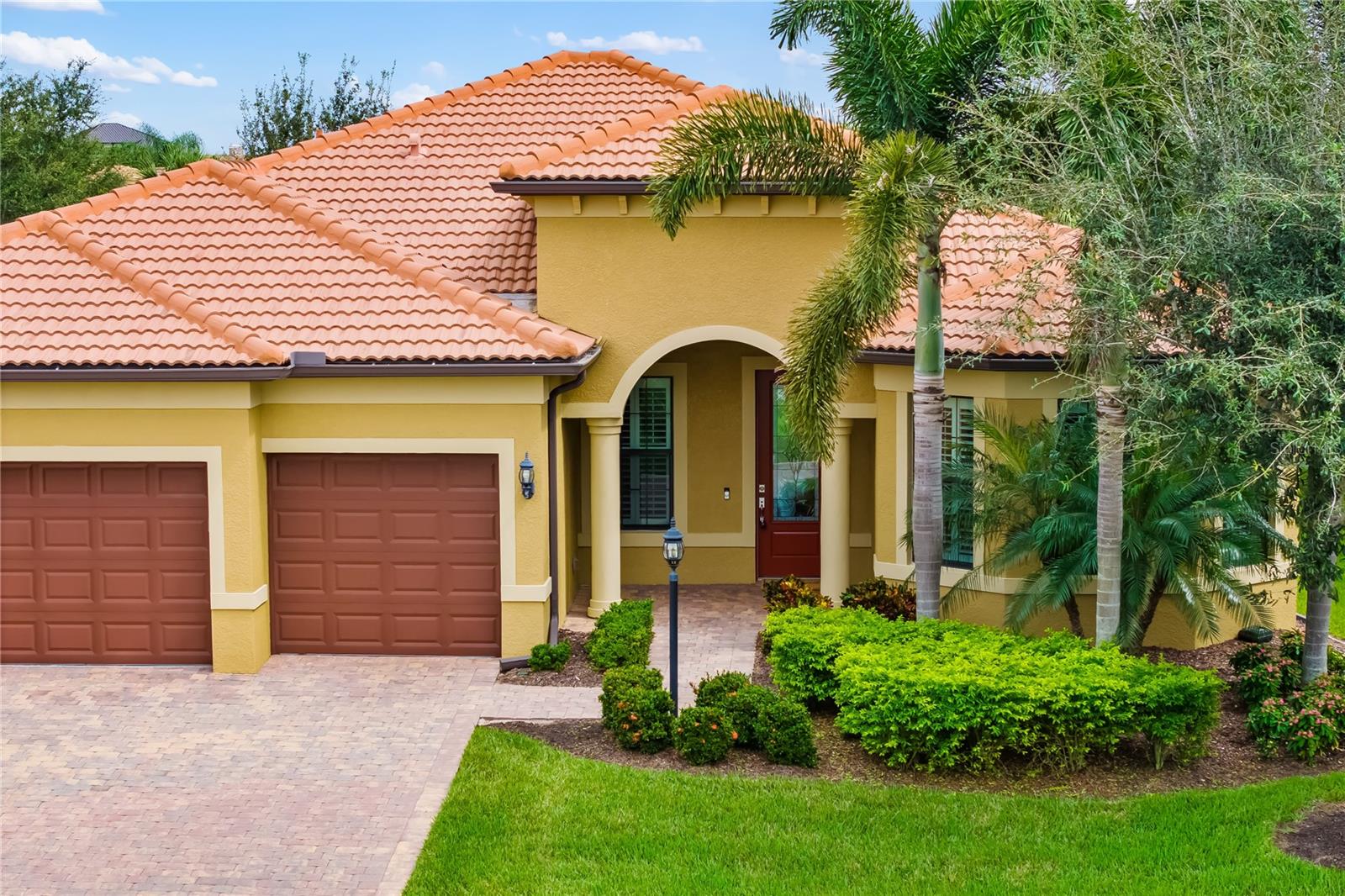 Under contract-accepting backup offers. Welcome to the Dell Webb 55+Community! This stunning~3 Bedroom,~3 Bathroom ~office/den~3 car Garage home features the desirable PINNACLE floor plan. It's packed with fabulous upgrades, including IMPACT WINDOWS AND DOORS, GENERAC GENERATOR, and elegant Plantation Shutters. Nestled alongside a pond, this home boasts a long water view that adds to its charm. EVERY bedroom includes Walk-in closets with built-ins, and the master suite features an Oversized closet for ample storage. Enjoy the beauty of porcelain tile flooring throughout, complemented by engineered hardwood floors in the bedrooms. The 20 x 27 Great Room is perfect for Entertaining and Family Gatherings. Tray ceilings in the Master Bedroom, Guest bedroom and Office. The Gourmet kitchen showcases Antique White Wood Cabinets and Drawers, Tile backsplash, along with a spacious Pantry with all built ins and a large eat-in area overlooking the tranquil water view. The paver lanai offers plenty of room for potential pool addition. The three-car garage with epoxy floors is great for a golf cart or added storage also included is a Large Storage closet. This home is truly fabulous, with countless upgrades and situated in a vibrant neighborhood that offers a resort-style community Pool, Gym, Restaurant, and Exercise classes. Experience a lifestyle where every day feels like a vacation. Don't miss out on this incredible opportunity!