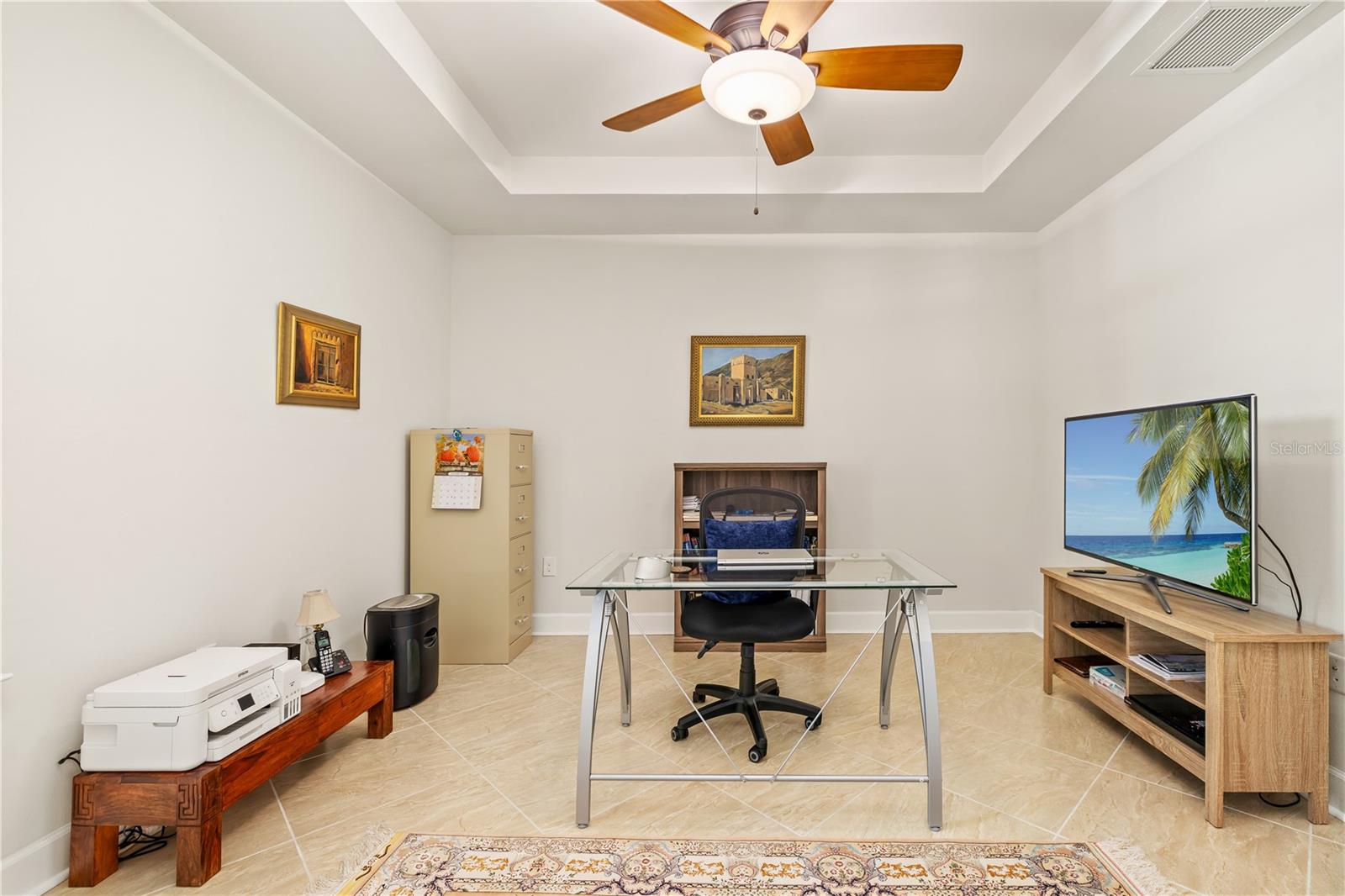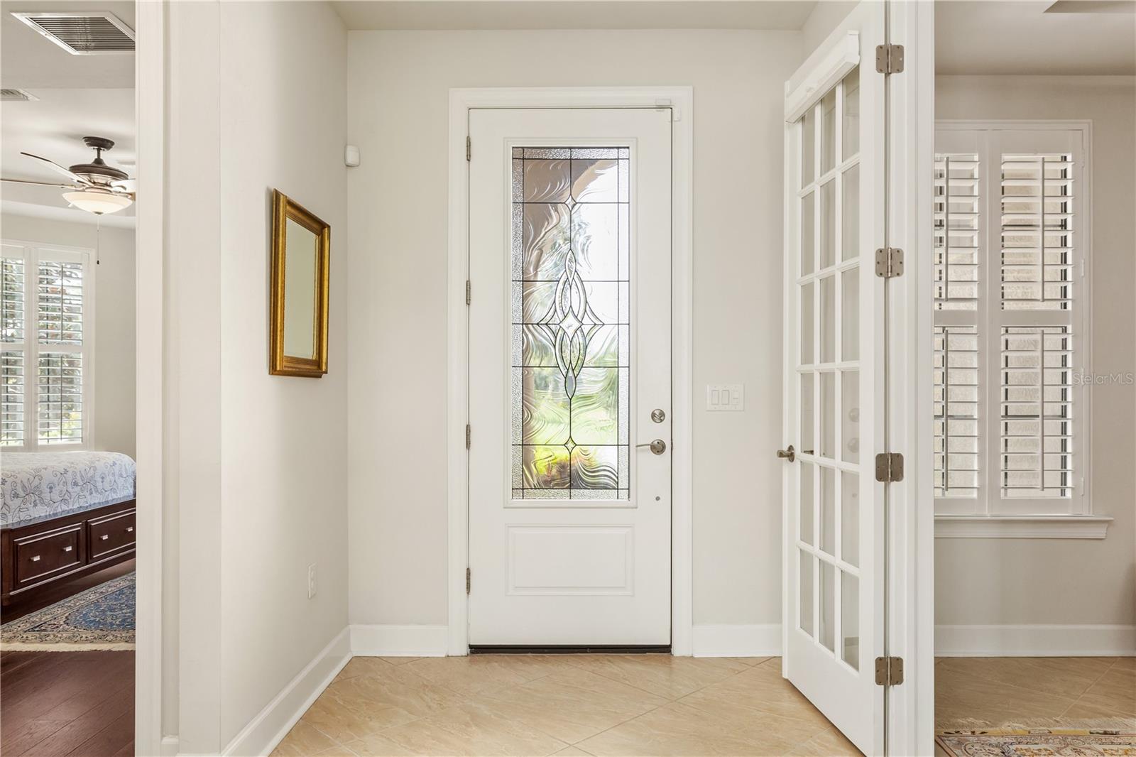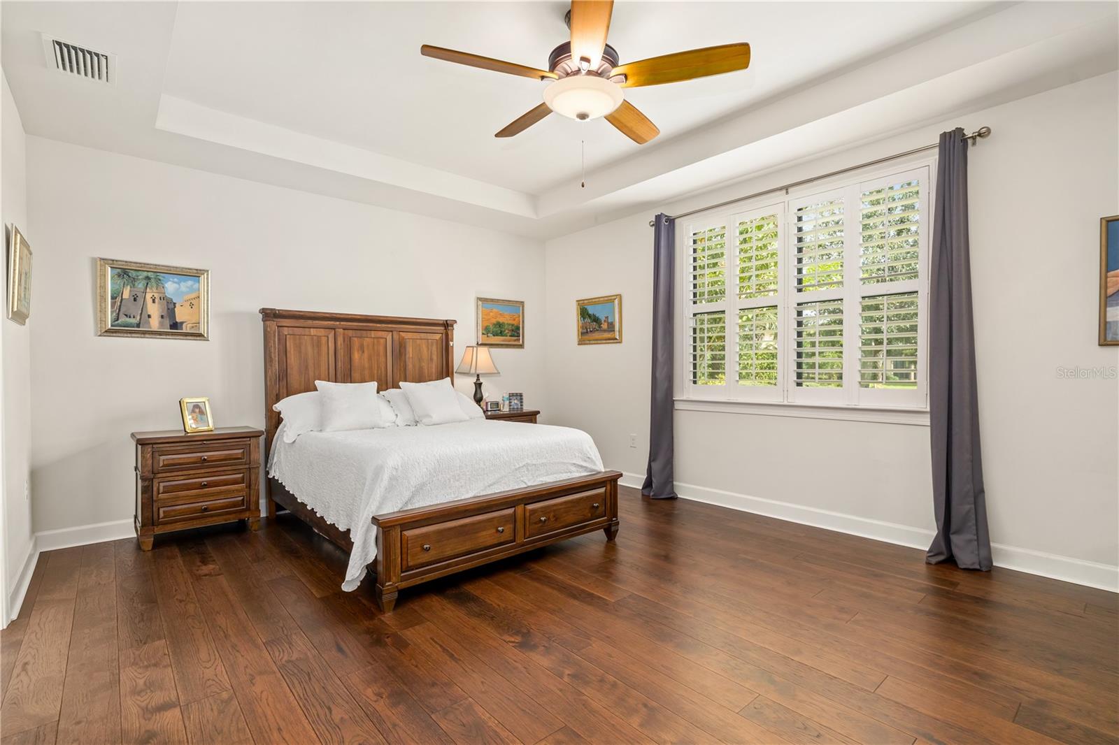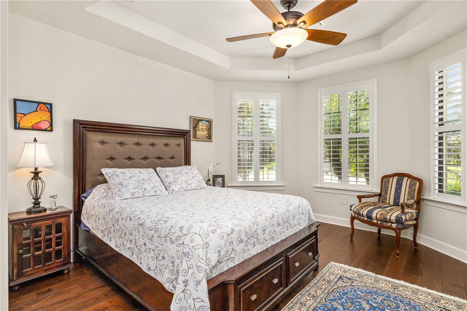 Under contract-accepting backup offers. Welcome to the Dell Webb 55+Community! This stunning~3 Bedroom,~3 Bathroom ~office/den~3 car Garage home features the desirable PINNACLE floor plan. It's packed with fabulous upgrades, including IMPACT WINDOWS AND DOORS, GENERAC GENERATOR, and elegant Plantation Shutters. Nestled alongside a pond, this home boasts a long water view that adds to its charm. EVERY bedroom includes Walk-in closets with built-ins, and the master suite features an Oversized closet for ample storage. Enjoy the beauty of porcelain tile flooring throughout, complemented by engineered hardwood floors in the bedrooms. The 20 x 27 Great Room is perfect for Entertaining and Family Gatherings. Tray ceilings in the Master Bedroom, Guest bedroom and Office. The Gourmet kitchen showcases Antique White Wood Cabinets and Drawers, Tile backsplash, along with a spacious Pantry with all built ins and a large eat-in area overlooking the tranquil water view. The paver lanai offers plenty of room for potential pool addition. The three-car garage with epoxy floors is great for a golf cart or added storage also included is a Large Storage closet. This home is truly fabulous, with countless upgrades and situated in a vibrant neighborhood that offers a resort-style community Pool, Gym, Restaurant, and Exercise classes. Experience a lifestyle where every day feels like a vacation. Don't miss out on this incredible opportunity!
