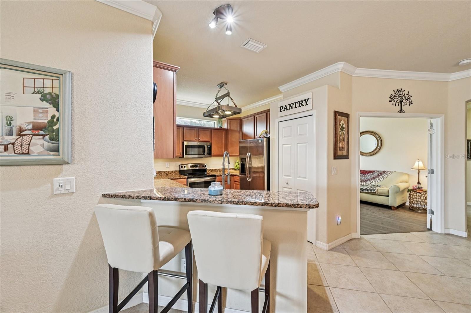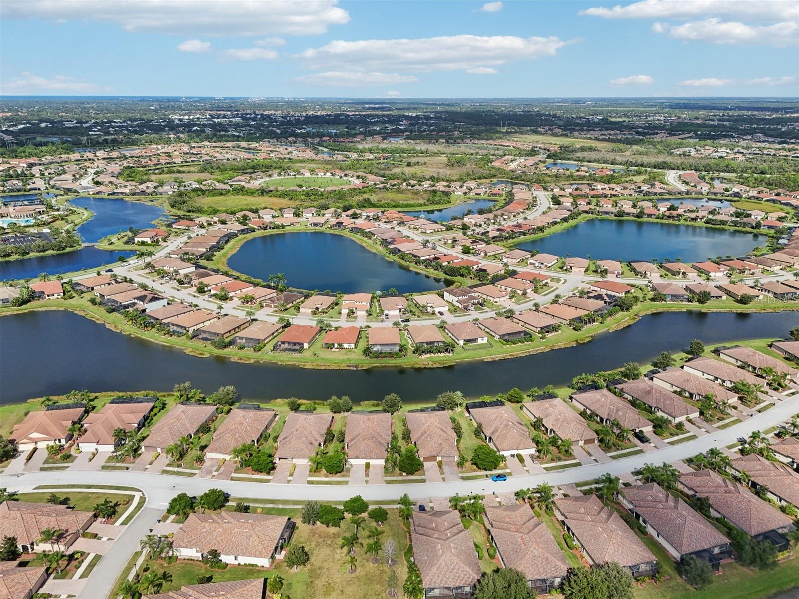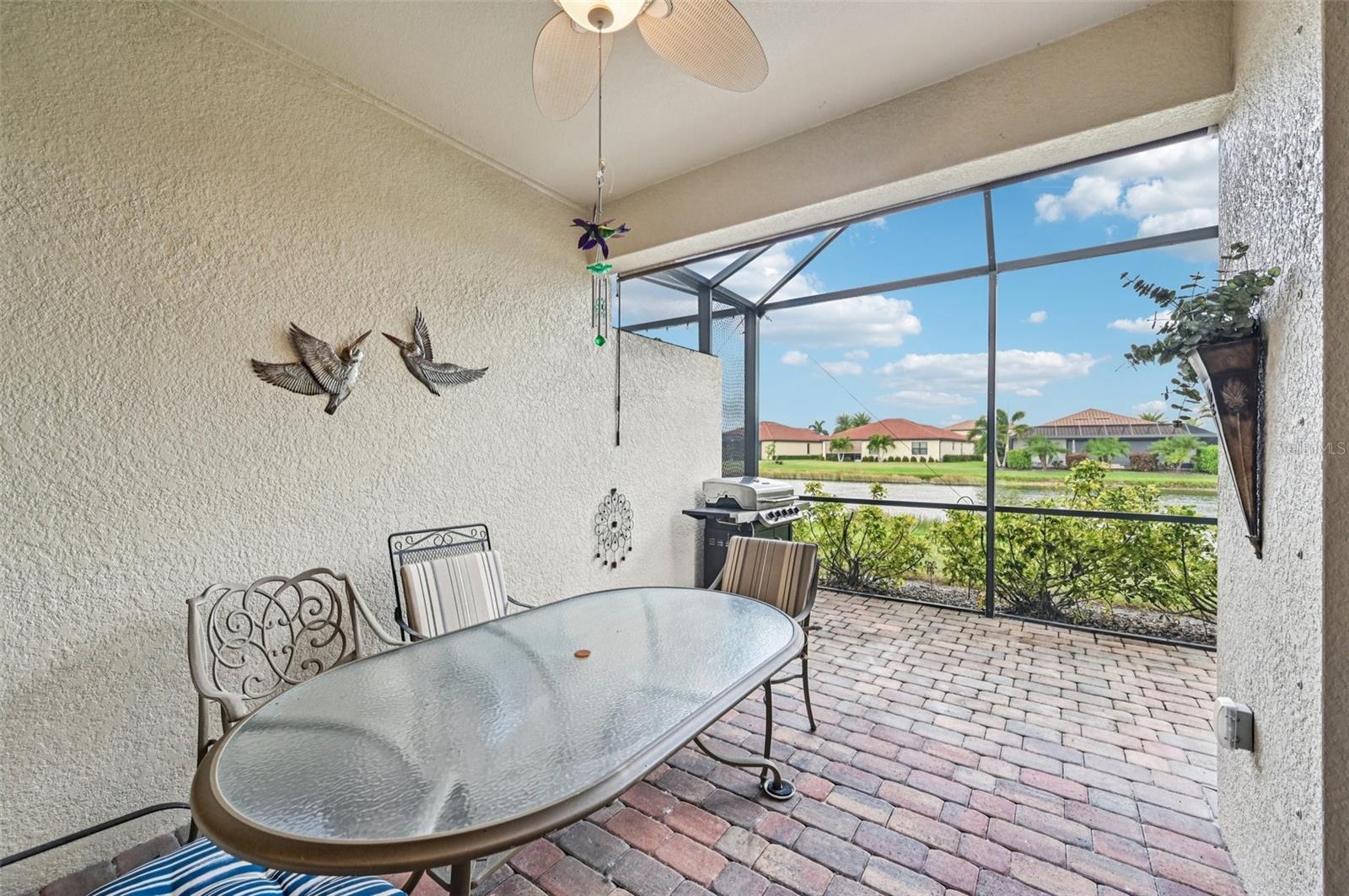 Under contract-accepting backup offers. Bring your toothbrush and move right in! This 2 BR & Den, 2 BA, 2-car garage turnkey furnished and maintenance-free villa is located in the resort-style community "Gran Paradiso at Wellen Park" and situated on a premium lake-view homesite. It features an extended fully screened lanai with a spectacular water view. The villa offers luxury finishes, such as 18" tile on the diagonal & luxury wood-plank style vinyl flooring (no carpet in the entire home!), crown molding and granite counter tops. The open floor plan is ideal for entertaining or enjoying quiet time. Have your morning coffee at the breakfast bar, overlooking your kitchen with 42" wood cabinets & GE stainless-steel appliances. The office/den is bright & spacious and could easily double as a 3rd bedroom. The split floor plan with guest bedroom and guest bath is perfect when family and friends come to visit. Your Primary Bedroom Suite also has the beautiful lake-view and your private Primary bath offers a double vanity, a garden tub and a separate walk-in shower. A screened entry area, an inside laundry room with additional cabinets and a spacious 2-car garage complete this beautiful home. Capacitator on A/C was recently replaced, newer piping on water heater, newer kitchen faucet & garbage disposal, newer microwave. HOA fees include the use of all the community amenities, lawn care, fertilization, mulch, basic cable & high-speed internet, roof repair & replacement and periodic exterior painting. Gran Paradiso is an amenity-rich, maintenance-free resort community, situated in the the rapidly growing Wellen Park area, only 15 min from the Gulf of Mexico. Rivaling a vacation resort, owners enjoy a beach-entry pool, Tuscan-inspired Clubhouse, tennis, pickle ball, state-of-the-art fitness center, sauna/steam rooms & massage rooms. There is a myriad of activities for the residents, organized by a full-time Lifestyle Director. Gran Paradiso is golf-cart friendly and encompasses over 1,000 acres with extensive walking and biking paths. Wellen Park offers a marketplace with shopping, restaurants and the Spring Training Stadium of the Atlanta Braves, the 2021 World Series Champions. There is also an 80-acre lake, surrounded by bike paths and lake-front eateries. Area beaches are in close proximity, as is quaint downtown Venice. Schedule your showing today!