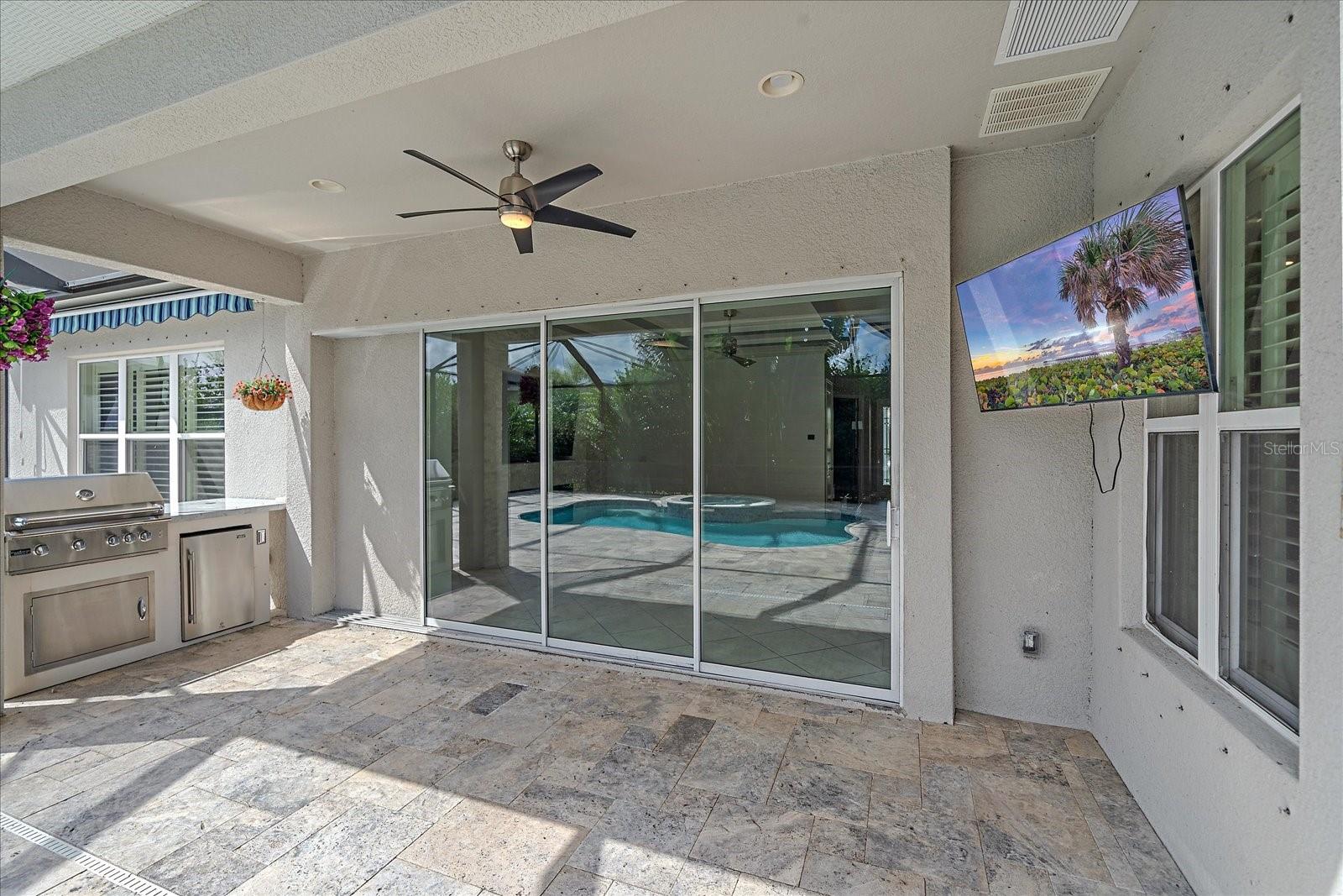 - Exterior: Hurricane Shutters, Lighting, Outdoor Grill, Rain Gutters, Sidewalk, Sliding Doors