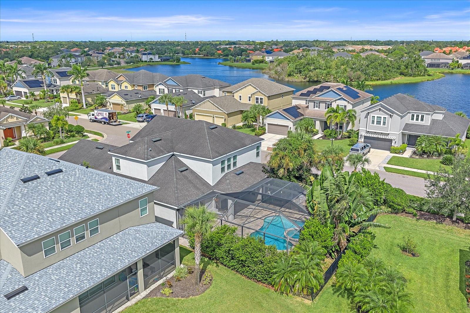 Welcome to this extraordinary masterpiece, where sophistication meets contemporary luxury in the coveted Palmer Ranch community. This stunning four-bedroom, three-and-a-half-bathroom residence spans nearly 4,000 square feet of meticulously crafted living space, built in 2014 with an unwavering attention to detail.The heart of this home beats within its gourmet kitchen, a culinary symphony featuring a newer Viking gas cooktop, a large walk-in pantry, an elegant subway tile backsplash, and double ovens. The magnificent granite-topped island, accommodating four bar seats, serves as the social epicenter, seamlessly connecting to the morning room and butler's pantry, complete with walk-in storage.Ascend the striking iron and wood staircase to discover the second-floor sanctuary, housing a versatile game room, a guest suite with a private bathroom, two additional bedrooms, and flexible storage space. The primary bedroom on the first level boasts an enormous California-chic walk-in closet, while the spa-inspired bathroom showcases granite countertops, dual sinks, and a Roman-style glass-enclosed shower.Step outside to your private oasis featuring an extended lanai with gas-heated saltwater pool and spa, a covered entertaining area, and full-screen enclosure--all positioned on a desirable corner lot. The pool heater was replaced one year ago. Arbor Lakes residents enjoy resort-style amenities, including a splash park, swimming pool, covered lounging areas, fire pit, playground, barbecue facilities, and sports courts.This A-rated school district location offers unparalleled convenience to Legacy Trail, championship golf courses, Interstate 75, diverse shopping and dining venues, while Siesta Key's world-renowned beaches beckon just minutes away.