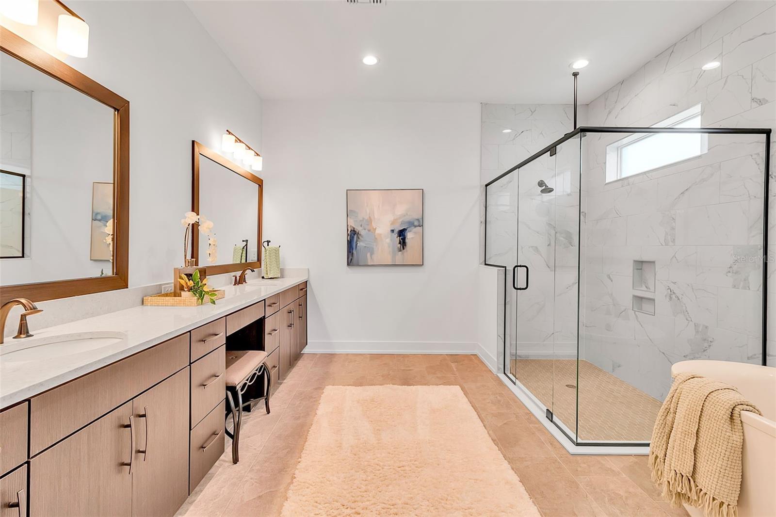Notable & Nearly New in The Isles of Lakewood Ranch! No waiting for your dream home--this striking coastal retreat is move-in ready and offers all the luxury upgrades you're looking for in a new home. Privacy, style, and craftsmanship define this 2022 built 4 bed, 3.5 bath Toll Brothers residence - ideally located in one of Lakewood Ranch's most desirable gated communities - The Isles. The sought-after Solana floor plan was designed with a focus on space, light, and views - featuring nearly 3,400 square feet of living space, soaring 13-foot ceilings, custom wood beams, and 10-foot corner sliders that flood the home with natural light and create a seamless flow to the outdoors. Perfect for all ages - this single-level split plan offers comfort, accessibility, and privacy in one of the country's best-selling communities. At the heart of the home, the gourmet kitchen impresses with quartz countertops, a Wolf six-burner dual fuel range, Wolf microwave, Asko dishwasher, European-style cabinetry, soft close drawers and a massive 11-foot island perfect for gathering. The kitchen, dining and living areas blend seamlessly together - ideal for entertaining a crowd or enjoying a quiet dinner at home. Enjoy movie night or invite friends over for the game with the custom entertainment wall - complete with automated lighting and built-in storage. You'll be the envy of the neighborhood! The primary suite is spacious and relaxing, offering direct access to the pool with serene views of the preserve. The spa-worthy bath features a 13-foot vanity, free-standing soaking tub, oversized tiled shower with rainhead and dual vanities--a retreat designed for comfort and indulgence. Love organized space? The custom California Closets are thoughtfully designed to keep everything beautifully in its place. Three additional guest suites offer flexibility for your family and friends - or customize the space as a study, den or workout area.Step outside to pavered lanai offering expansive outdoor living space, complete with a Pebble Tec pool, designer spa, tv and dining area - all ready for your dream outdoor kitchen. Relish in the privacy of a west-facing preserve lot - perfectly positioned to capture gorgeous sunsets. The tropical landscaping captures the essence of luxury Florida living! The difference is in the details - as this almost new home features impact-rated windows and doors, solid block construction, a hurricane-rated patio screen (2025), tankless water heater, new luxury vinyl plank and tile flooring (2025), custom front doors and interior shutters (2025), a three-car garage with epoxy floors and a massive laundry and storage room. Located within The Isles of Lakewood Ranch, residents enjoy resort-style amenities including a clubhouse, fitness center, resort pools and spa, pickleball and tennis courts, game lawn, dog park, fishing pier and scenic walking trails. Lakewood Ranch is the most popular planned community in the country - encompassing over 30,000 acres with over 150 miles of walking and biking trails. This fantastic location puts you minutes from dining, shopping, health services, golf and A-rated schools. UTC Mall and Waterside Place are the premier destinations for everything entertaining - plus SRQ airport, I75 and gorgeous beaches are a short drive away. No waiting, no compromises--just striking coastal elegance, sunset views, and exceptional quality. This Solana at The Isles of Lakewood Ranch is better than new and waiting for you!
