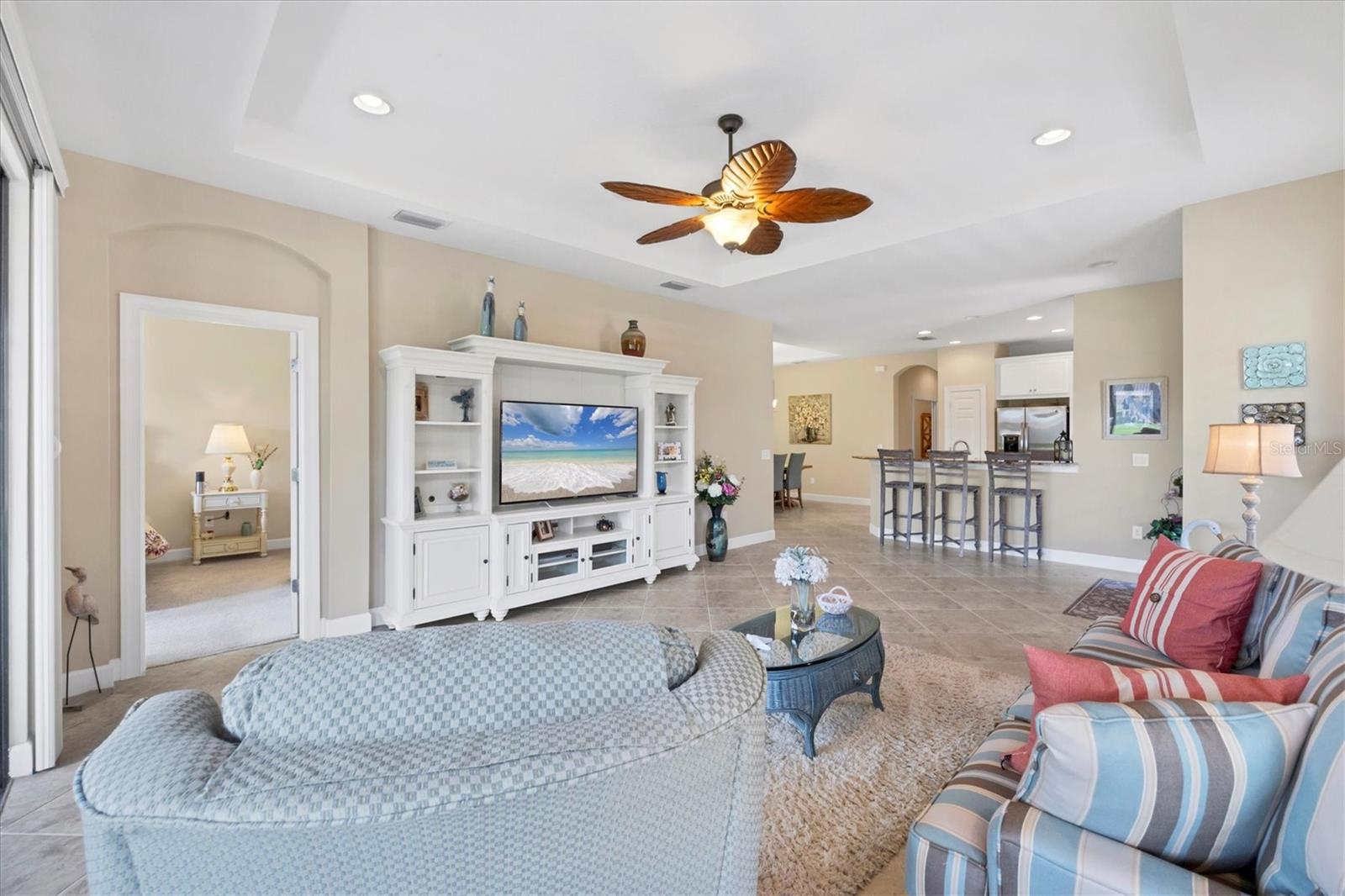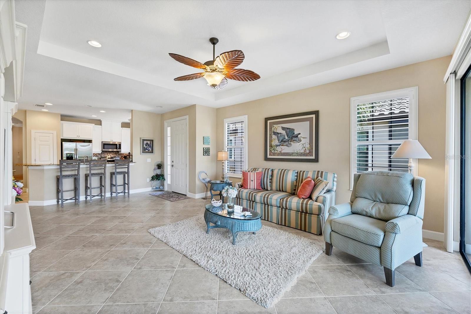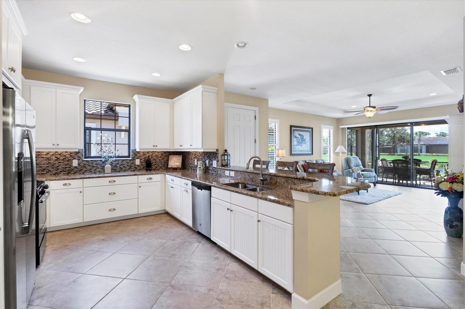 Situated in the highly desirable Esplanade by Siesta Key community, this maintenance-free villa is just minutes away from downtown Sarasota and the pristine, crystal-sand beaches of Siesta Key. Enjoy breathtaking water views from multiple vantage points within the villa. The living room opens up to an expansive lake view that creates a serene atmosphere. The kitchen is equipped with generous granite counters, making it both functional and stylish. This villa offers two en suite bedrooms, a third bedroom, and an office or den that can also serve as an additional guest room. The primary bedroom boasts impressive lake views, an en suite bathroom with double sinks, a spacious shower, and a large walk-in closet. The den provides a quiet, inviting space for work or relaxation. Step onto the extended lanai and experience the beauty of lush foliage and shimmering lake views. Whether enjoying a morning cup of coffee or a sunset dinner, the lanai offers the perfect setting for peaceful outdoor living. The villa has been "lightly lived-in," as the owners only reside here for short periods each year. Upgrades include Plantation shutters throughout, ceiling fans, granite countertops in the kitchen and bathrooms, custom cabinets in the laundry room, hurricane shutters, lanai pre-wired and plumbed for a summer kitchen, epoxy flooring in the garage, gutters, and a hurricane-resistant garage door. Esplanade by Siesta Key offers a variety of first-class amenities, including an elegant Amenity Center, pool and spa, a fully equipped fitness room, pickle ball court, Har-Tru tennis court, and a dog park. Residents can participate in a full menu of social activities and enjoy the benefits of no CDD fees and no hurricane concerns. This is a rare opportunity to experience Sarasota living at its finest. Furniture is optional.