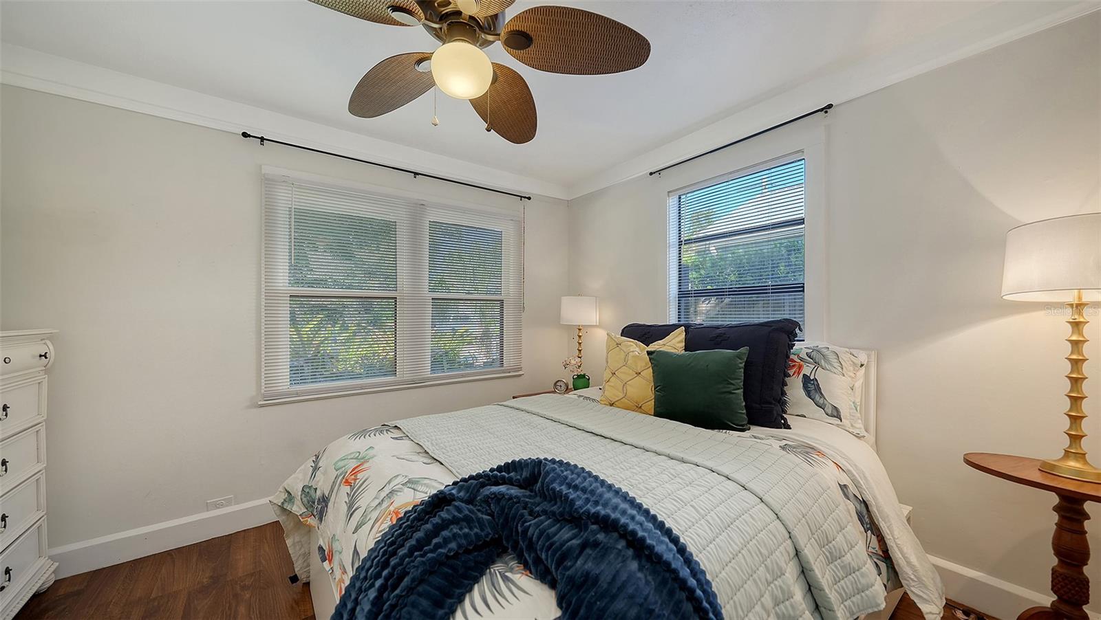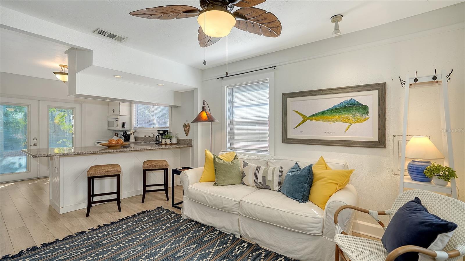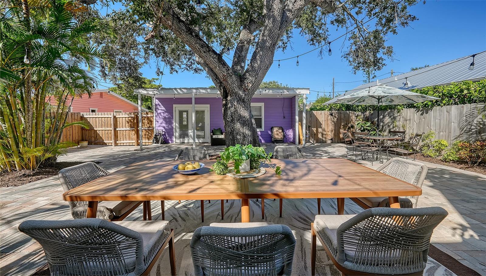 Picture-Perfect Laurel Park Opportunity! Located in one of Sarasota's most beloved historic neighborhoods, THIS RARE OFFERING OFFERS NOT ONE - BUT TWO CHARMING HISTORIC COTTAGES set on lush, tree-shaded grounds. Just steps to everything downtown Sarasota and the bayfront - this is Laurel Park living at its best. Step inside the Gold Cottage, where classic bungalow charm meets an open, inviting design. With 2 bedrooms and 1 bath, this light-filled retreat flows seamlessly to a spacious tropical courtyard--a truly special gathering space for morning coffee or evenings under the stars. The Turquoise Cottage welcomes you through its screened front porch, perfect for a good book or card games with friends. Inside, you'll find 3 bedrooms and 2.5 baths - plus a flexible floor plan with private upstairs access--ideal for guests or rental income opportunities. Together, the two cottages offer a total of 5 bedrooms and 3.5 baths and are offered turnkey furnished, ready to enjoy with family, friends, or tenants. This property offers a unique mix of old and new - with updated baths, appliances and AC's - in a setting that has a vintage charm of yesteryear and tree-lined streets with a true neighborhood vibe. Enjoy the convenience of natural gas, wood floors, open kitchens and separate laundry. A peaceful and tropical lot in this historic neighborhood is a rare find. No HOA, not in a flood zone, no storm damage plus the city rental rules support flexibility - making this property ideal as an investment, full-time home, or seasonal retreat. Live in one cottage and rent the other--or create a multi-generational sanctuary just steps from everything Sarasota has to offer. Walk to shopping, dining, weekly farmers market and cultural events. A great Florida lifestyle!