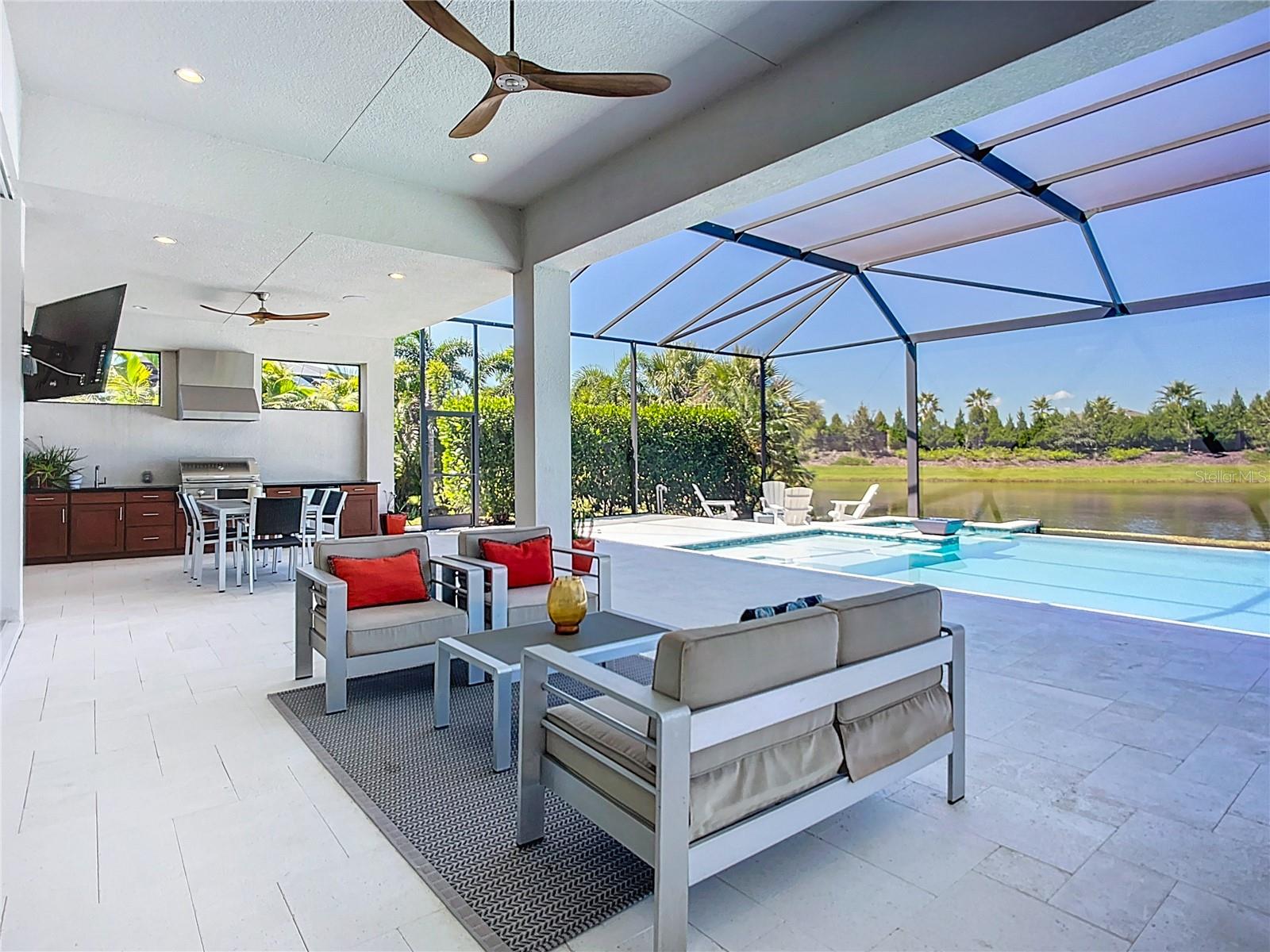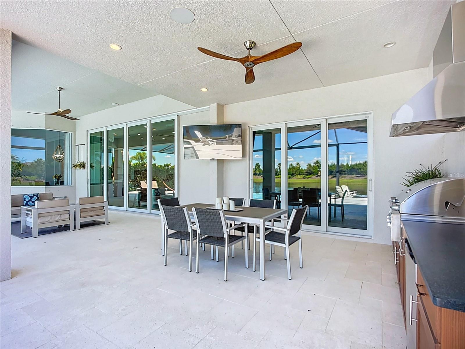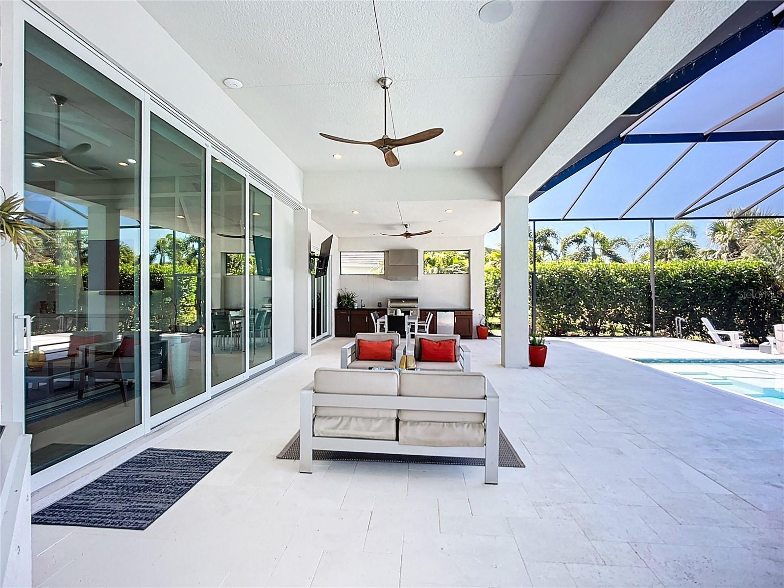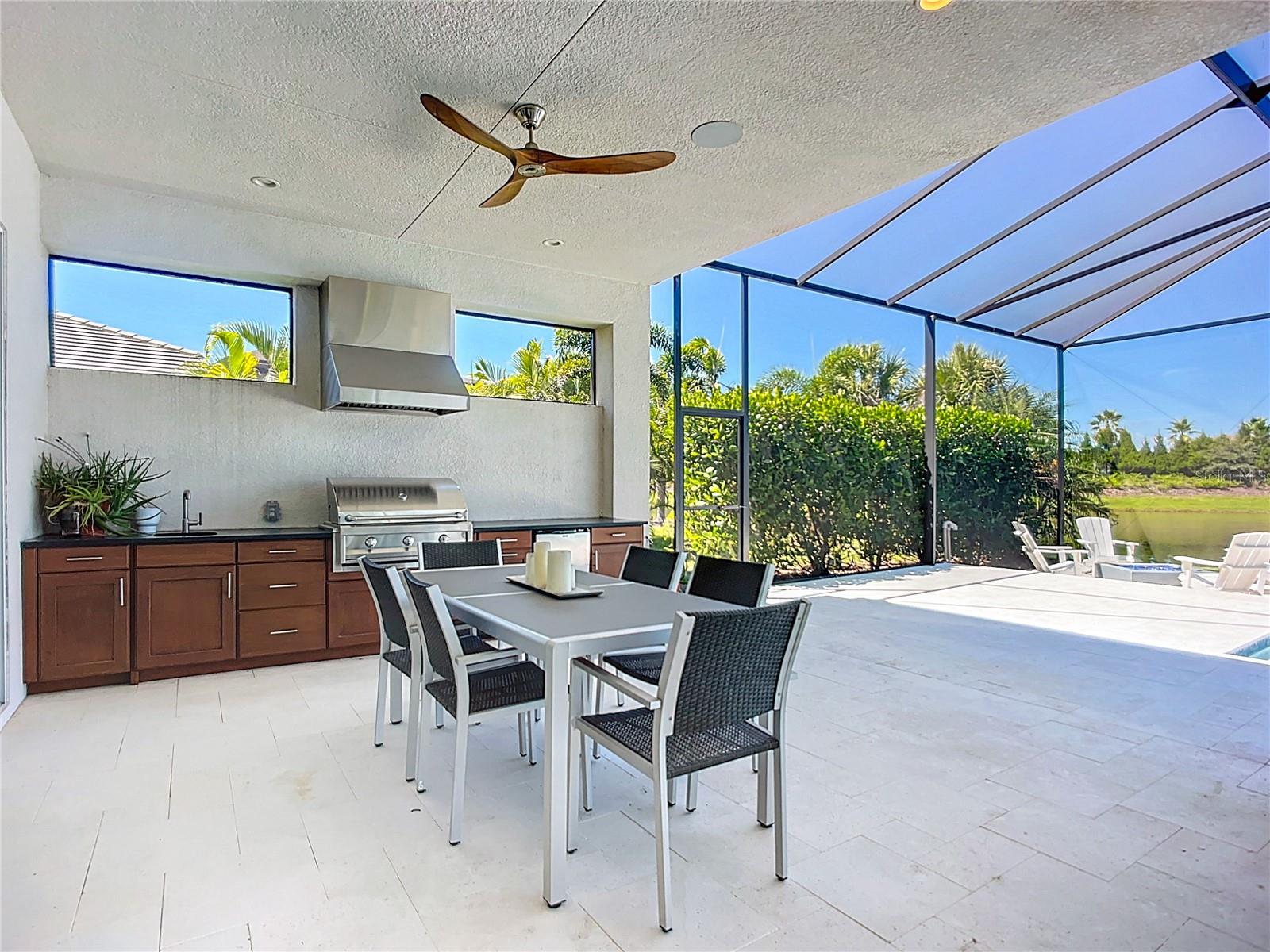 - Exterior: Hurricane Shutters, Lighting, Outdoor Grill, Outdoor Kitchen, Outdoor Shower, Rain Gutters, Sidewalk, Sliding Doors
