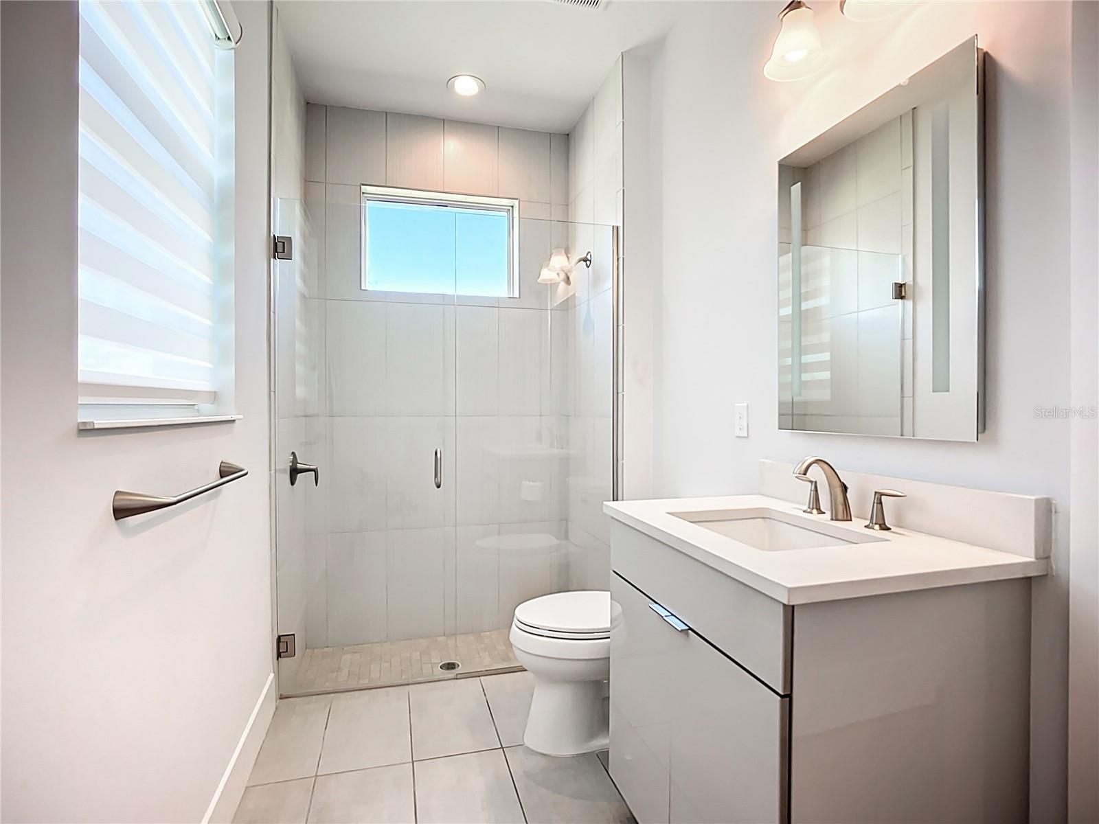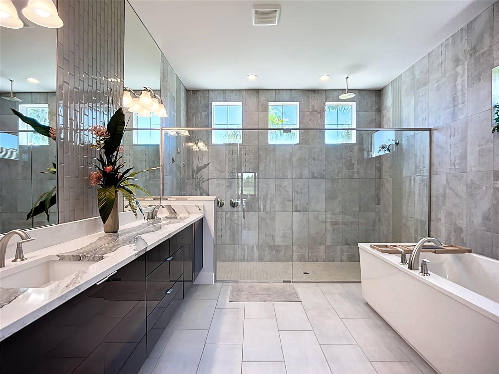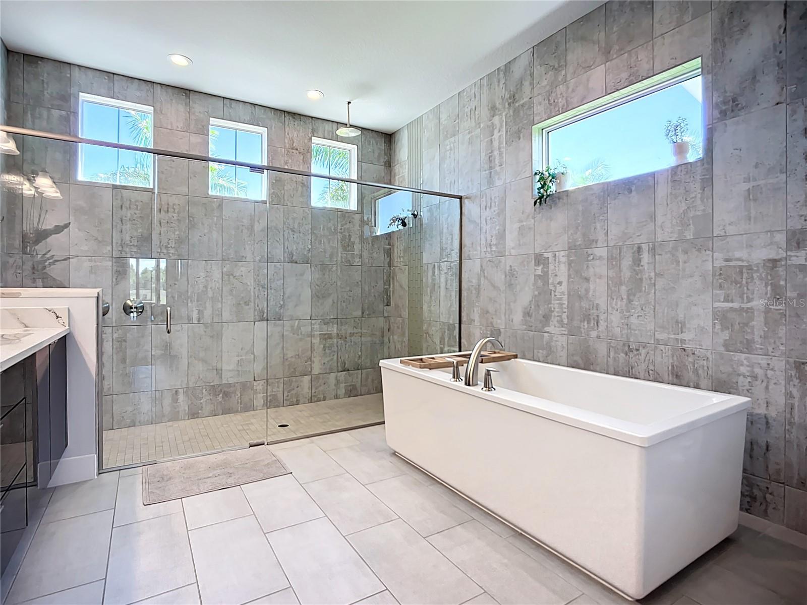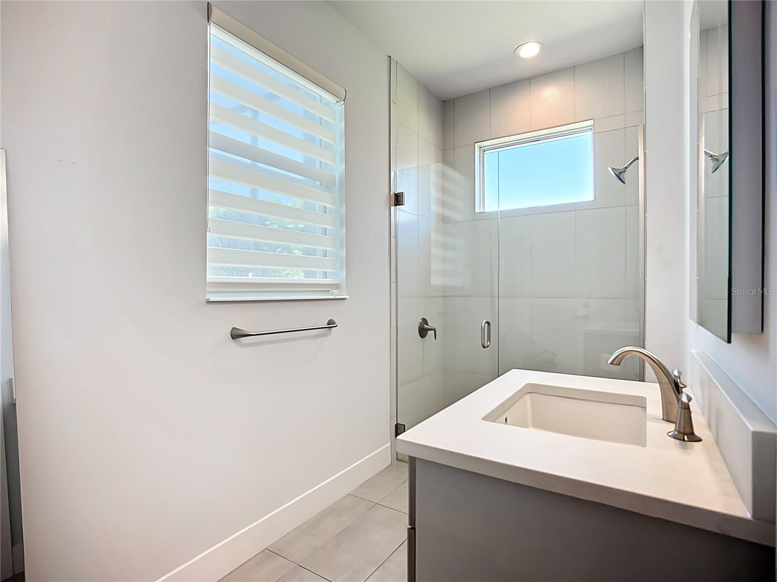 - Exterior: Hurricane Shutters, Lighting, Outdoor Grill, Outdoor Kitchen, Outdoor Shower, Rain Gutters, Sidewalk, Sliding Doors
