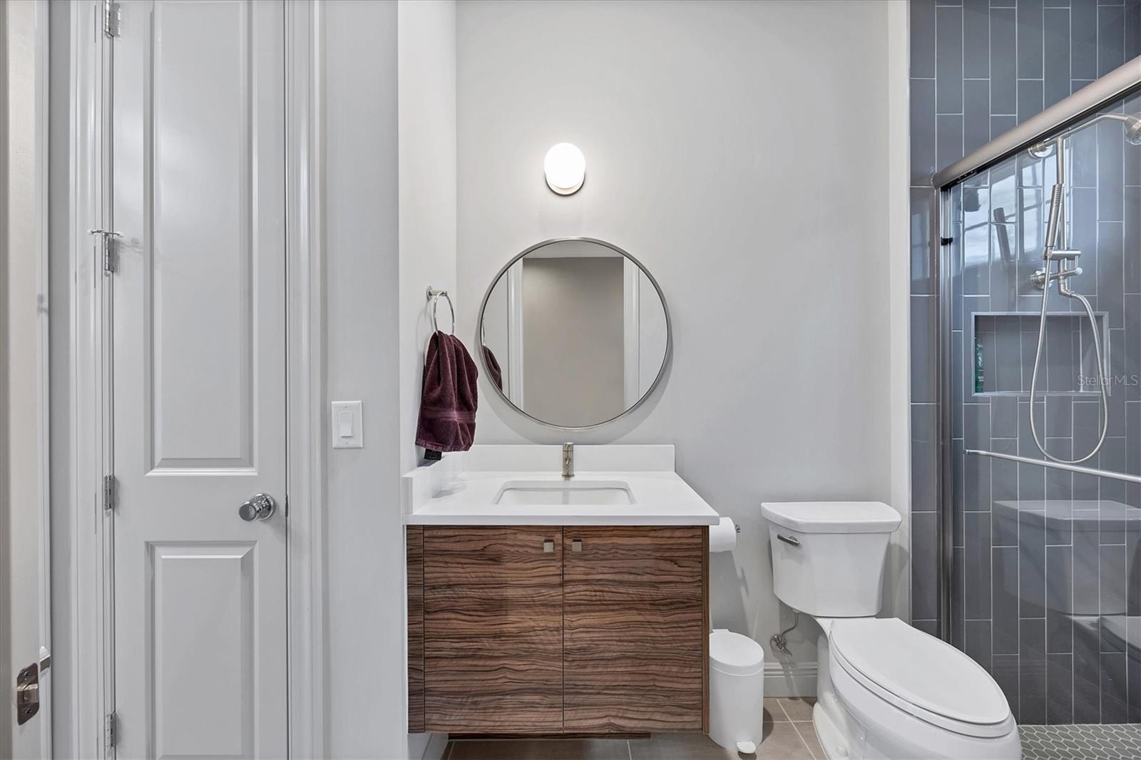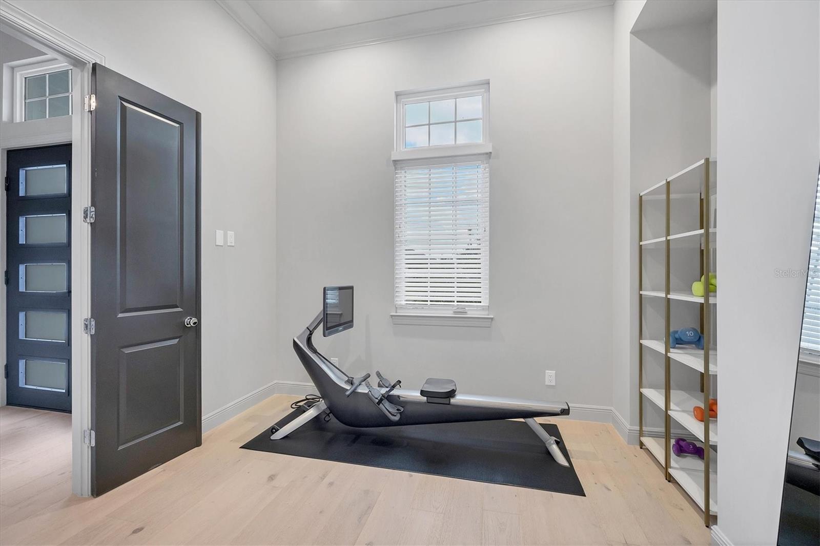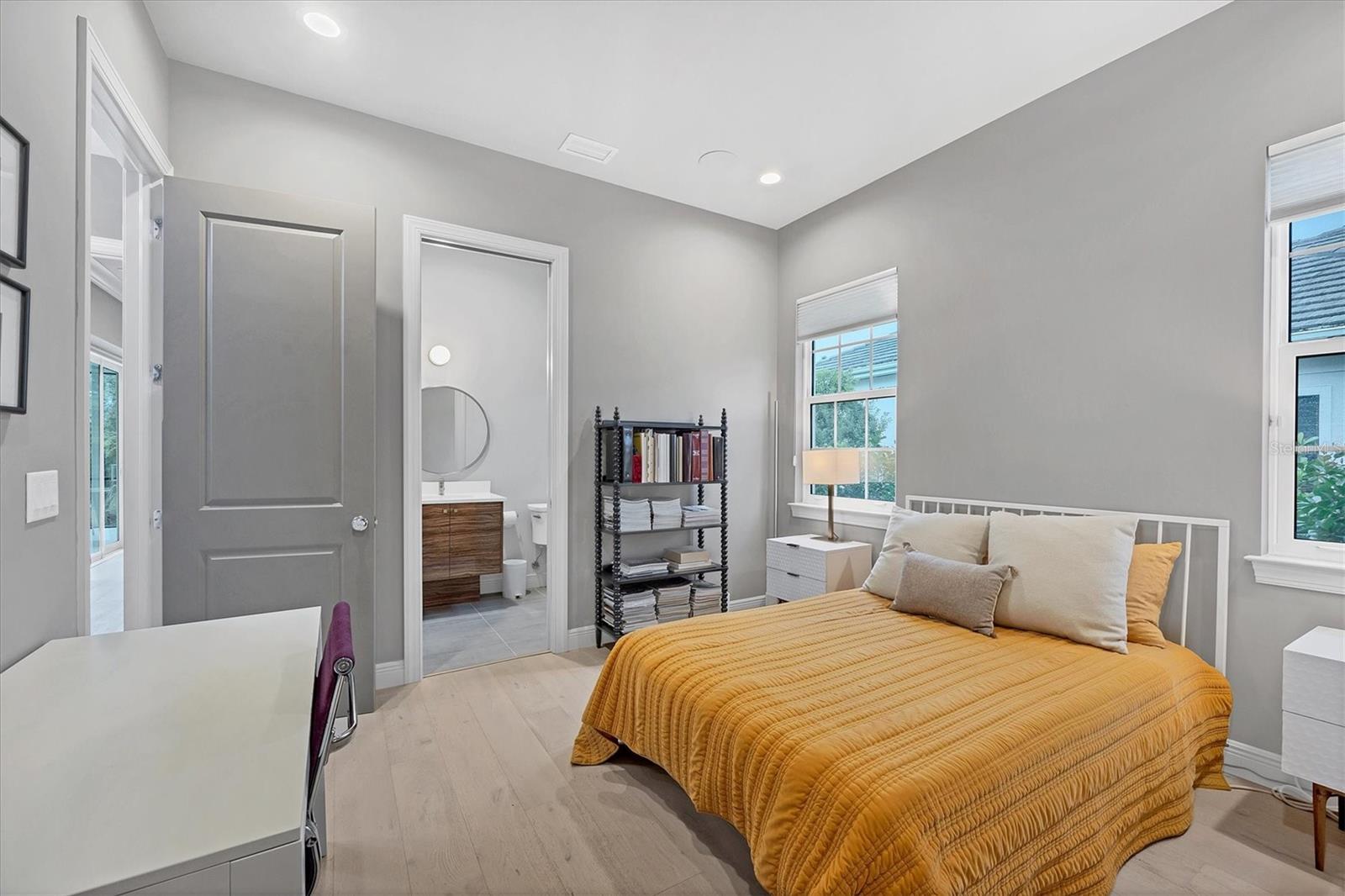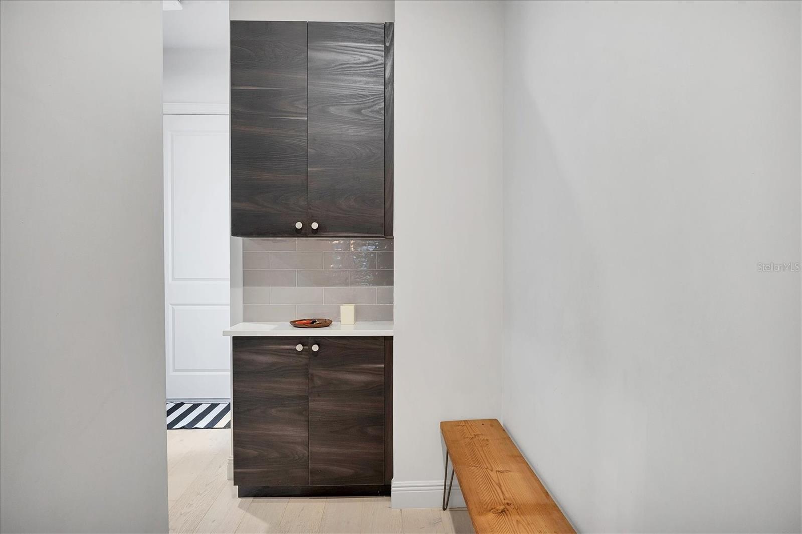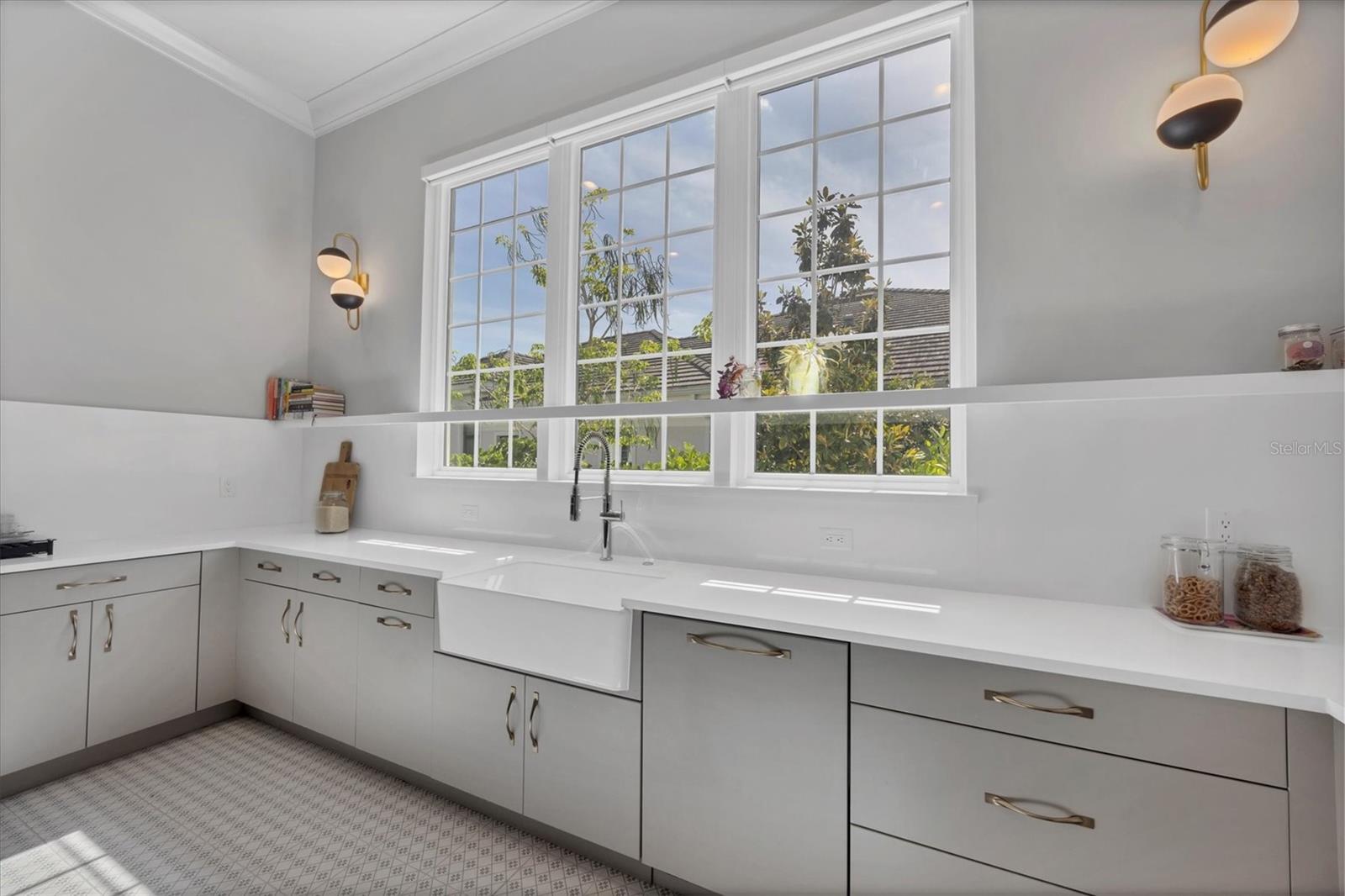 On a quiet preserve in the exclusive gated enclave of Country Club East, this exceptional John Cannon residence showcases refined craftsmanship, modern luxury, and seamless indoor-outdoor living. Designed for comfort and impact, the home features impact-rated windows and doors, a full-house generator, and an open layout that's as functional as it is beautiful. Enter through 10-foot iron and glass double doors into a dramatic great room with whitewashed European oak flooring, soaring 13-foot ceilings with chevron wood detail, and a striking natural gas fireplace framed by Basalt volcanic tile and reclaimed wood mantle. A custom Whisperkool wine wall holds up to 130 bottles, accented by a chevron Stickwood backdrop. The main foyer features a hidden closet for bags and shoes. The chef's kitchen boasts Sub-Zero and Wolf appliances, a six-burner range, built-in oven and microwave, quartz countertops, a prep island outfitted with pullout drawers, two for spices, a farmhouse sink and a standalone ice maker. An entertaining-sized island outside the kitchen features Sub-Zero beverage and wine coolers, an additional microwave and ample hidden storage. A spacious walk-in pantry is nearby and includes a built-in tall closet. The great room's 10-foot sliders fold back into a disappearing corner and lead to the expansive lanai with a PebbleTec infinity-edge heated saltwater pool and spa, panoramic screen enclosure, Shell Lock pavers and a fully outfitted summer kitchen with Alfresco grill, Trailwinds hood, True ice machine, Uline refrigerator and Blanco sink. The private owner's wing includes two walk-in closets, tray ceiling with crown molding, lanai access, and a spa-style bath with radiant heated floors and a steam shower. Two guest suites are positioned in separate wings, each with its full bath and walk-in closet, one with a private entrance and drop zone, the other with pool bath access. Additional living spaces include a bonus room with 10-foot sliders as a second disappearing corner as well as a study/exercise room with 15-foot ceilings. The laundry room features abundant cabinet storage, designer tile, sink and an additional 60 square feet of dedicated storage carved out behind two double doors. Adding even more value, the home is equipped with a whole-house water filtration system, designer lighting, automatic blinds and an oversized three-car garage. Every detail of this home has been thoughtfully curated for elevated living in one of Lakewood Ranch's prestigious communities.