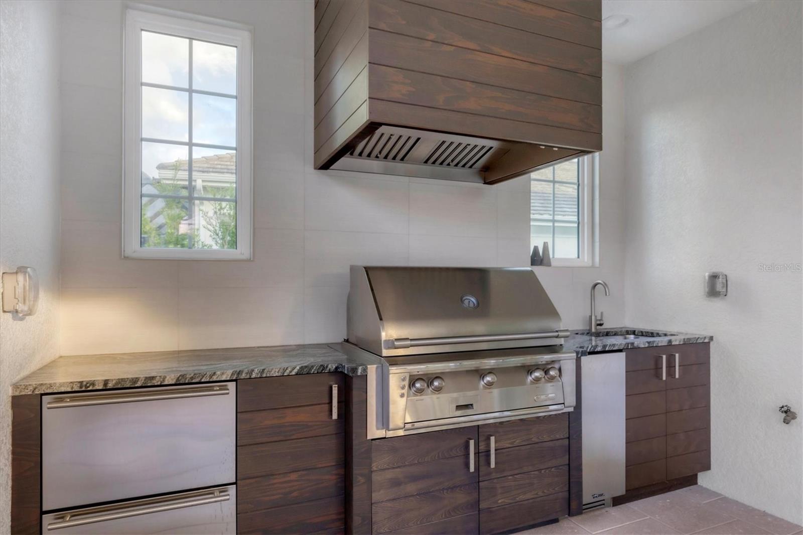 - Exterior: Lighting, Outdoor Grill, Outdoor Kitchen, Sidewalk, Sliding Doors